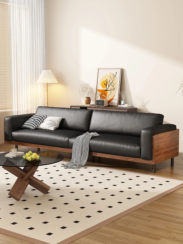 イタリアン本革トップグレインカウレザー使用!ふわふわマシュマロ豆腐ブロックデザインの直線的な侘び寂び風レトロソファ。小さなリビングにぴったりなブラックソファで、心地よい空間を演出します。