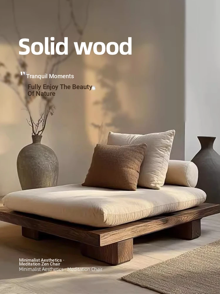 Wabi-Sabi Aesthetic Solid Wood Floor Sofa - Zen Meditation Chair for Hotels and Guesthouses, Perfect for Relaxation and Reception Areas, Single Seat Design