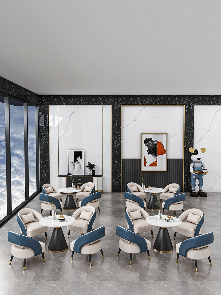 Nordic Minimalist Luxury Reception Chair Set - Single Sofa with Simple Table and Four Chairs for Elegant Client Meetings and Discussions
