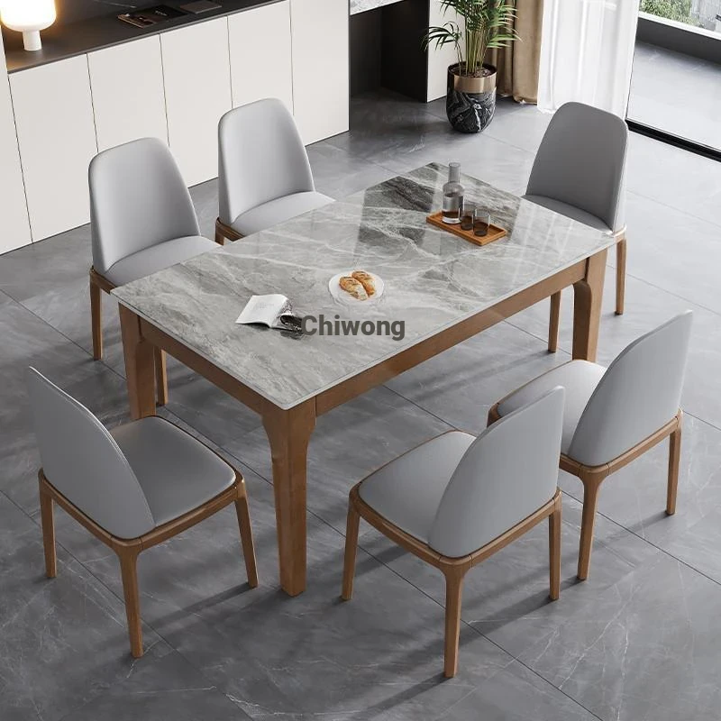 Modern Minimalist Italian Rock Panel Dining Table and Chair Set - All Solid Wood, Perfect for Small Spaces, Luxurious Rectangular Design for Western Cuisine