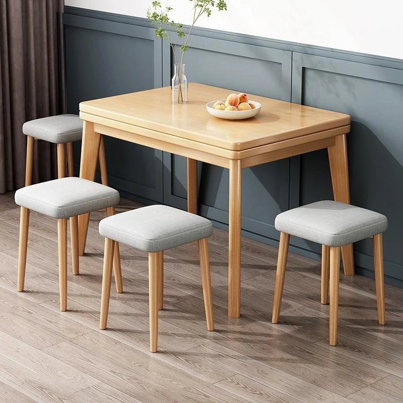 Modern Minimalist Folding Dining Table for Small Spaces - Solid Wood Legs, Expandable Nordic Design, Perfect for Home Use, Compact Square Table for Dining Room
