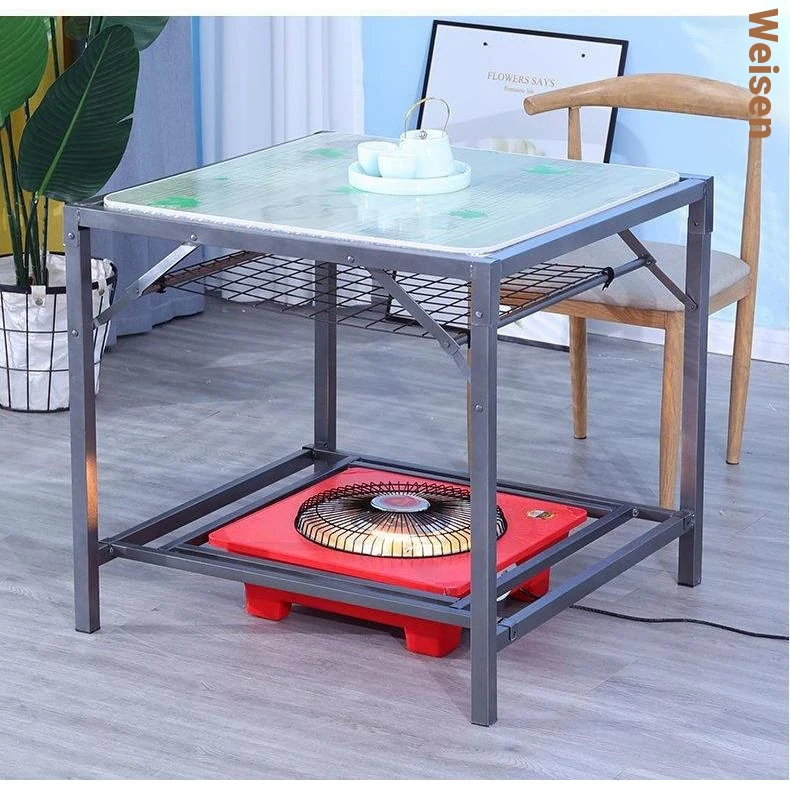 Square Folding Fire Pit Table - Versatile Stainless Steel Dining and Gaming Table for Home Use, Ideal for Cozy Gatherings and Warm Meals.