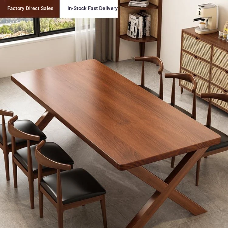 Nordic Style Solid Wood Dining Table and Chair Set - Rectangular Vintage Dining Table for Home and Commercial Use, Perfect for Living Room and Dining Room