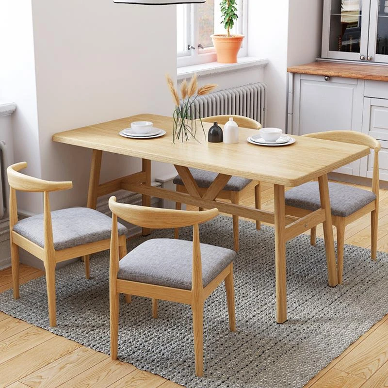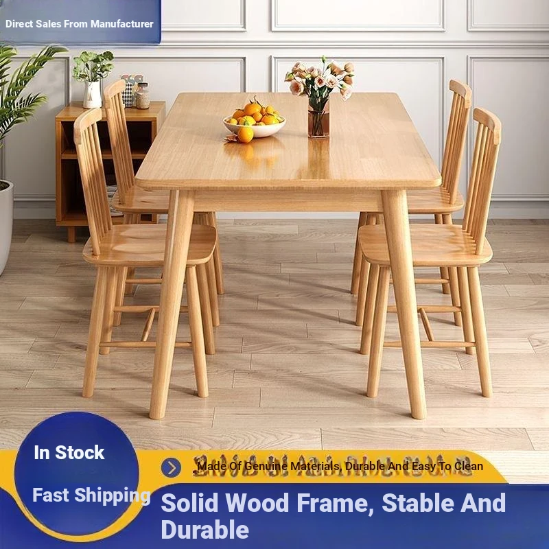 Modern Simple Rectangular Solid Wood Dining Table Set for Small Spaces - Scandinavian Style Dining Table and Chair Combination for Home Use