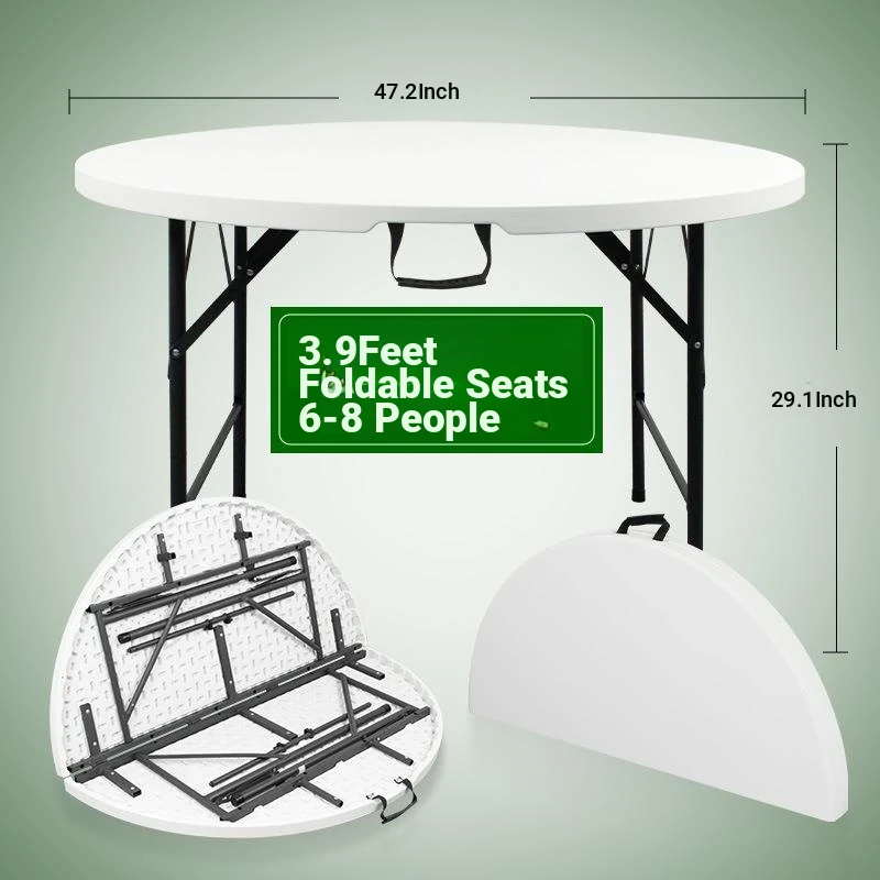 Foldable 1.2m Round Dining Table for Home - Spacious Design for 8 People, Perfect for Small Spaces, Easy to Use and Store