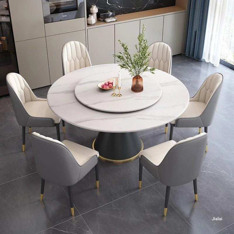 Factory Direct Sale Modern Minimalist Italian Dining Table and Chair Set - Stylish Round Table with Lazy Susan for Home Use, Perfect for Elegant Dining Experiences.