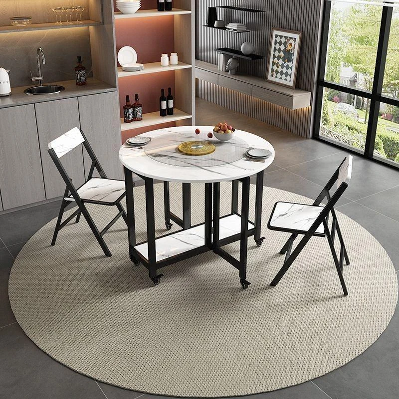 Multifunctional Solid Wood Folding Dining Table with Rotating Tray - Space-Saving Round Table for Small Homes, Easy to Move and Store with Chairs Included