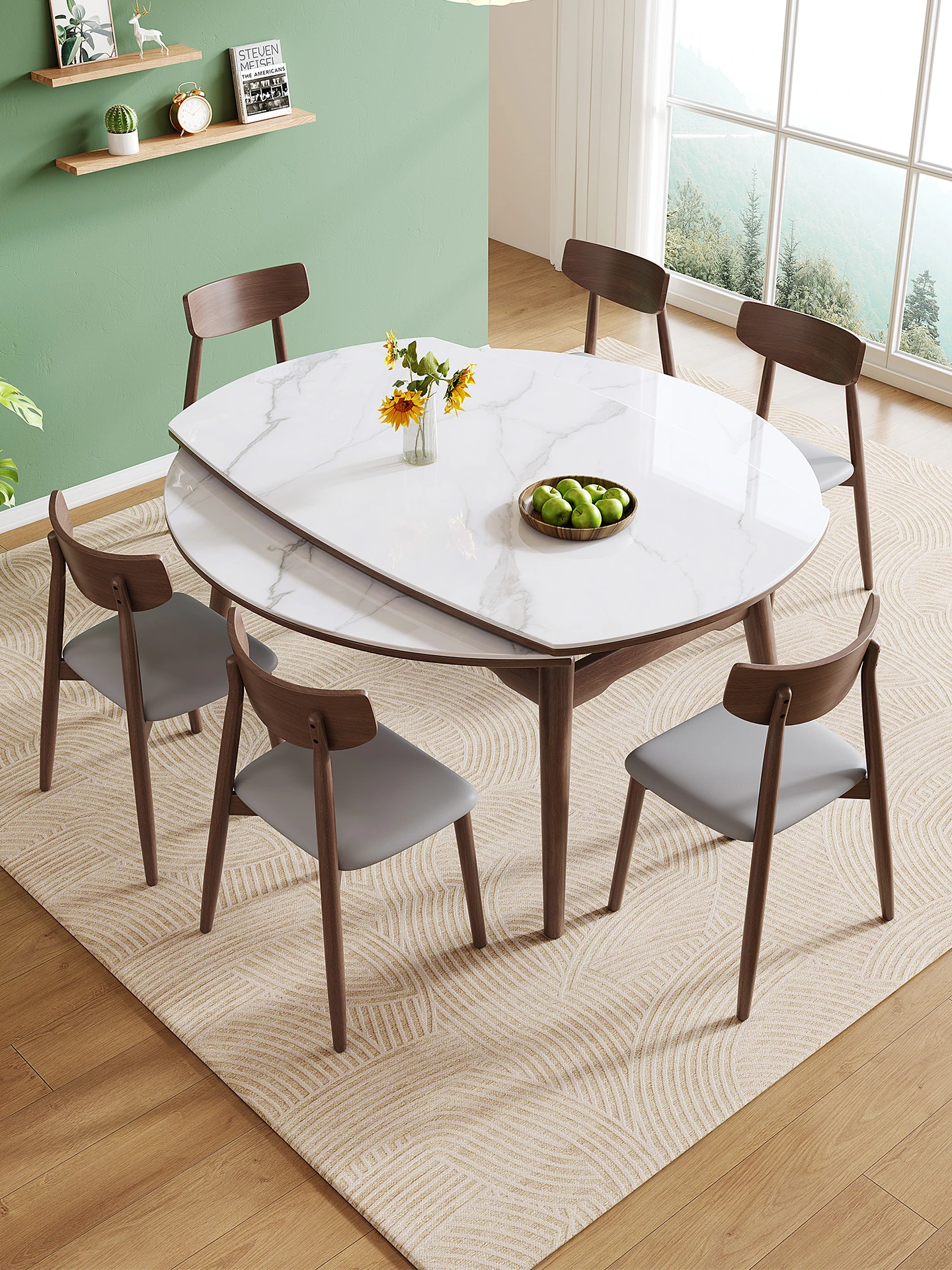 Creamy White Rock Slab Dining Table - Retractable and Foldable Modern Nordic Square Table Converts to Round, Perfect for Small Spaces