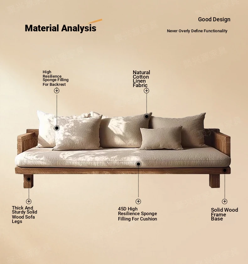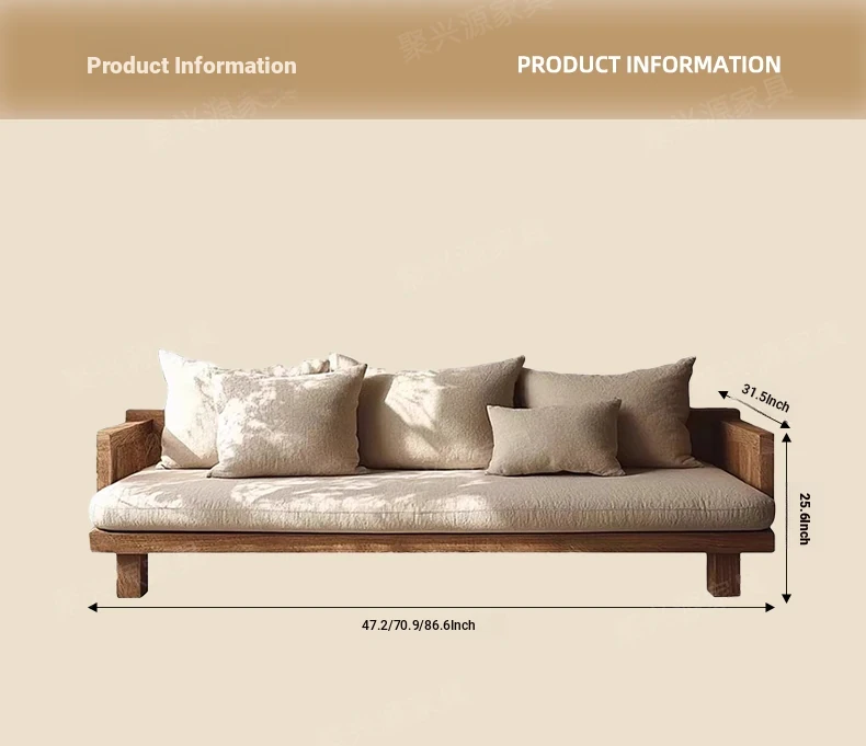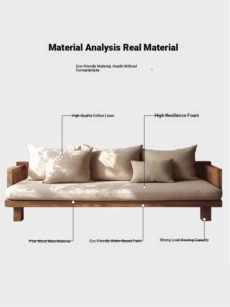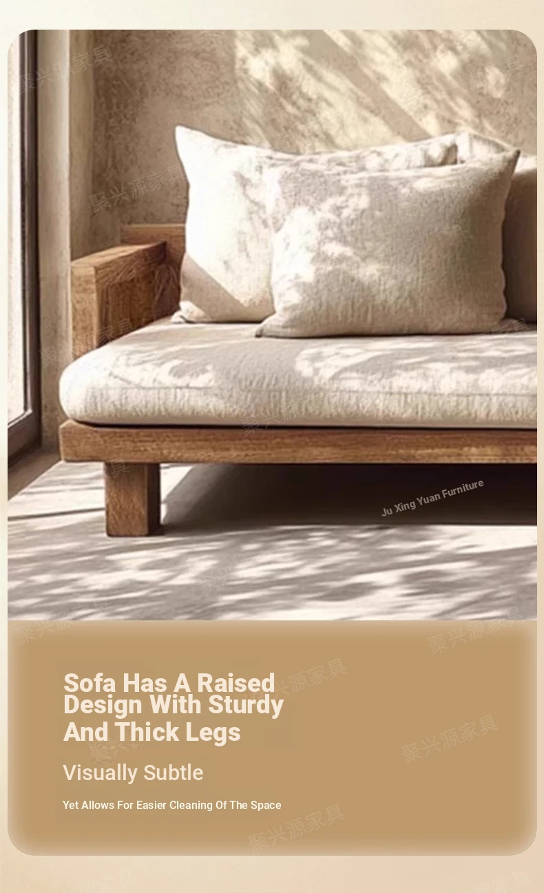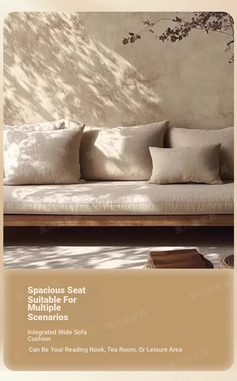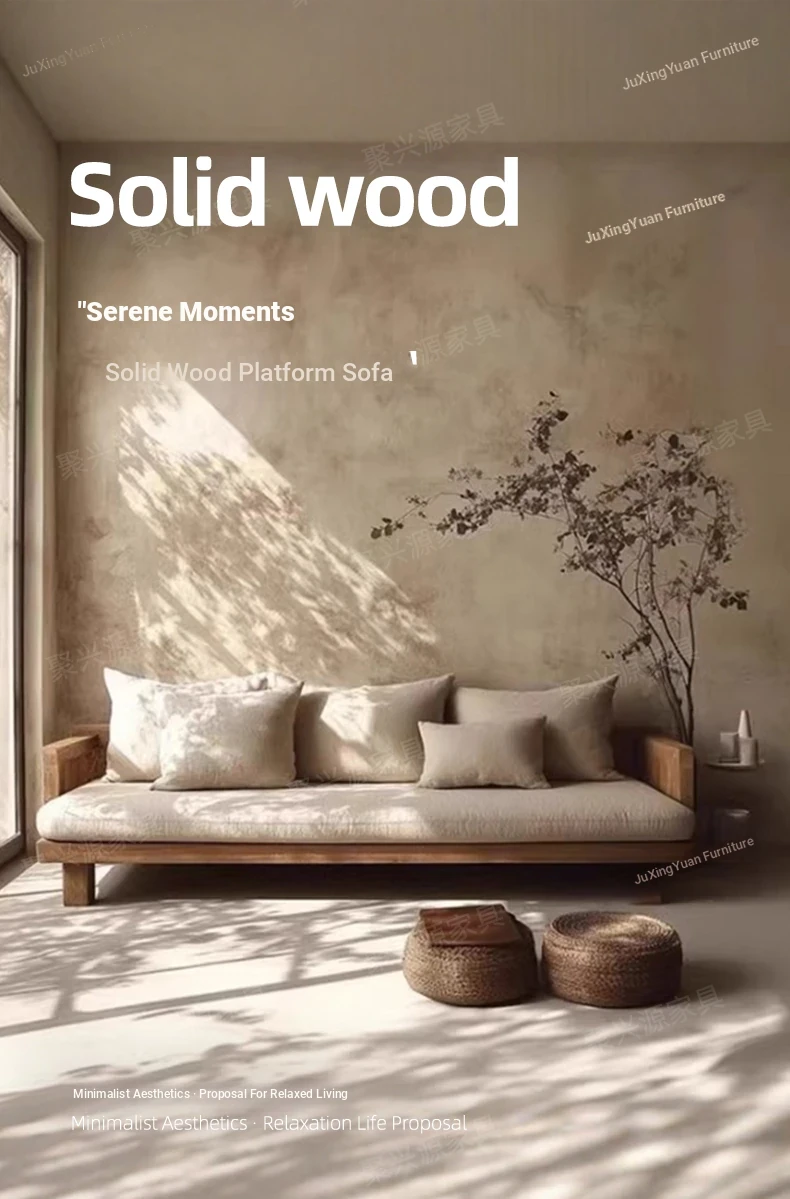 Natural Wood Wabi-Sabi Style Solid Wood Sofa for Small Spaces - Removable and Washable, Perfect for Living Rooms, Guesthouses, and Reception Areas - Accommodates 2 to 3 People