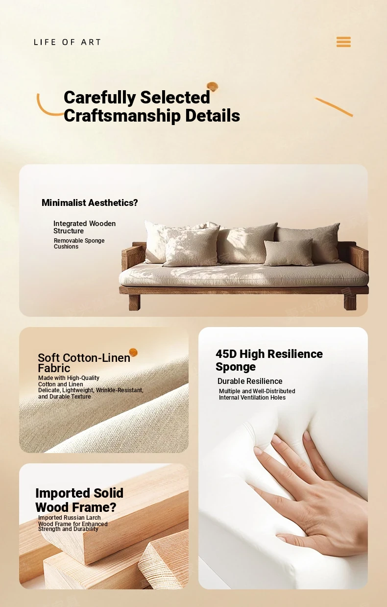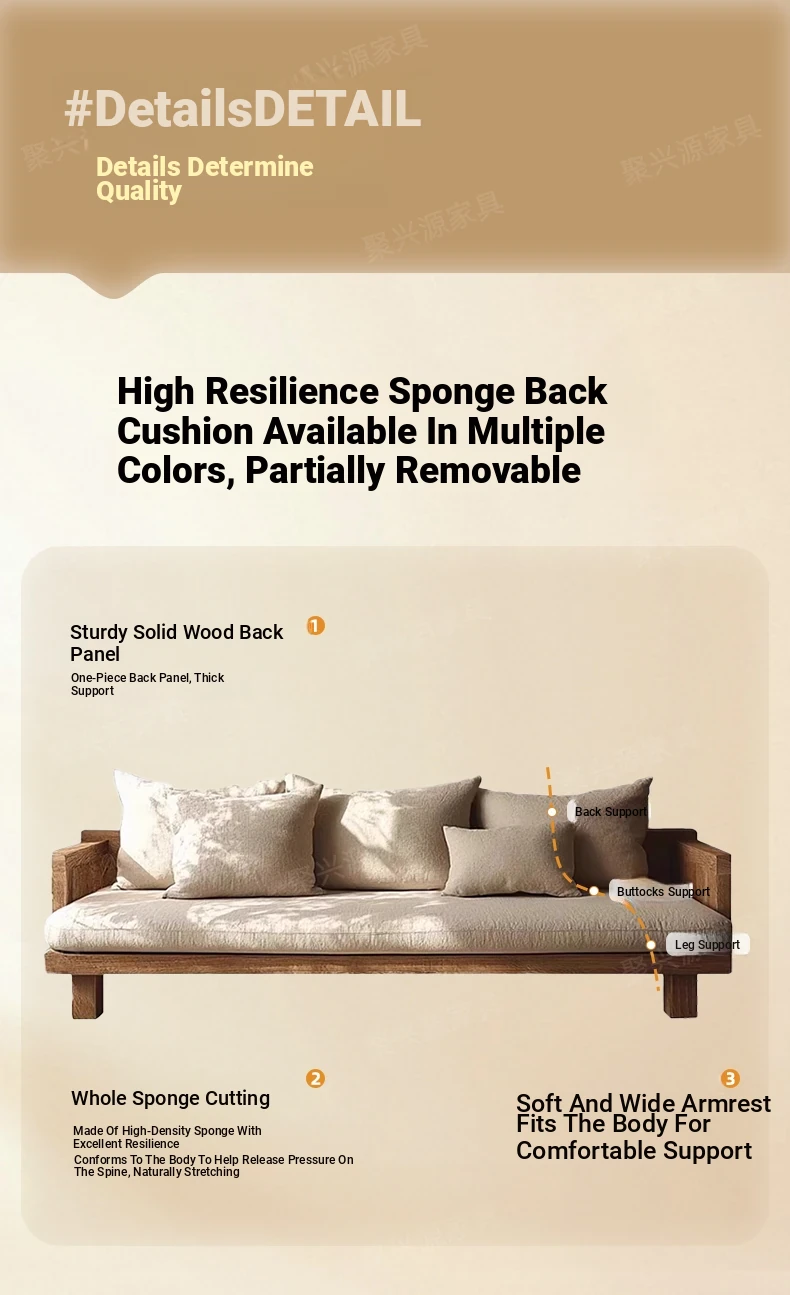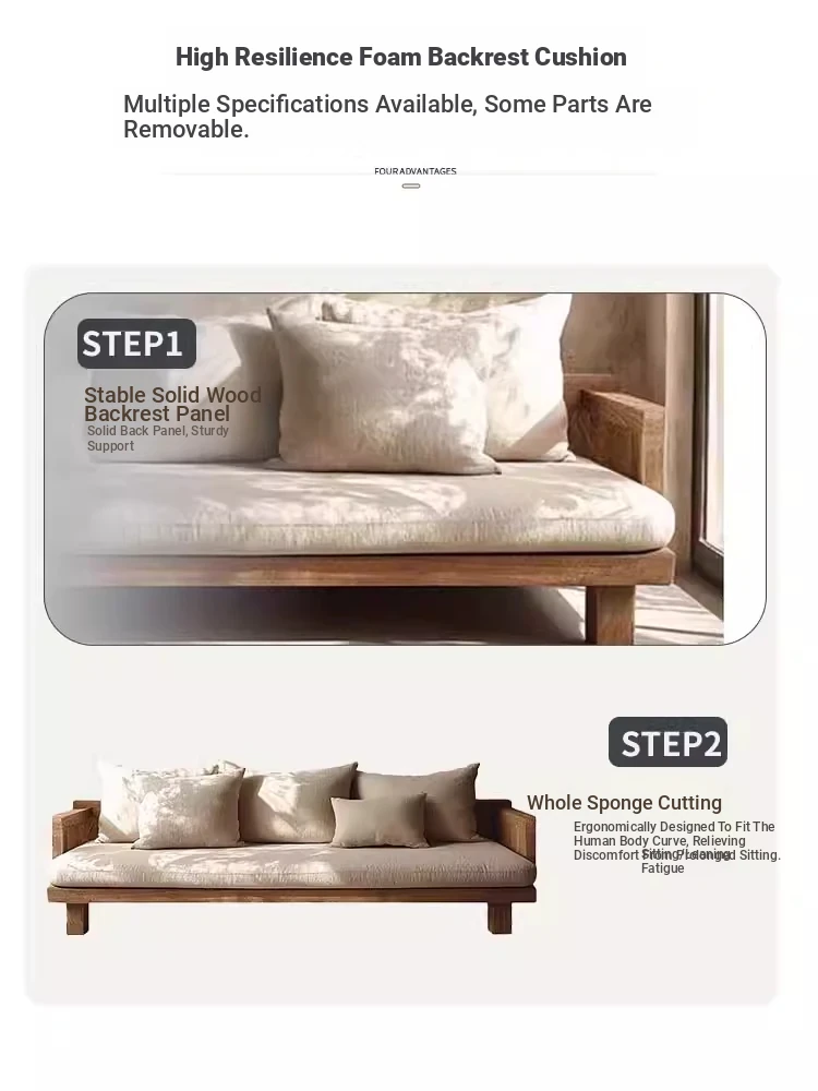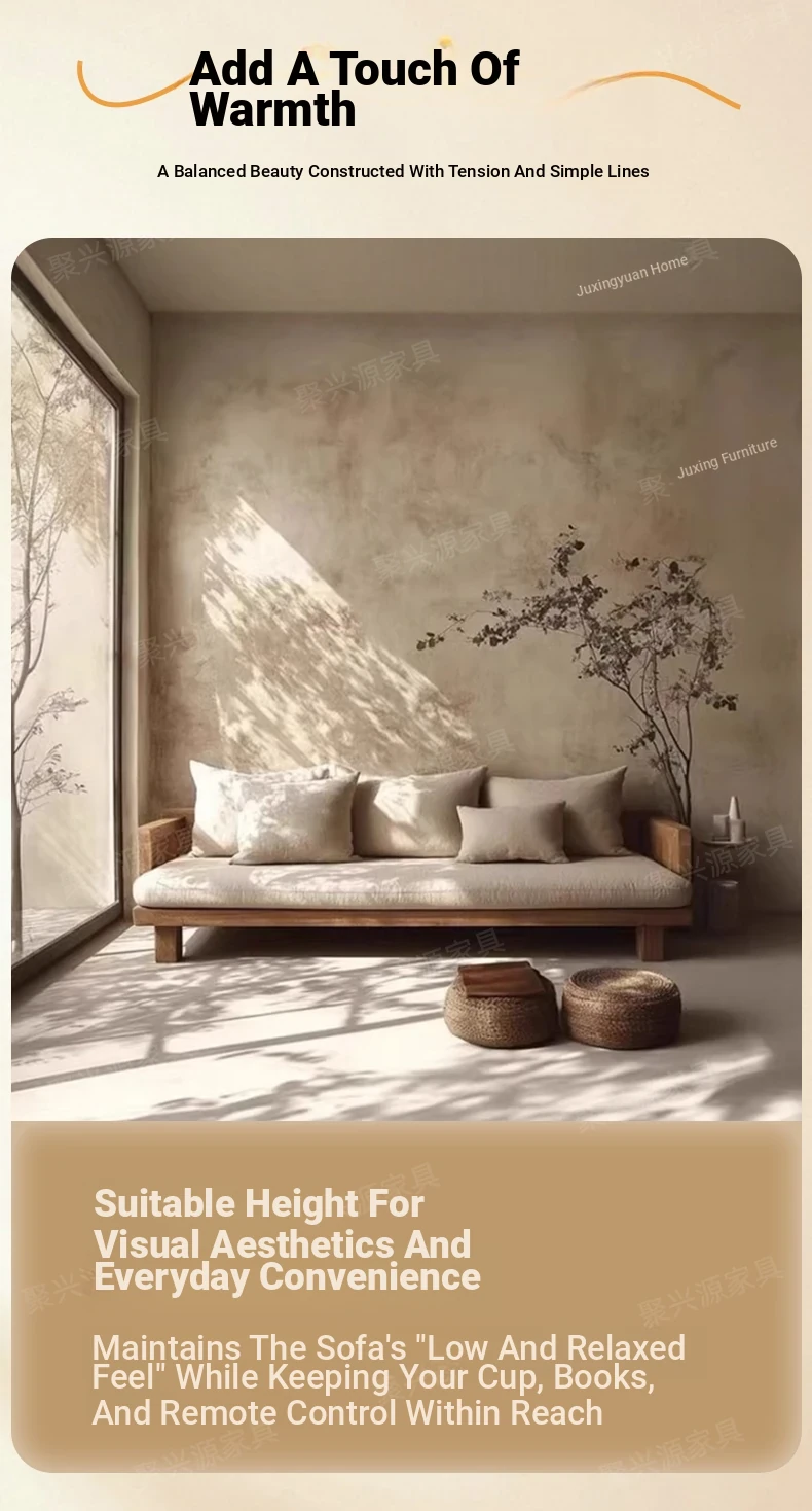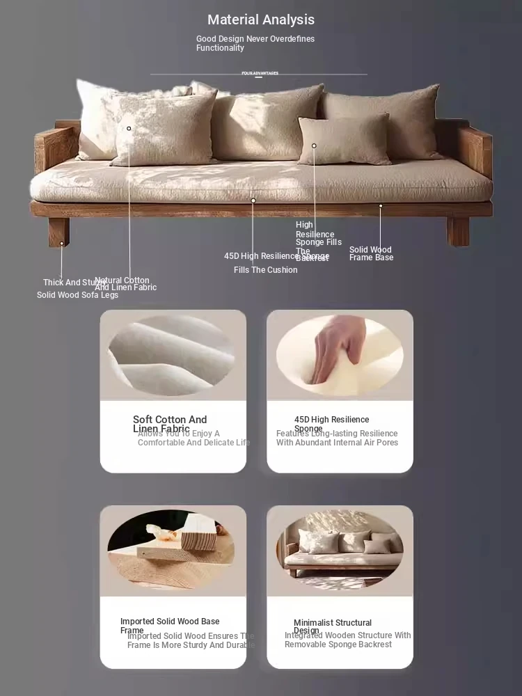 Natural Wood Wabi-Sabi Style Solid Wood Sofa for Small Spaces - Removable and Washable, Perfect for Living Rooms, Guesthouses, and Reception Areas - Accommodates 2 to 3 People