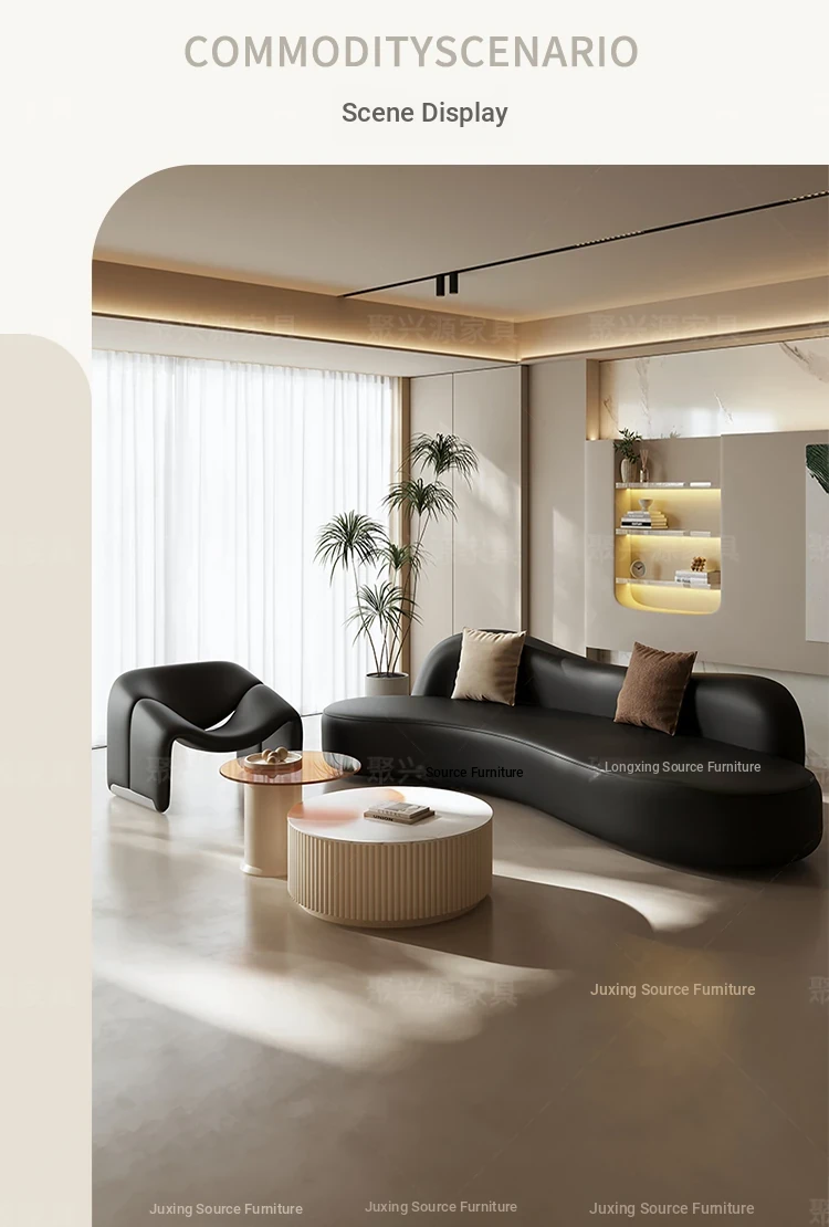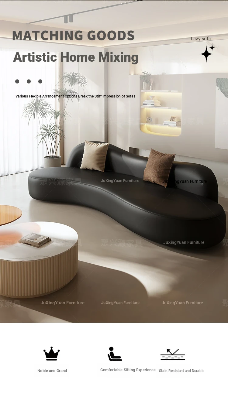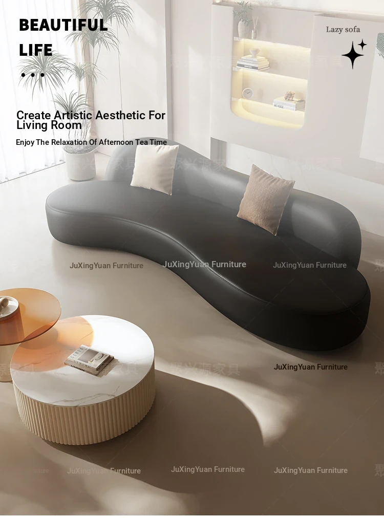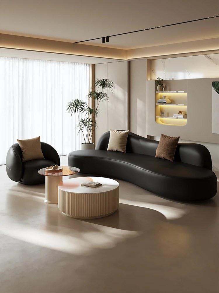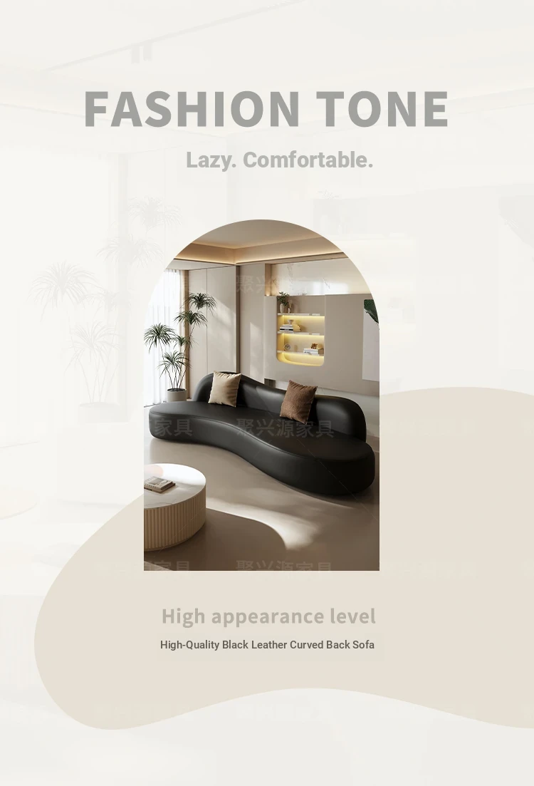 Unique Curved Sofa for Reception Areas - Stylish Black Design for Fashion Stores, Beauty Salons, Offices, and Hotel Lobbies. Perfect for Creating a Welcoming Atmosphere!