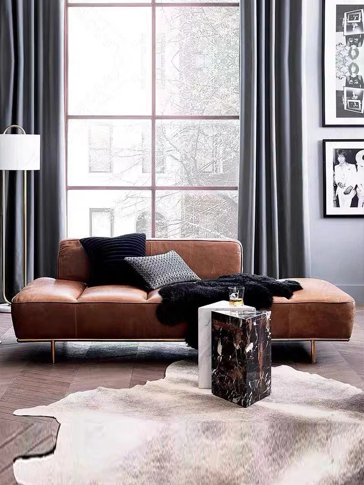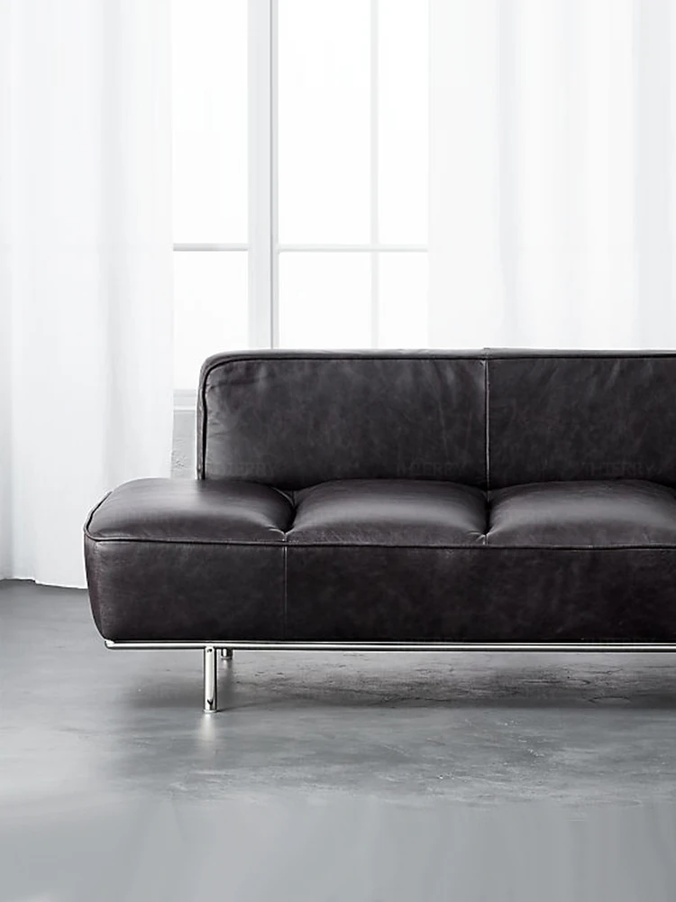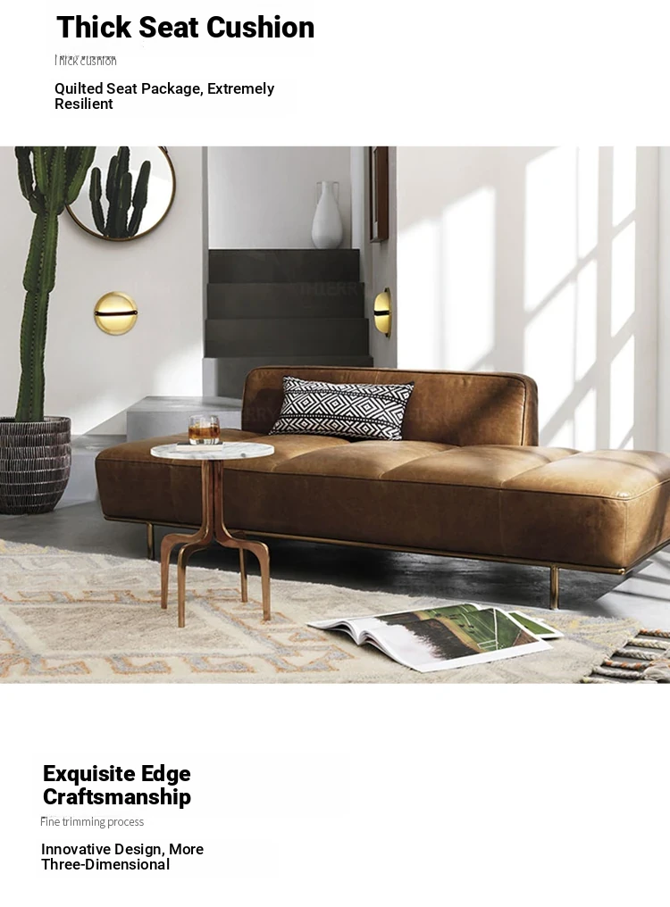 Wabi-Sabi Inspired Minimalist Luxury Nordic Genuine Leather Chaise Lounge - Creative Princess Daybed for Small Living Rooms and Stylish Airbnb Stays