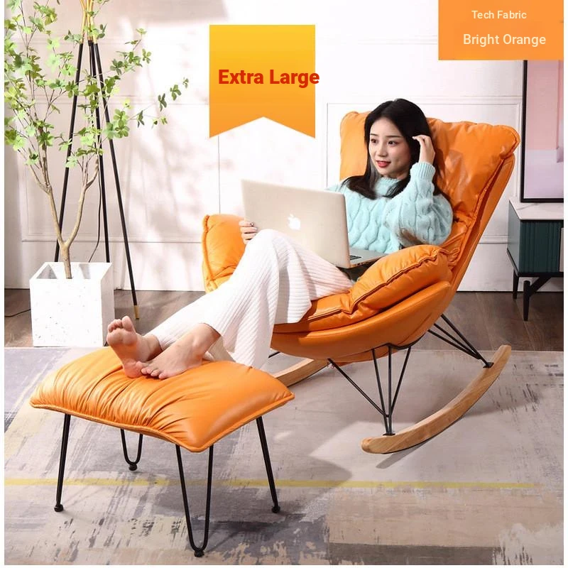 Lazy Sofa Rocking Chair - Versatile Recliner for Relaxation and Sleep, Perfect for Home, Living Room, or Balcony - Stylish Egg Chair with Real Leather Upholstery - Ideal for Comfortable Solo Leisure Time