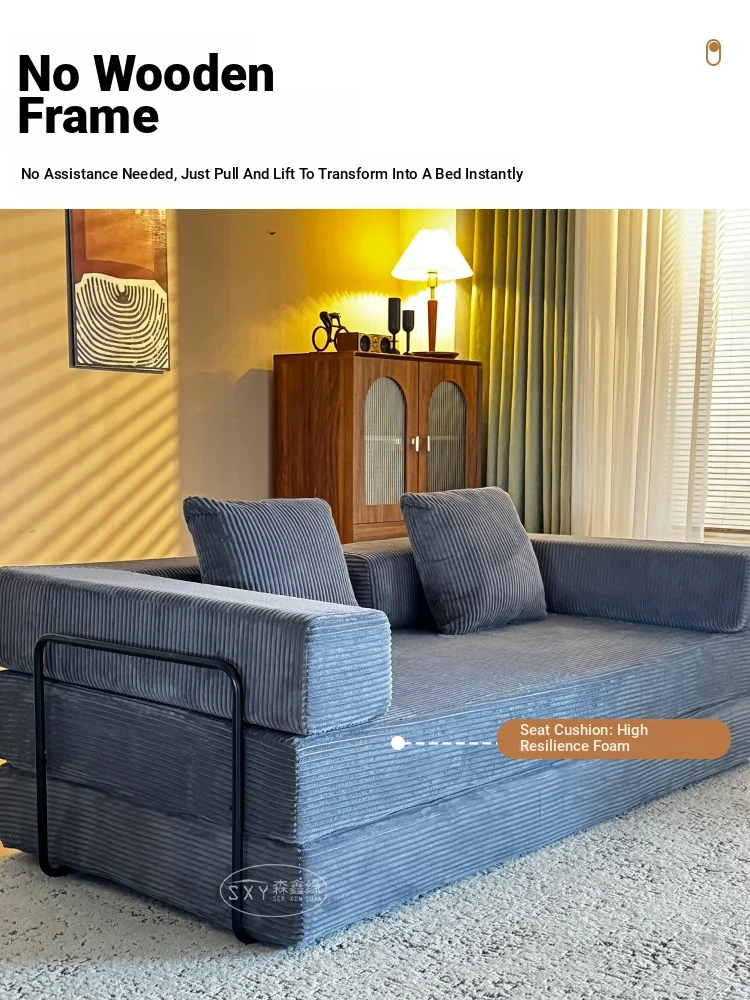 Modern Vacuum Compressed Modular Sofa Bed - Versatile Chenille Fabric Design for Tatami Style, All-in-One Foam Sofa Bed for Ultimate Comfort and Space Saving.