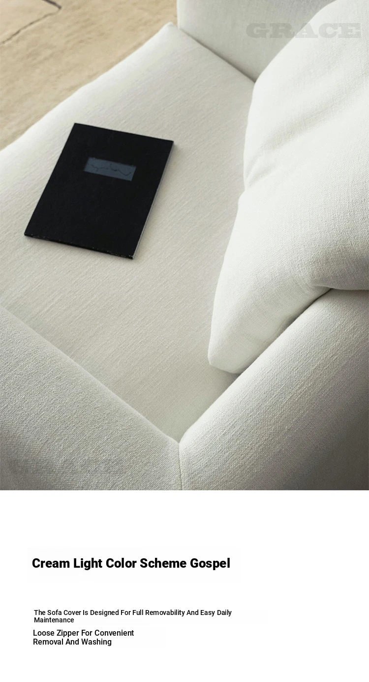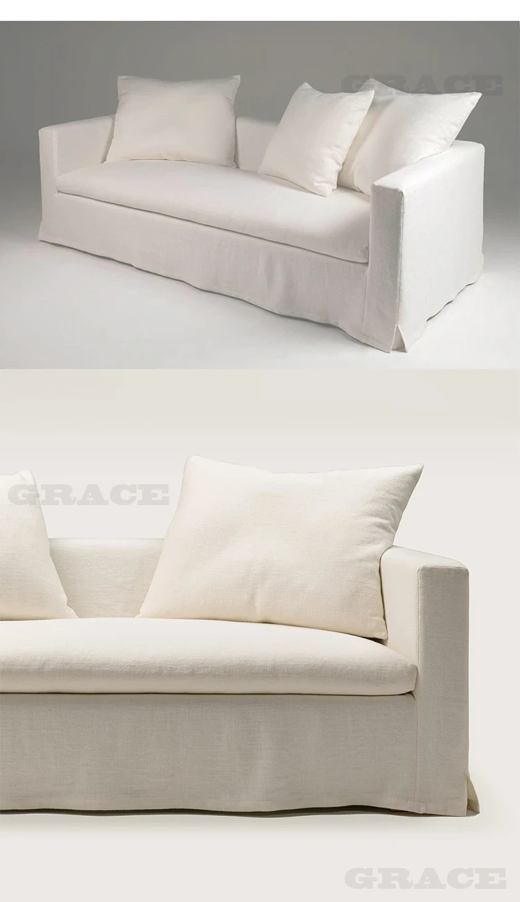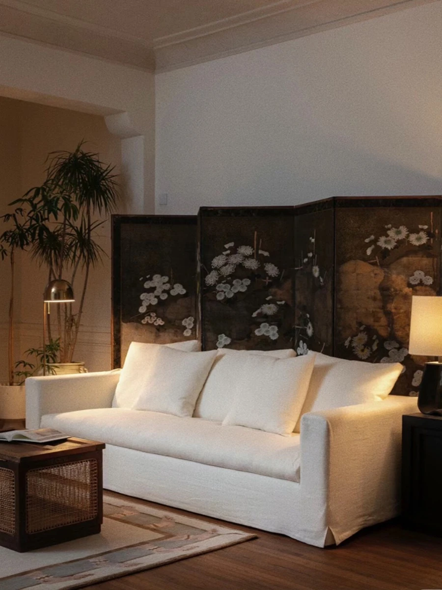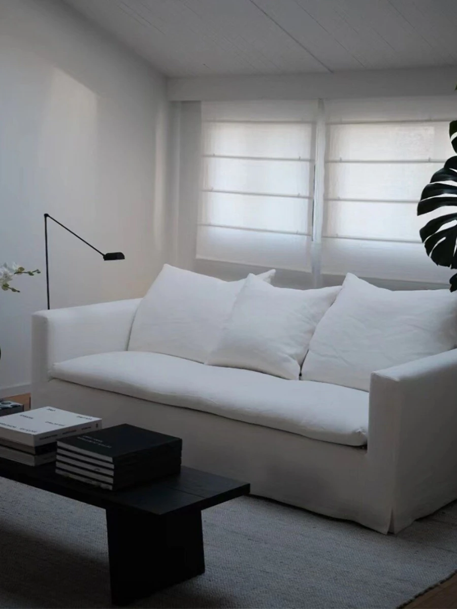American Vintage Cream Wabi-Sabi Cotton Linen Sofa - Designer Removable Washable Couch for Small Apartments and Hotels, Perfect for Cozy Spaces