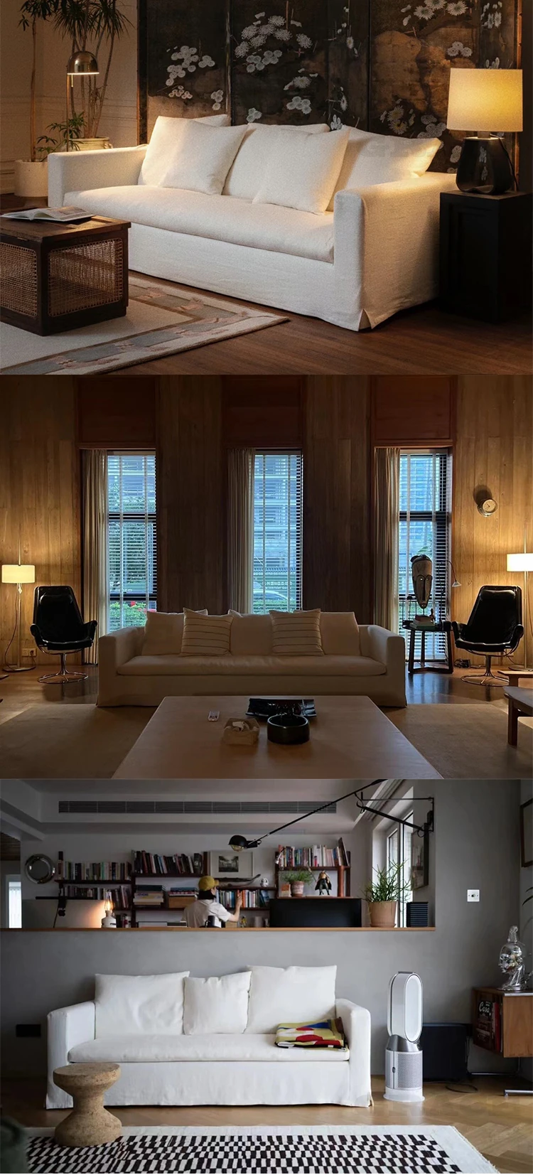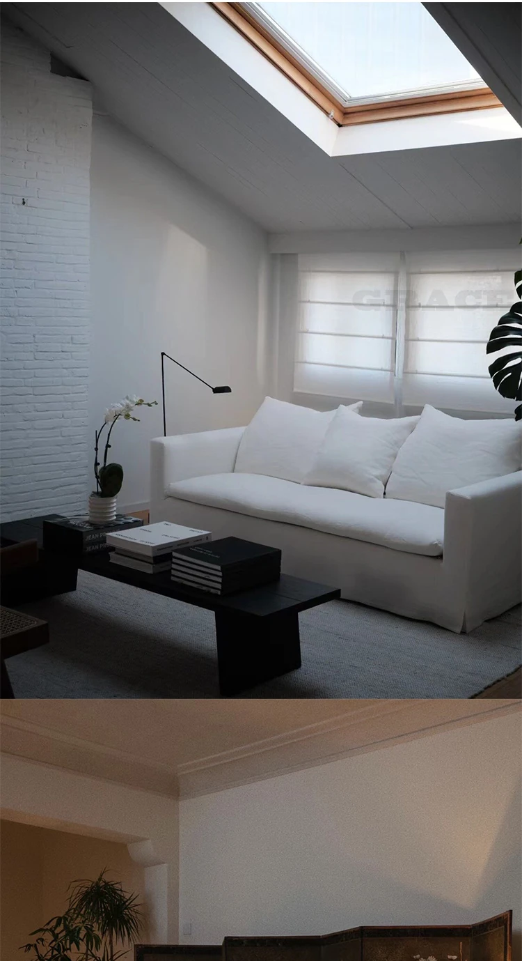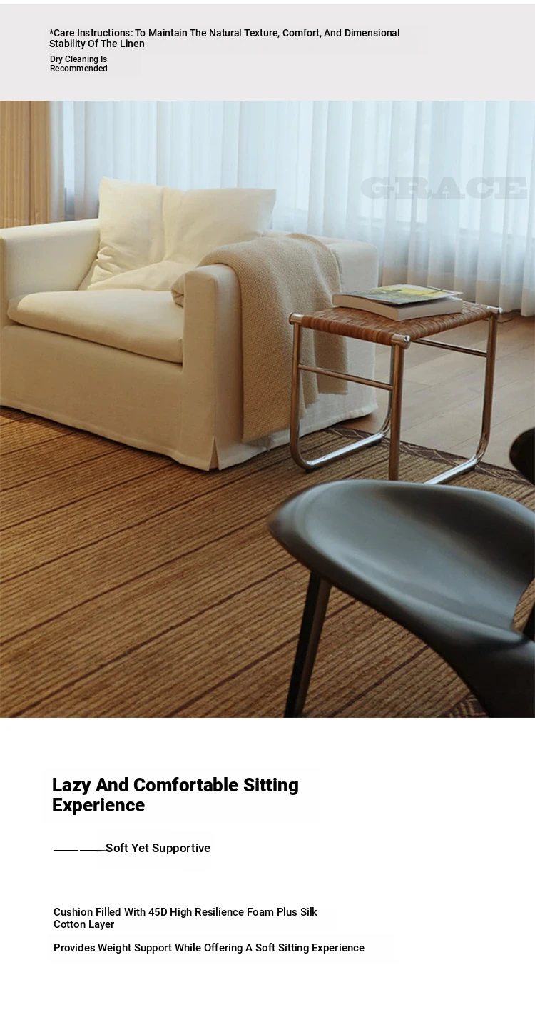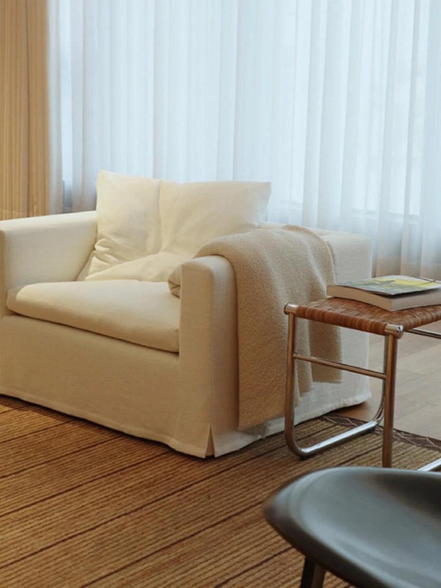 American Vintage Cream Wabi-Sabi Cotton Linen Sofa - Designer Removable Washable Couch for Small Apartments and Hotels, Perfect for Cozy Spaces