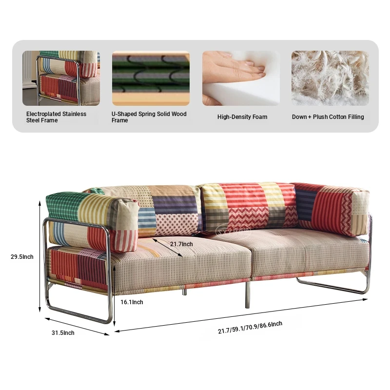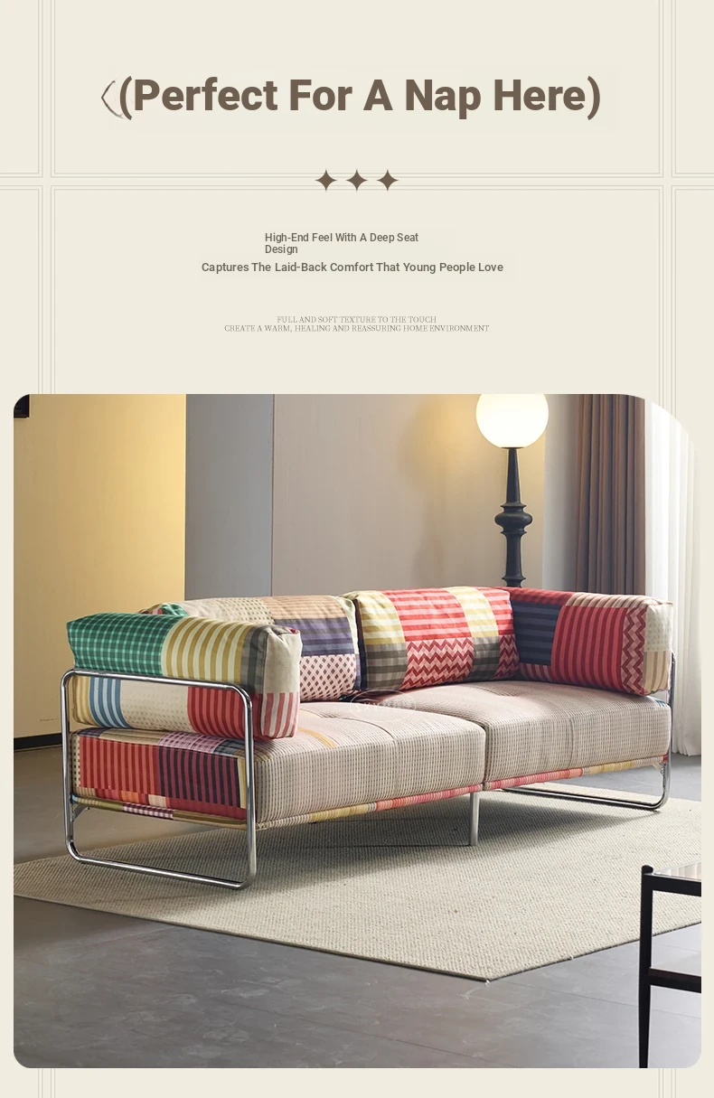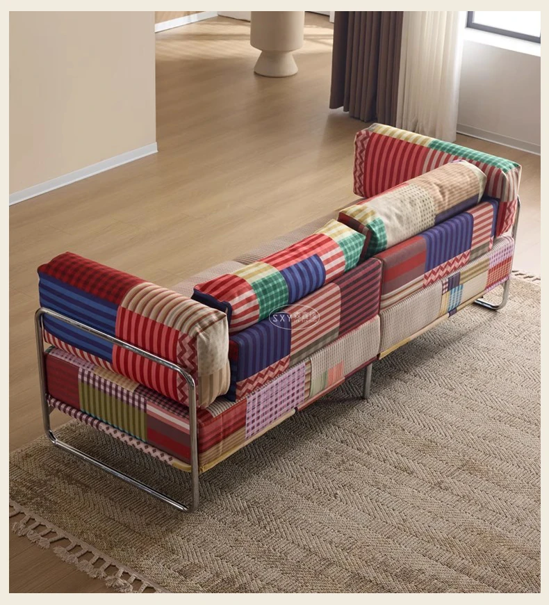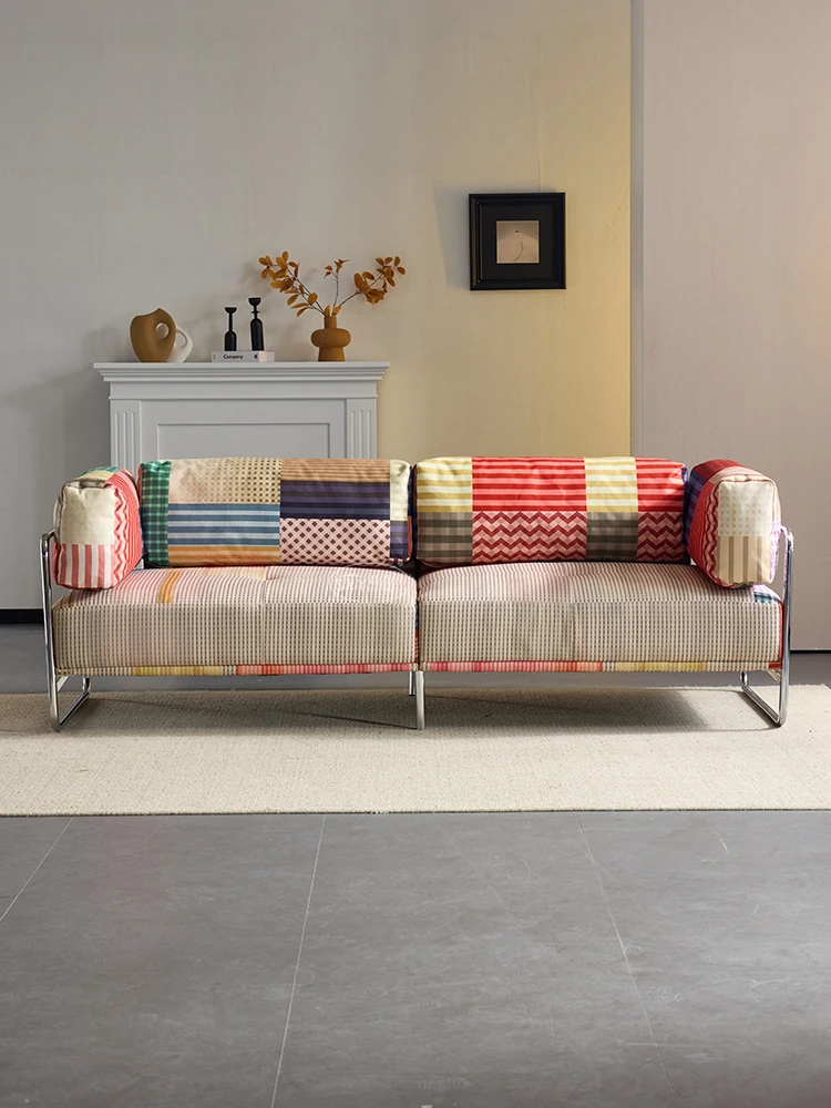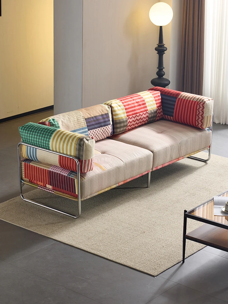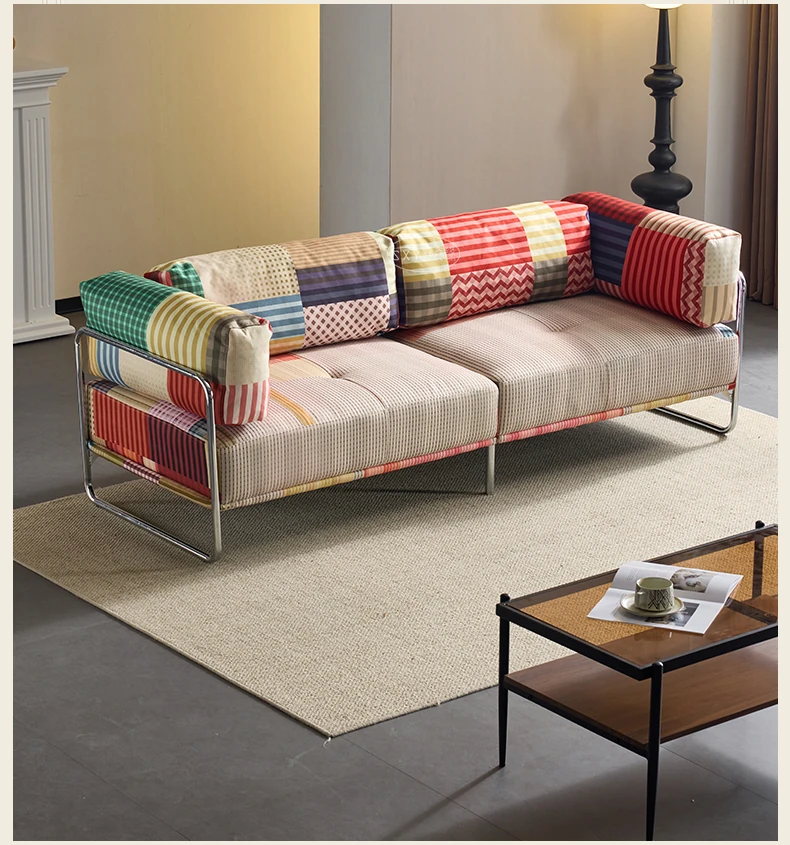 バウハウス風レトロ虹色ソファ 小型リビングにぴったり ダブルスリーピース 様々なスタイルにマッチする多ドーパミンファブリックソファ