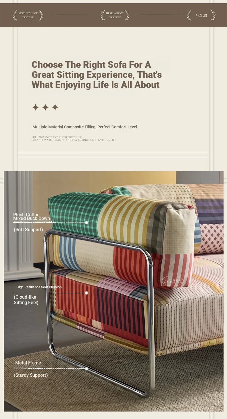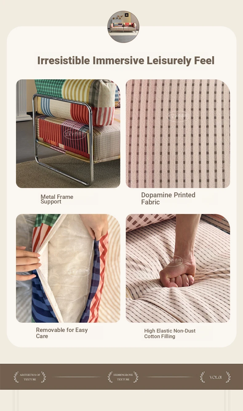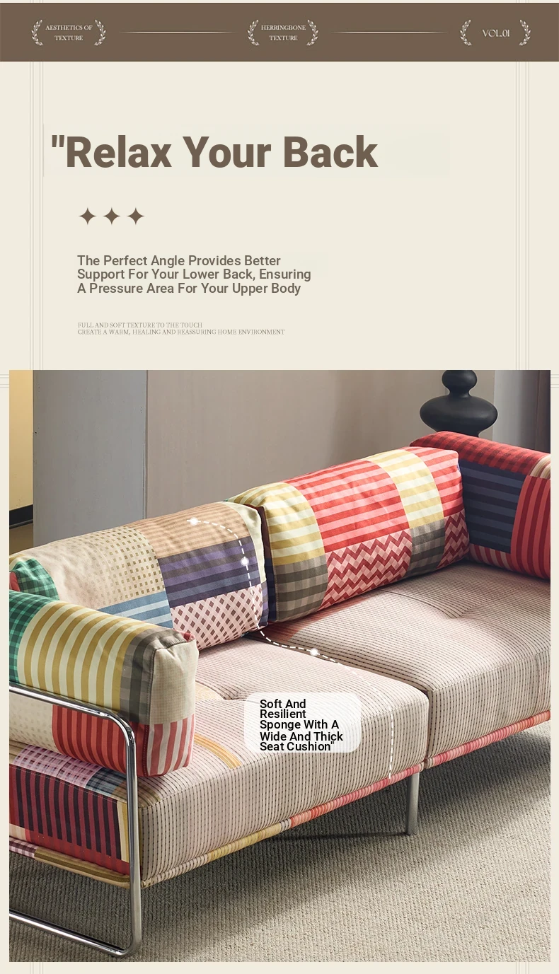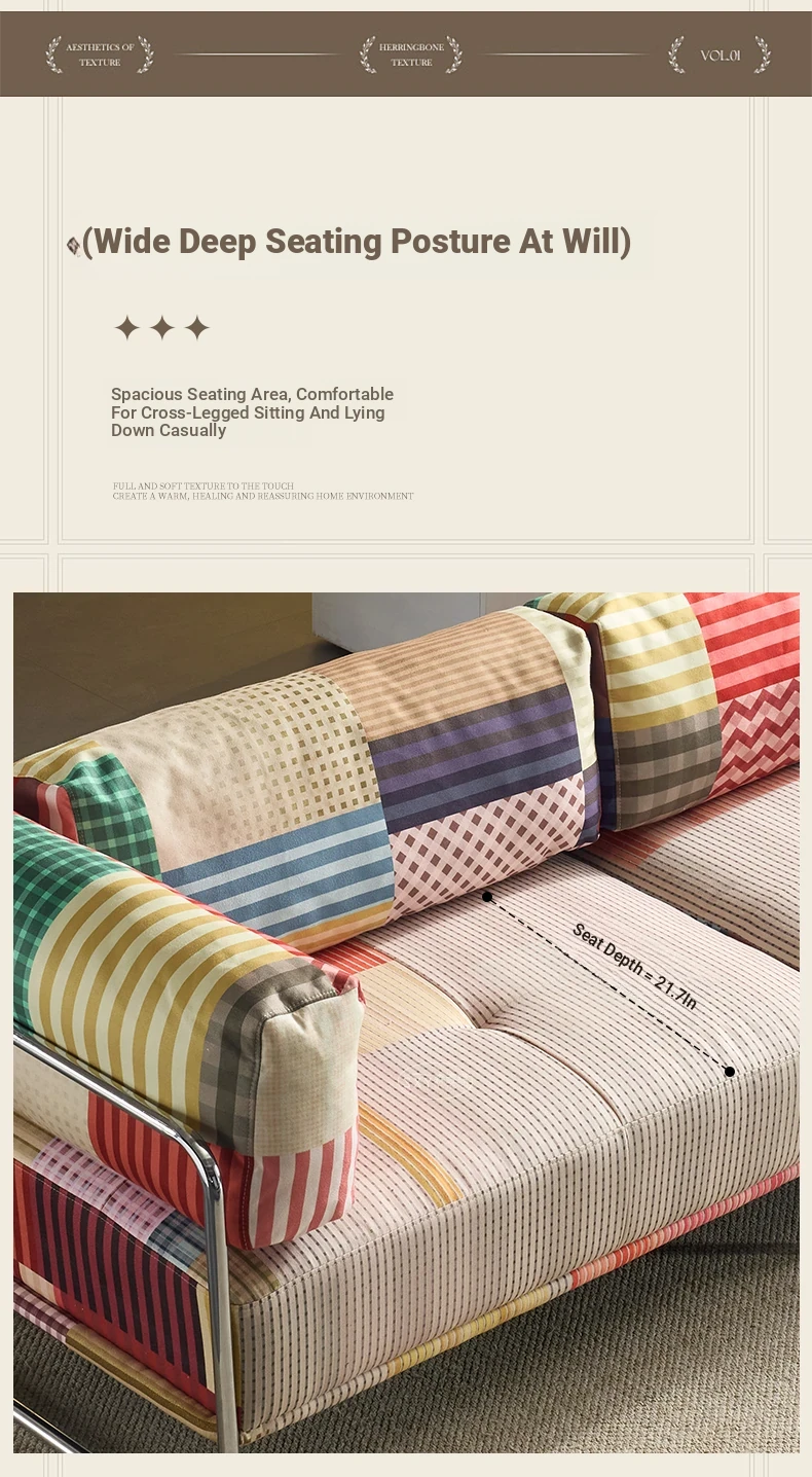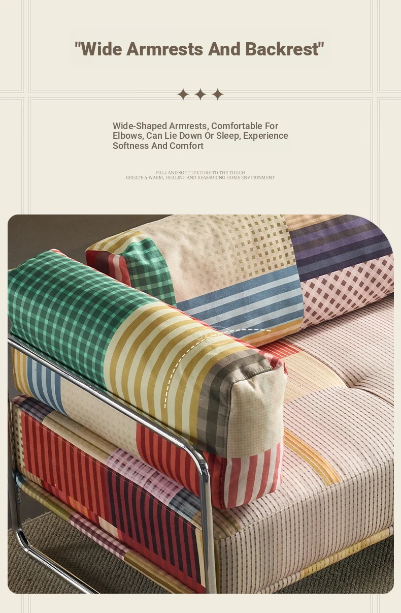 バウハウス風レトロ虹色ソファ 小型リビングにぴったり ダブルスリーピース 様々なスタイルにマッチする多ドーパミンファブリックソファ