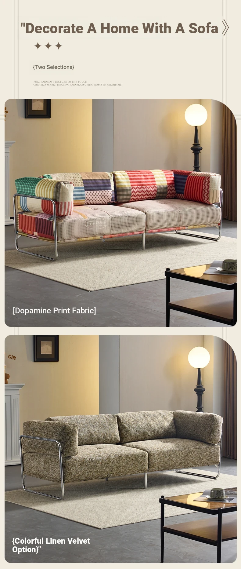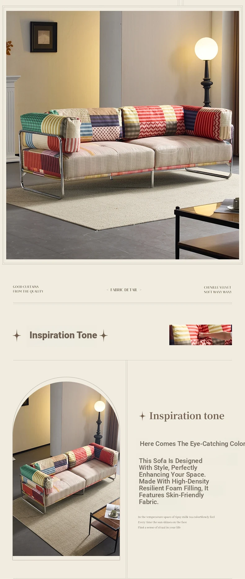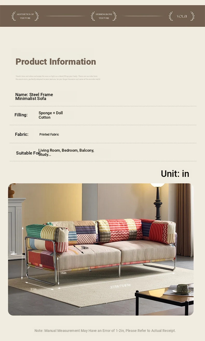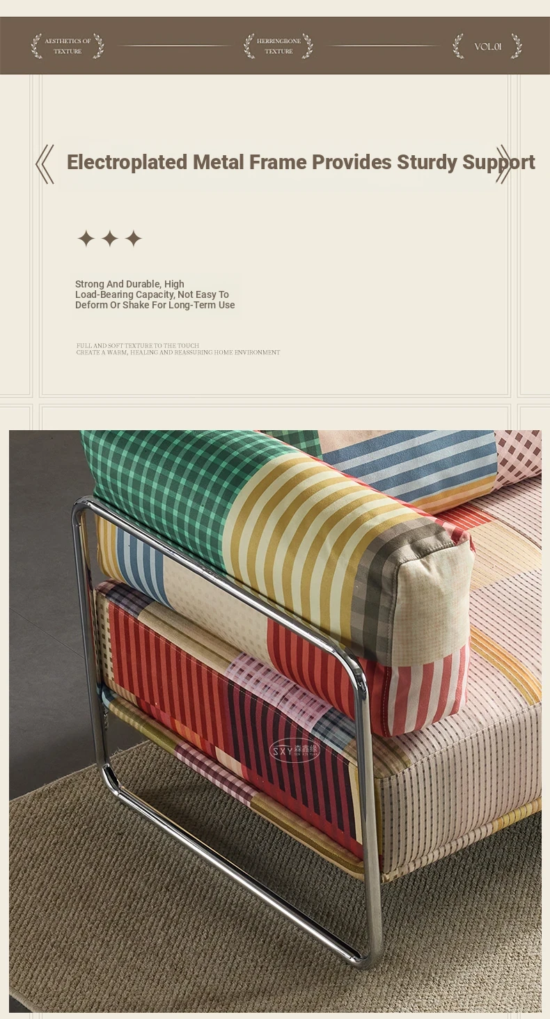バウハウス風レトロ虹色ソファ 小型リビングにぴったり ダブルスリーピース 様々なスタイルにマッチする多ドーパミンファブリックソファ