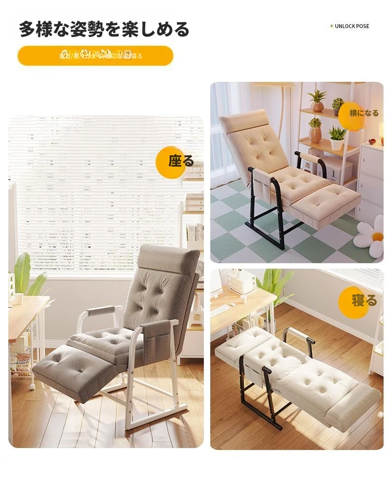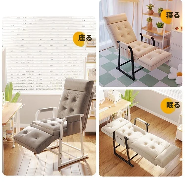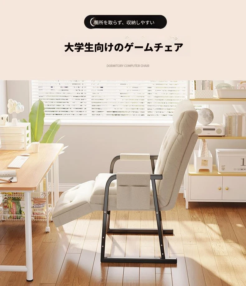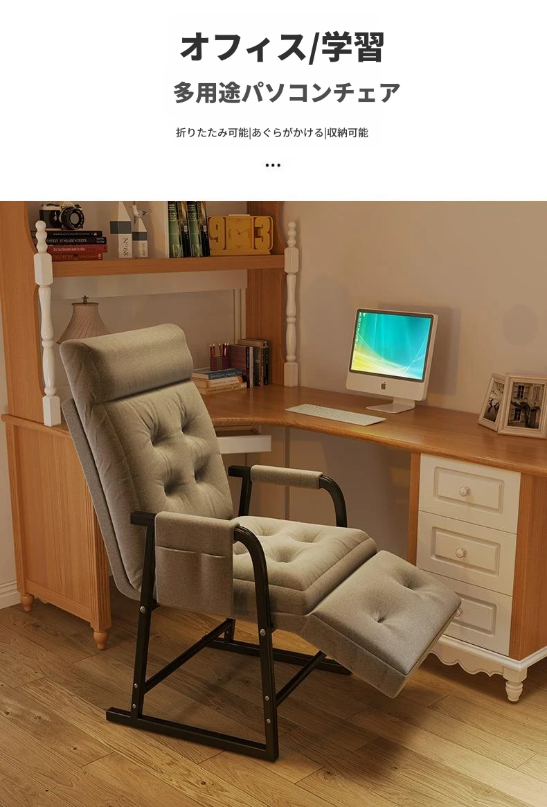 快適なリクライニングオフィスチェア!小型スペースに最適なシンプルデザインのパソコンチェア。家でリラックスしながら仕事や読書を楽しめる、調整可能な背もたれ付きのソファチェア。