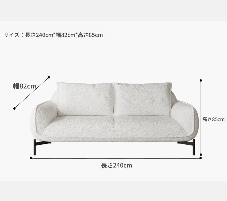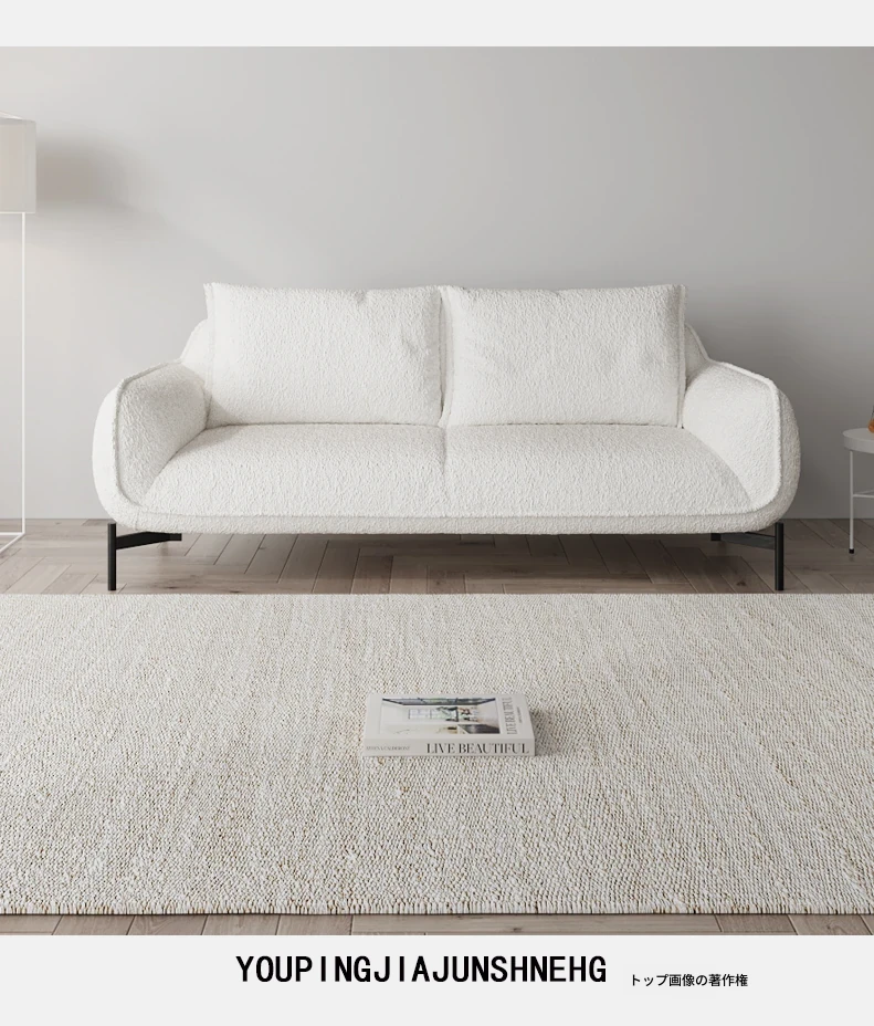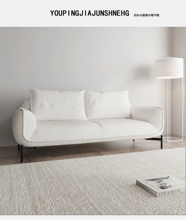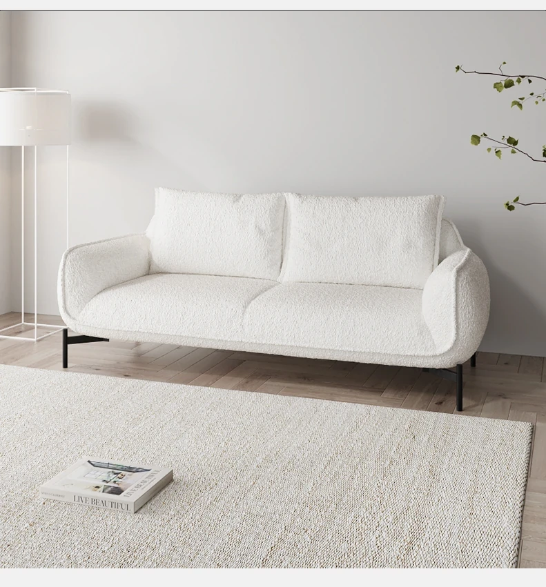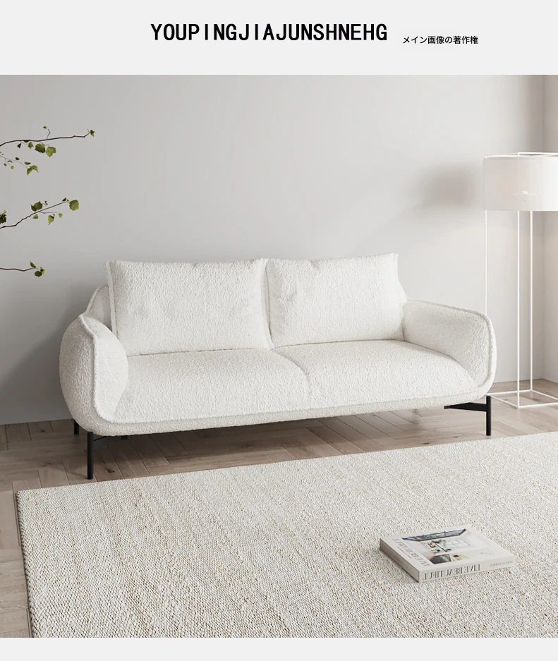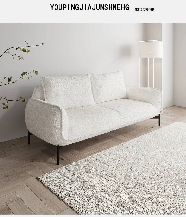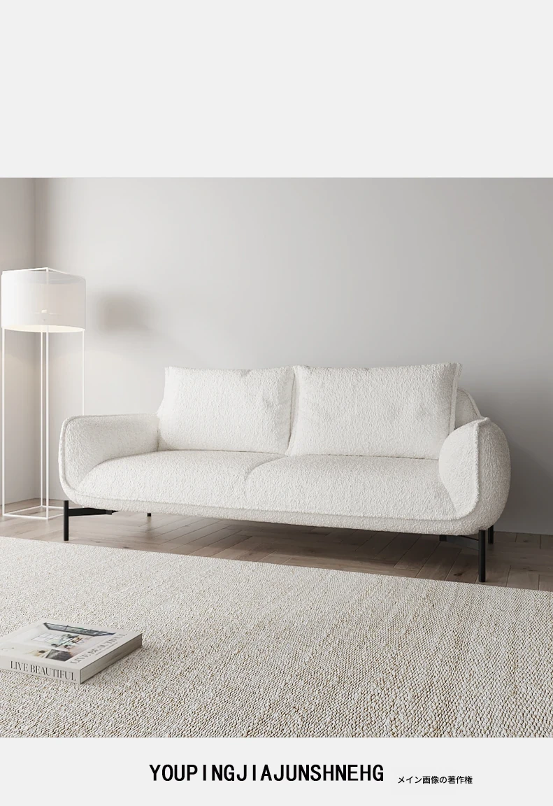 クリーミーな風合いの布製ミニマリストソファ!北欧スタイルの羊毛フランスデザイン、レトロ感漂う小型リビングにぴったり。おしゃれで快適な空間を演出!
