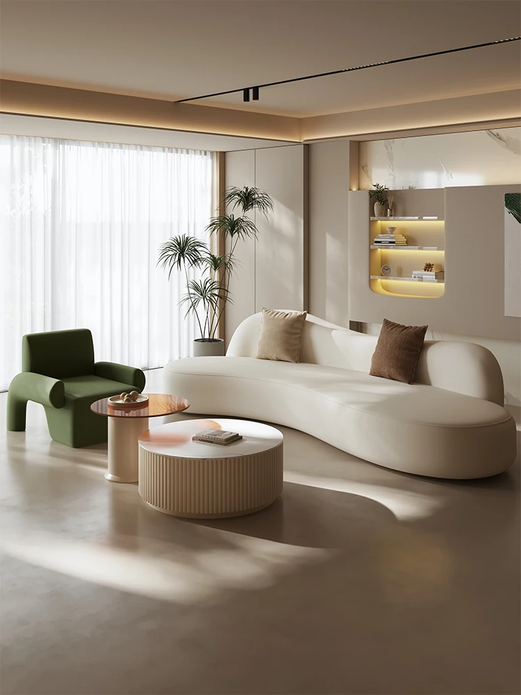 2025年新作!弧形デザインの異形ソファ - 小型住宅や休憩スペースに最適!美容院、衣料品店、オフィス、ホテルの打ち合わせにもぴったり。スタイリッシュで快適な空間を演出します!