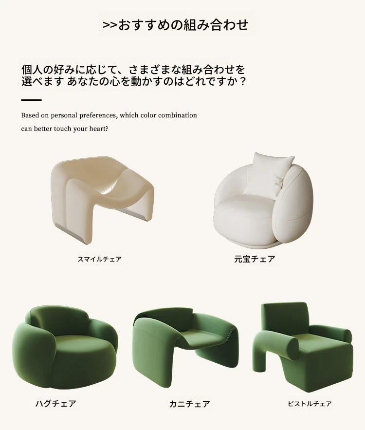 カニチェア+2.1メートルソファ+テーブル 購入でクッションプレゼント