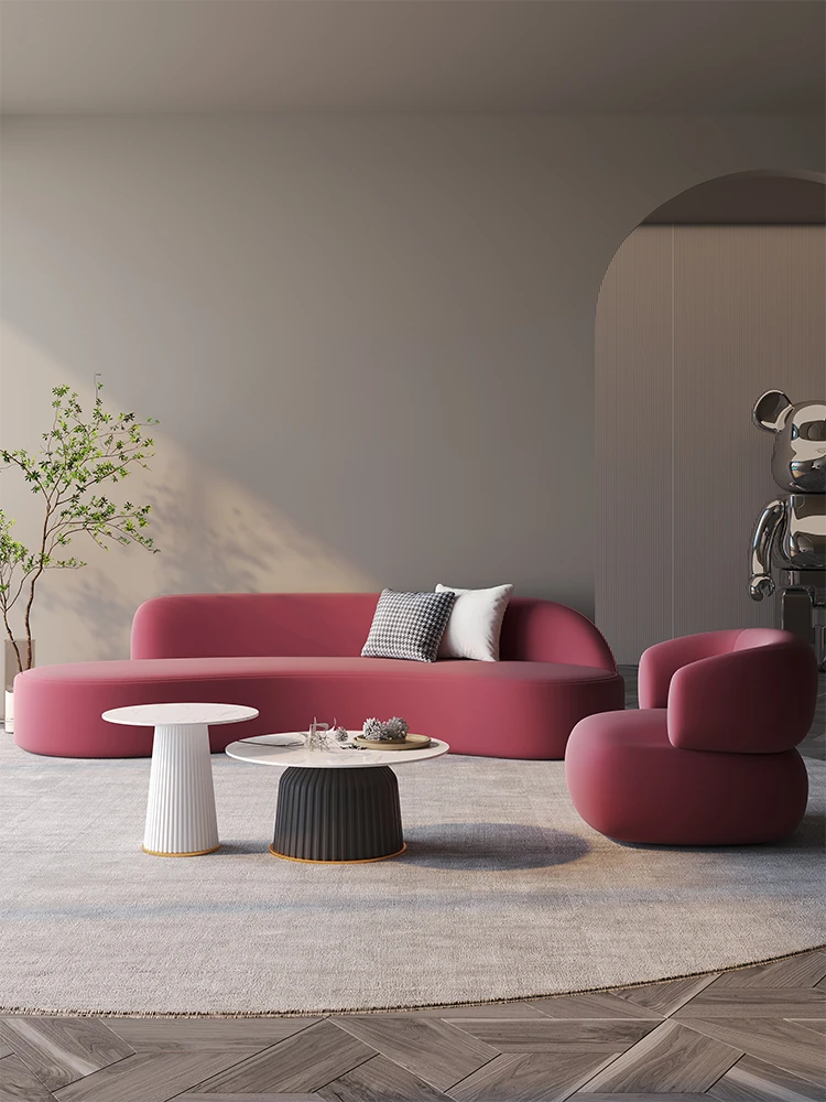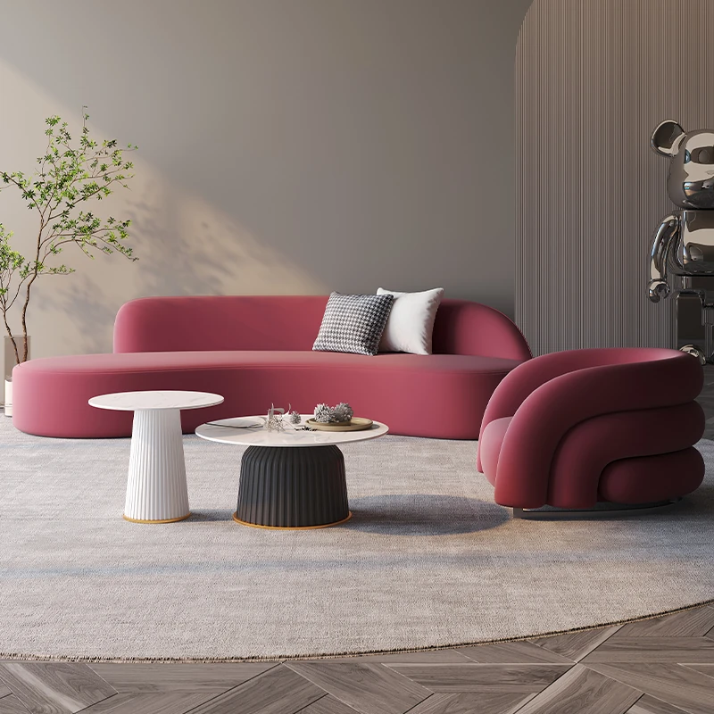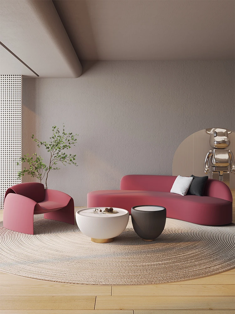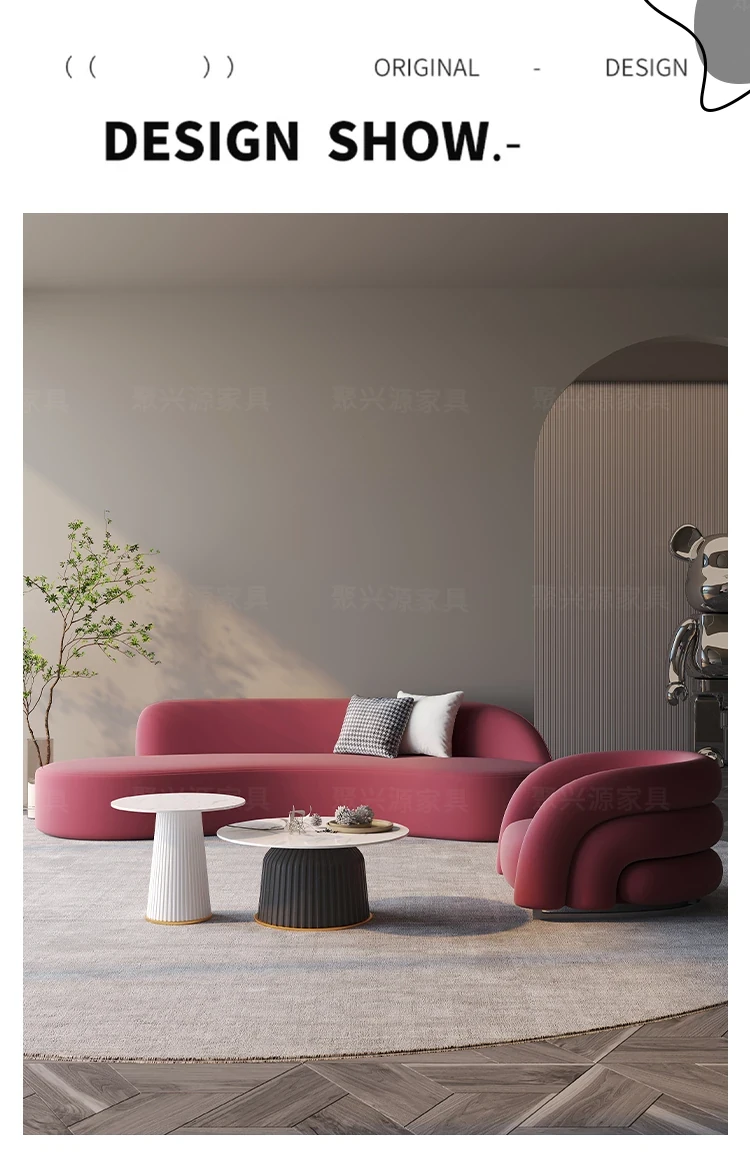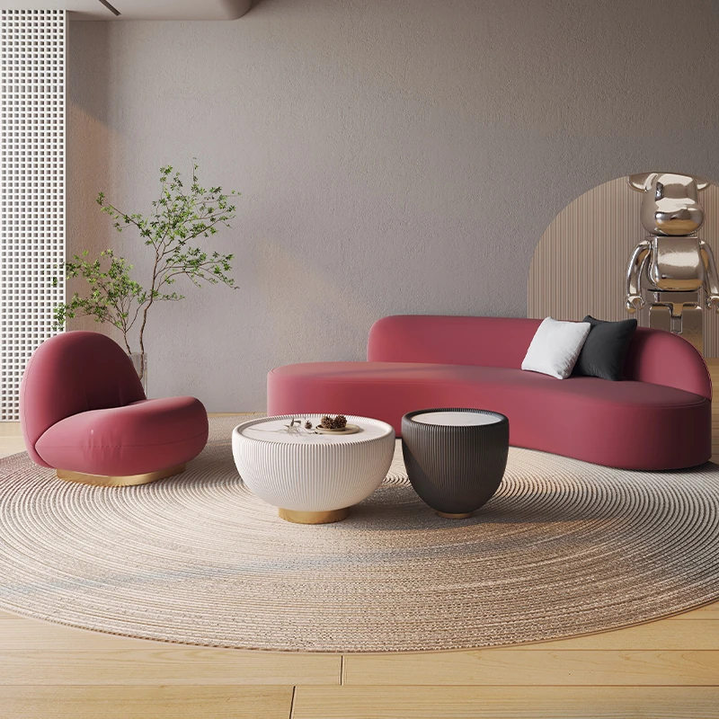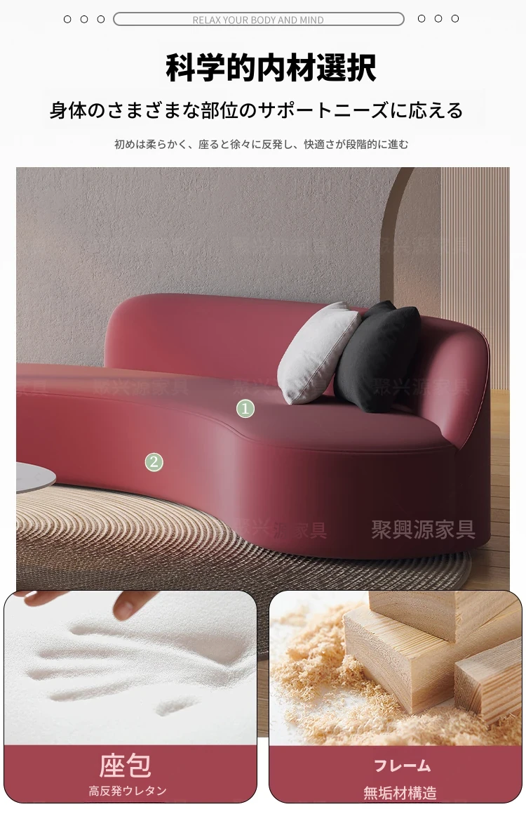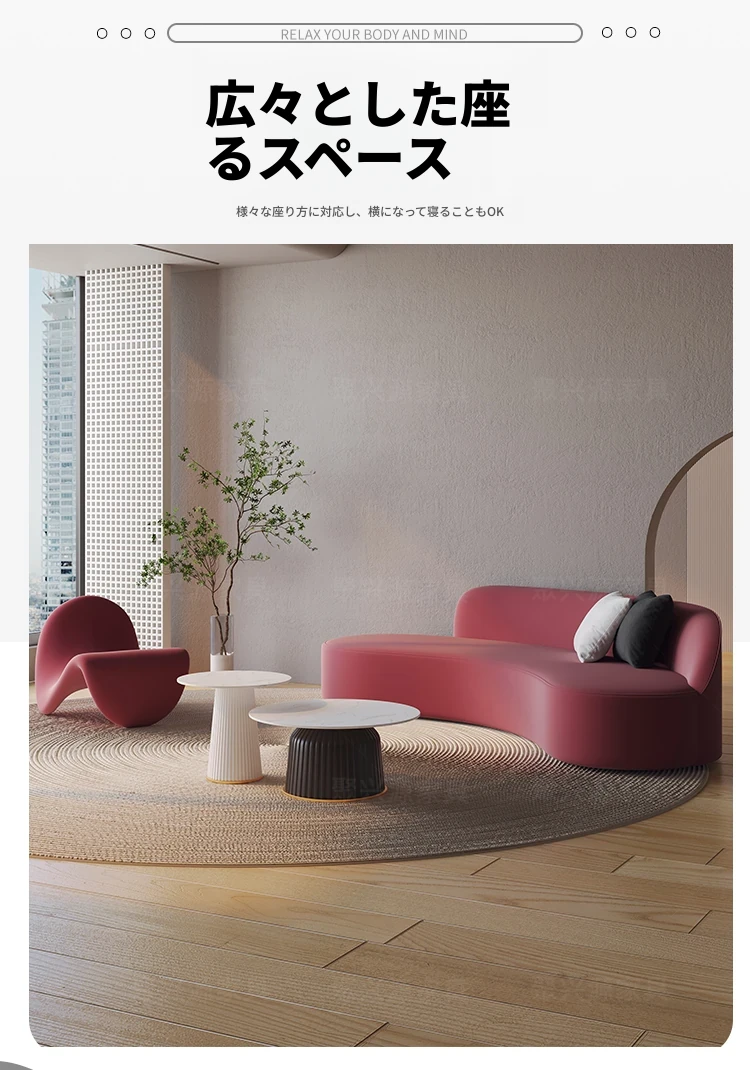 アーチ型ソファー 小型スペースに最適なバーガンディ色 おしゃれな服装店や美容院、オフィス、ホテルロビーの休憩エリアにぴったり!快適さとスタイルを兼ね備えたデザインで、訪れる人々を魅了します。