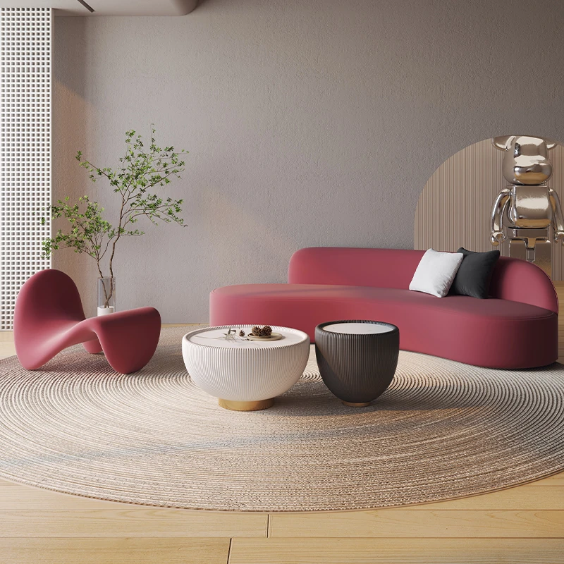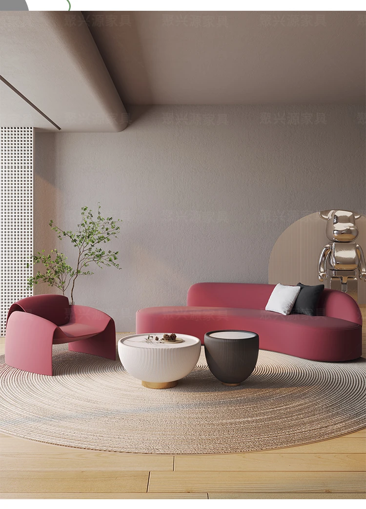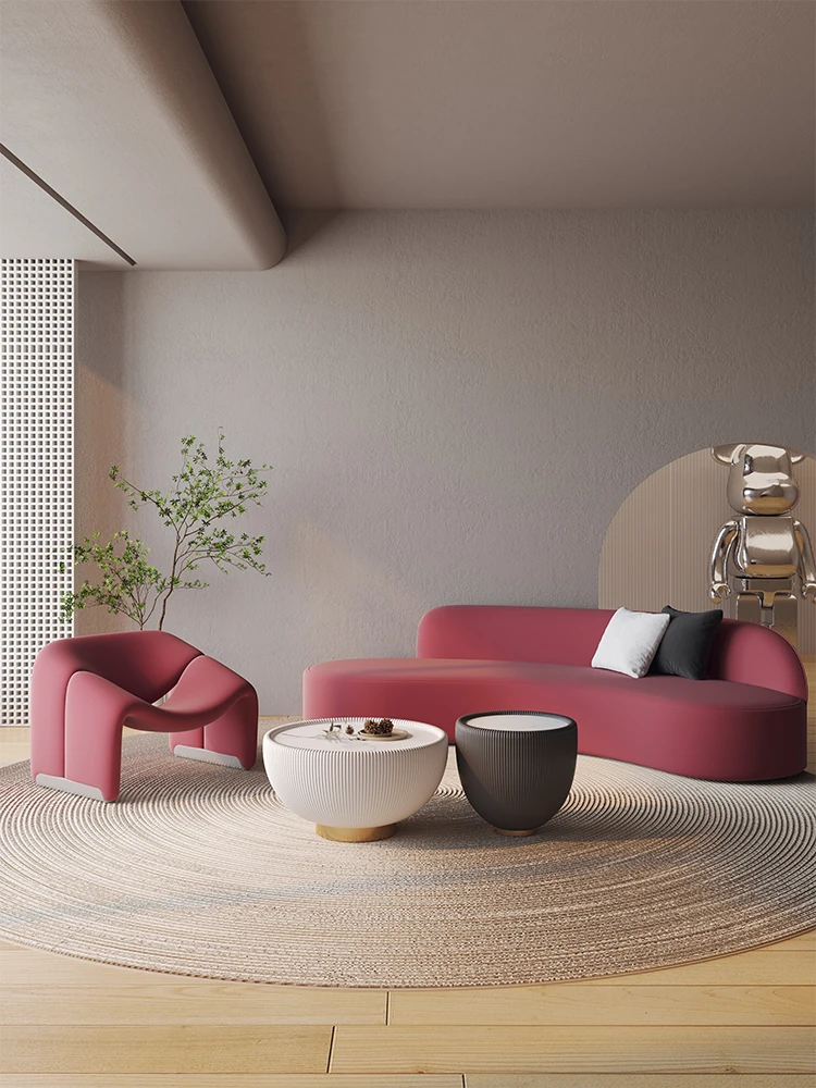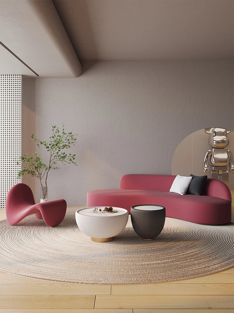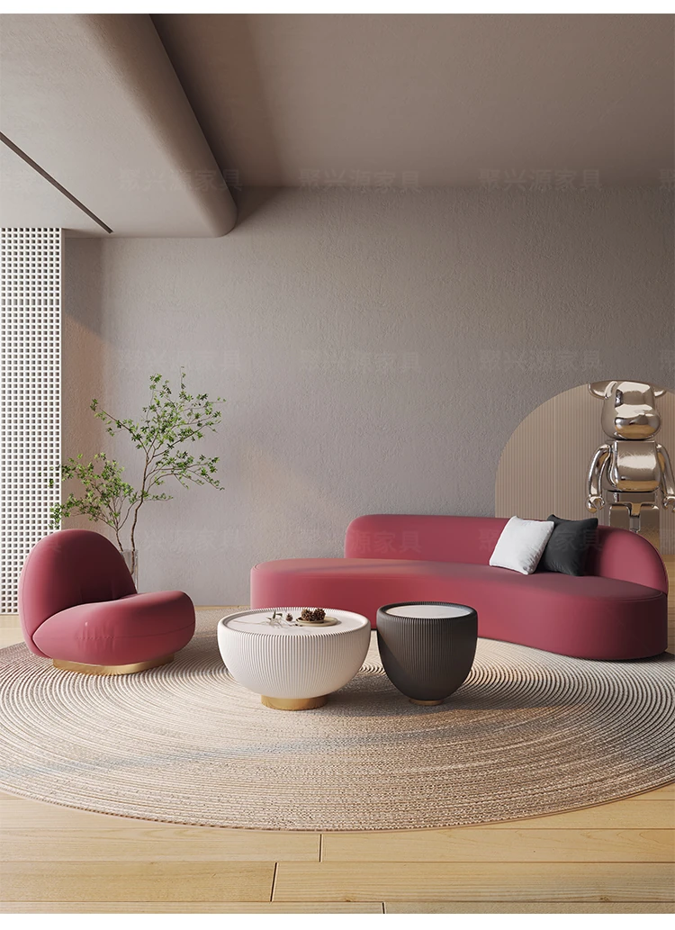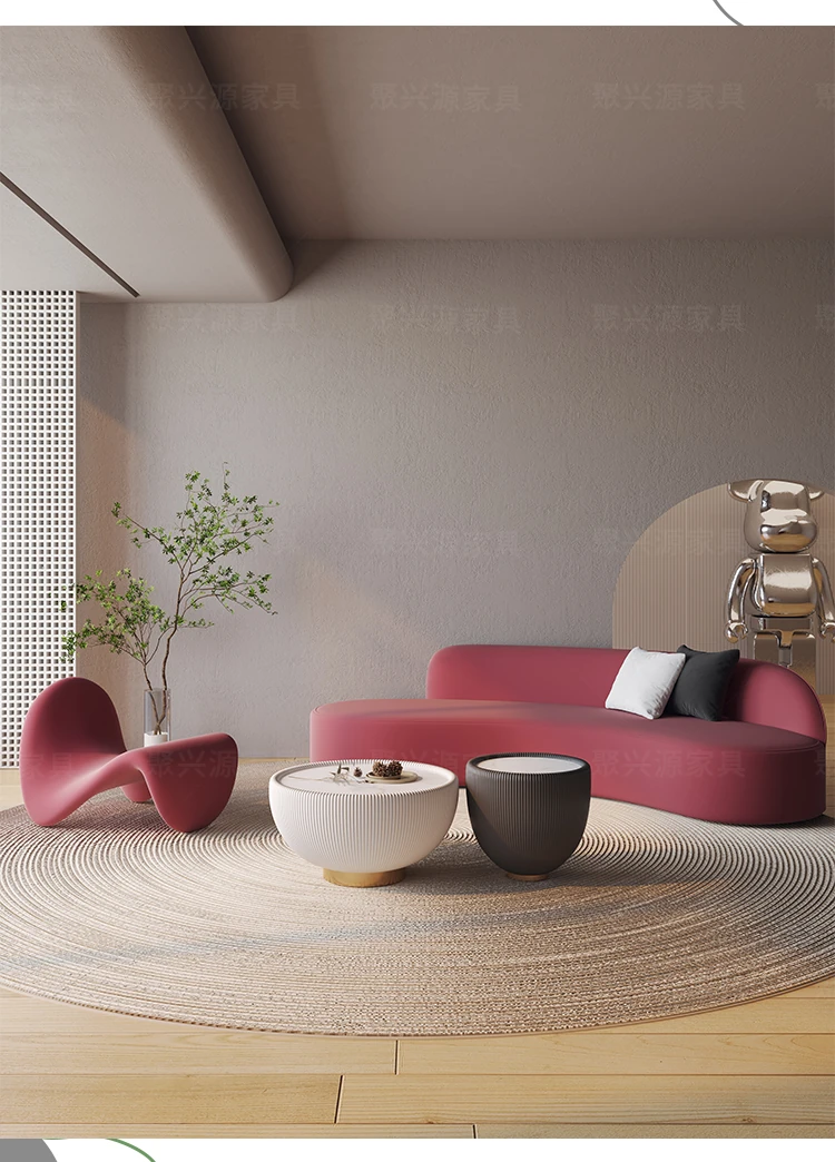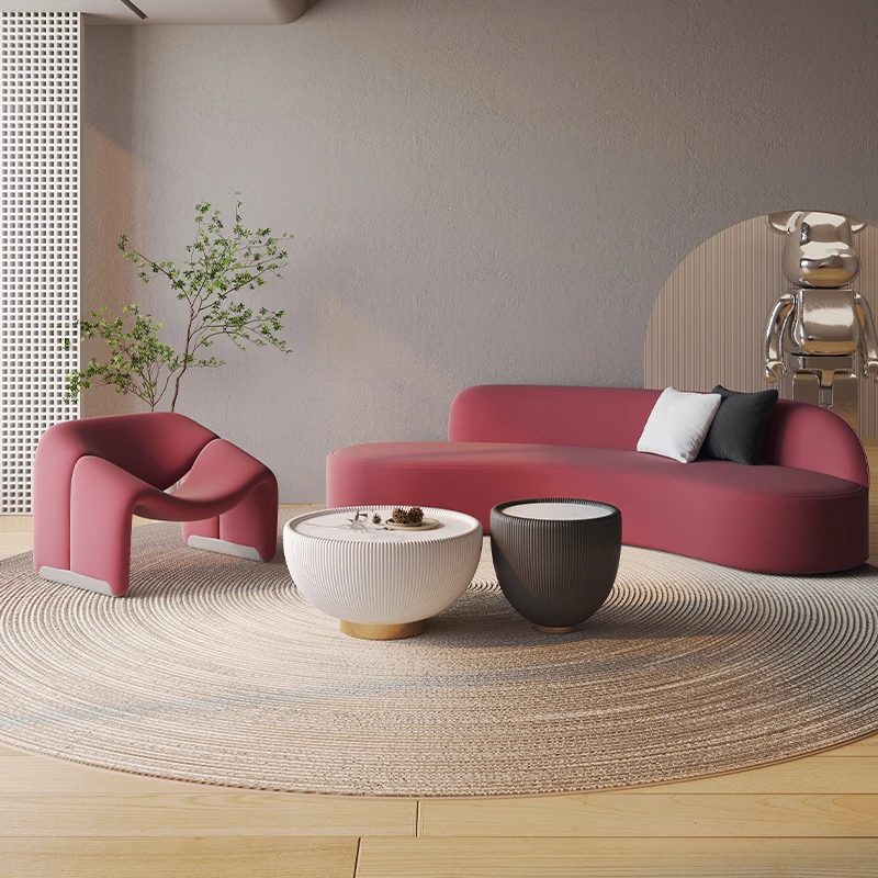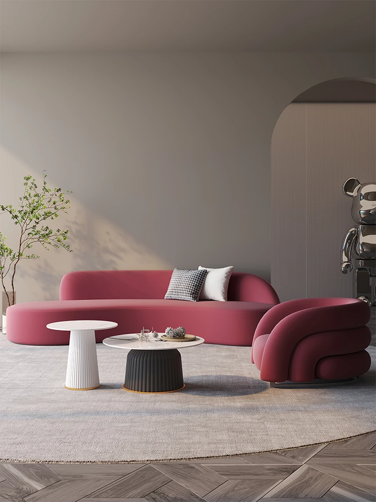 アーチ型ソファー 小型スペースに最適なバーガンディ色 おしゃれな服装店や美容院、オフィス、ホテルロビーの休憩エリアにぴったり!快適さとスタイルを兼ね備えたデザインで、訪れる人々を魅了します。