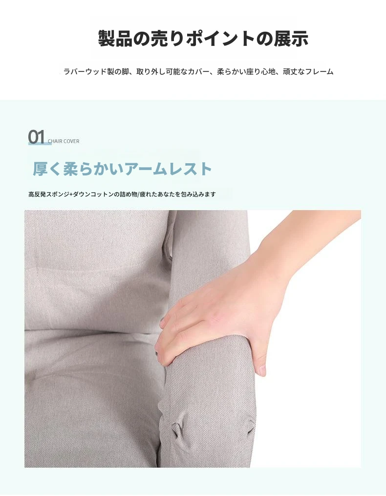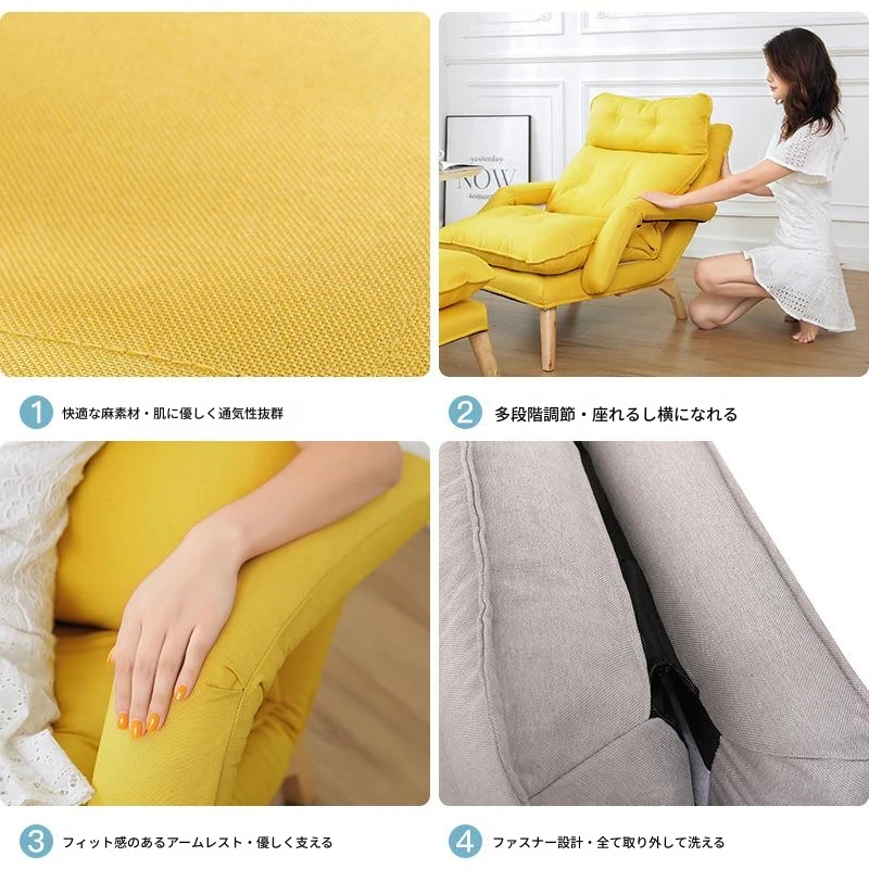 F3 アームチェア - リラックスできるおしゃれなソファ!寝室やリビングにぴったりの折りたたみ式布製チェア。お年寄りや授乳中のママにも優しいデザインで、快適なひとときを提供します。