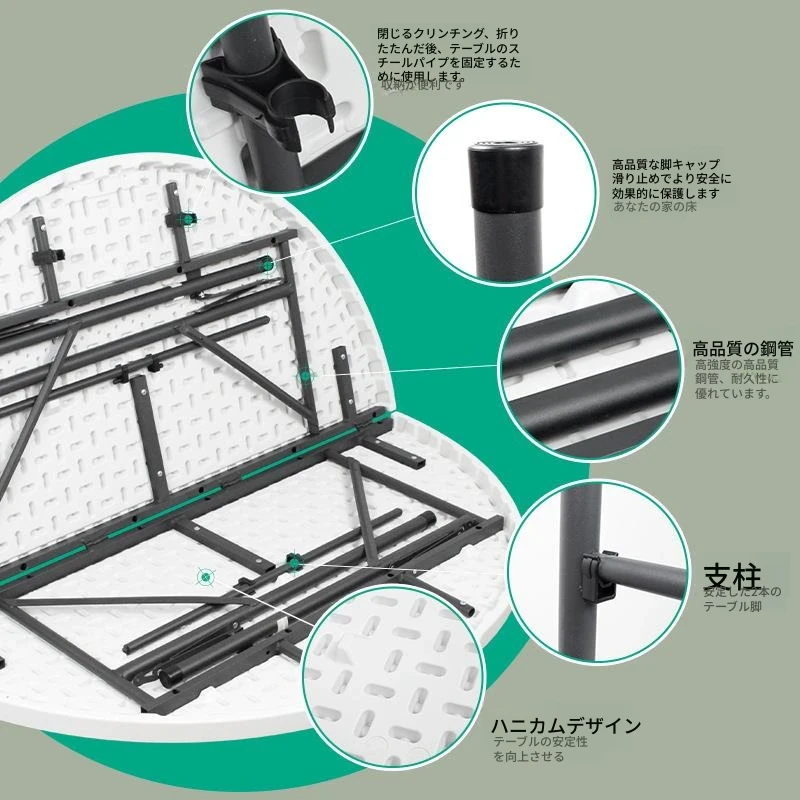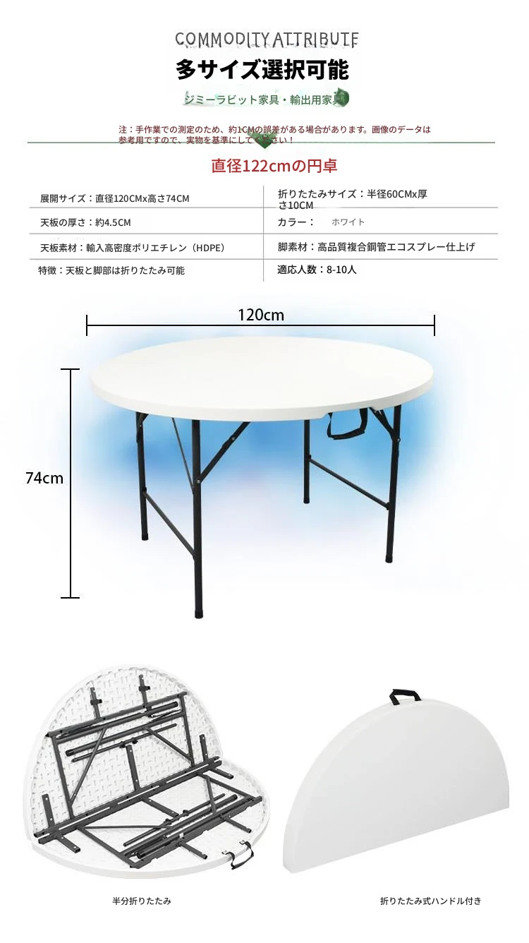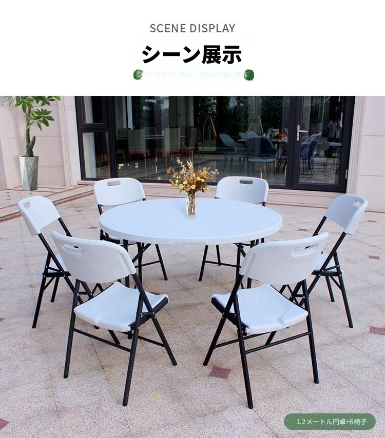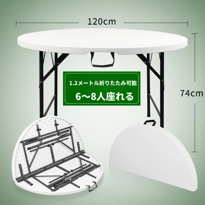 1.2メートル折りたたみ円卓ホワイト6-8人用厚手強化