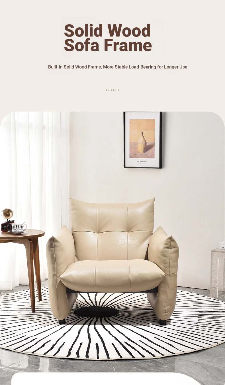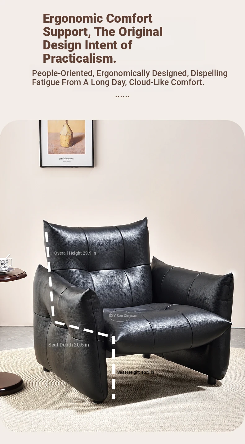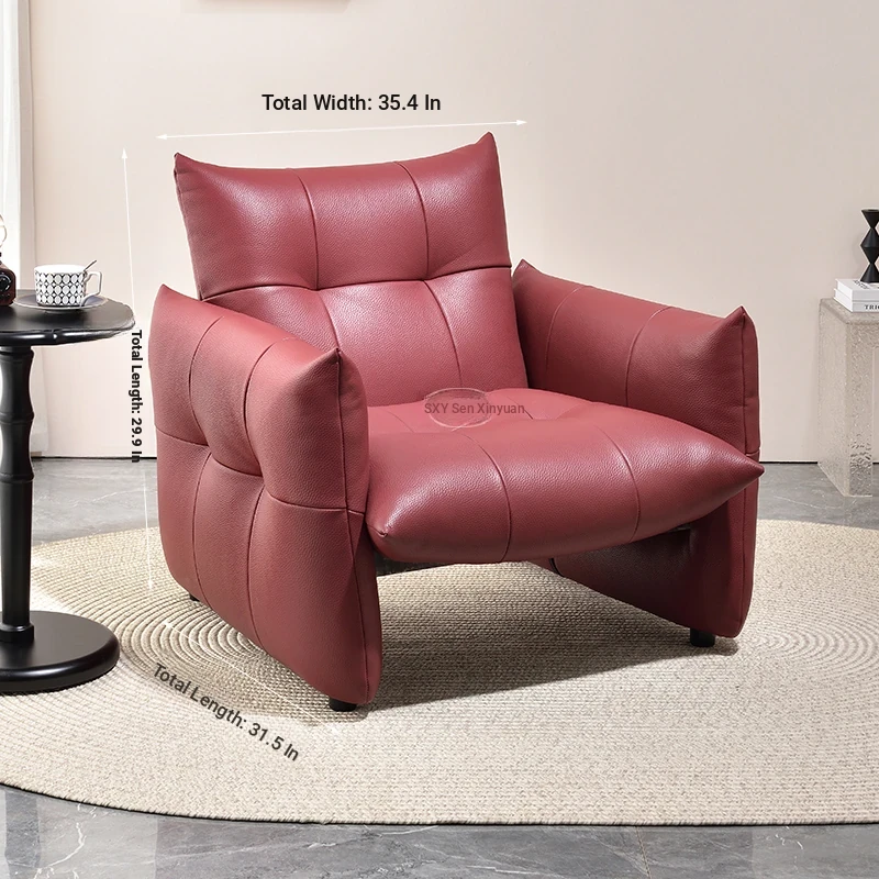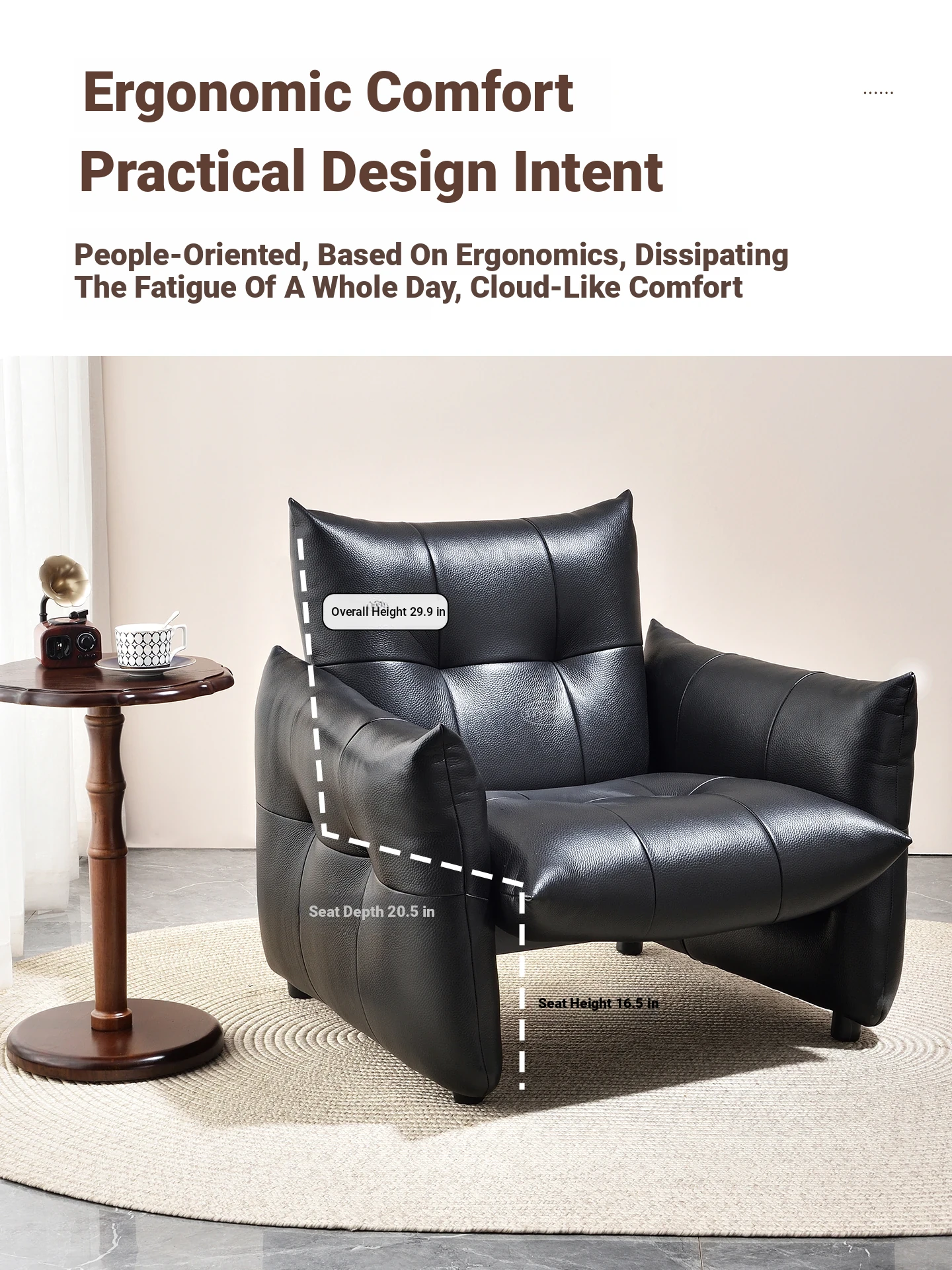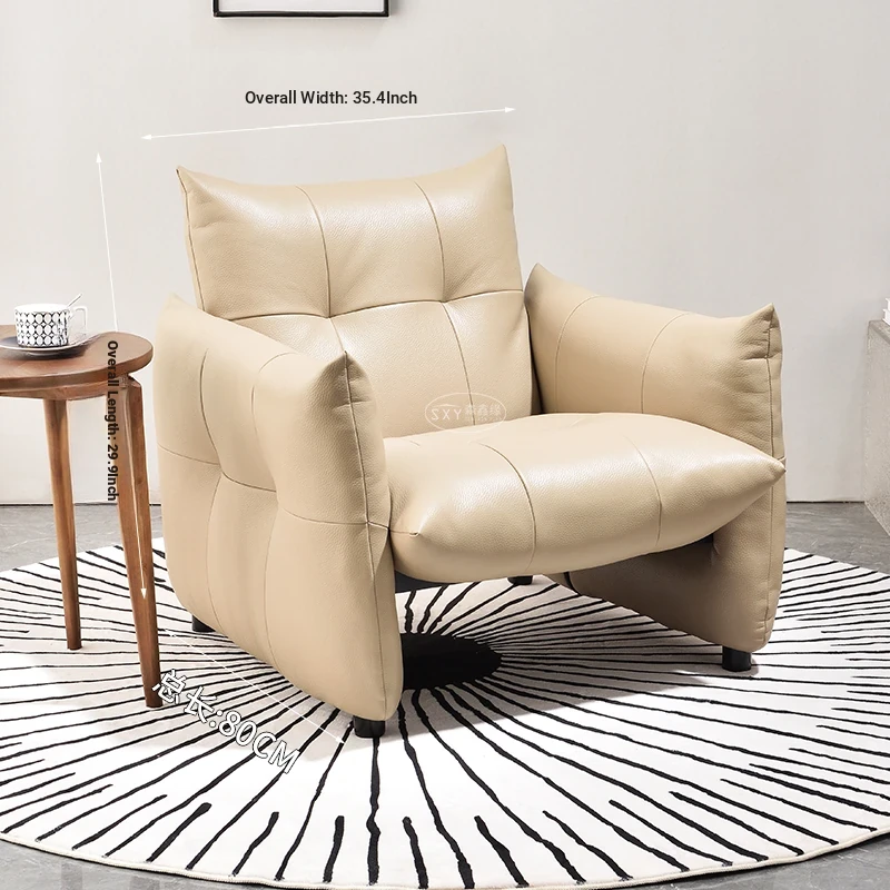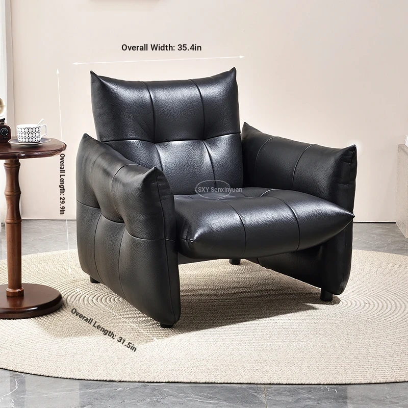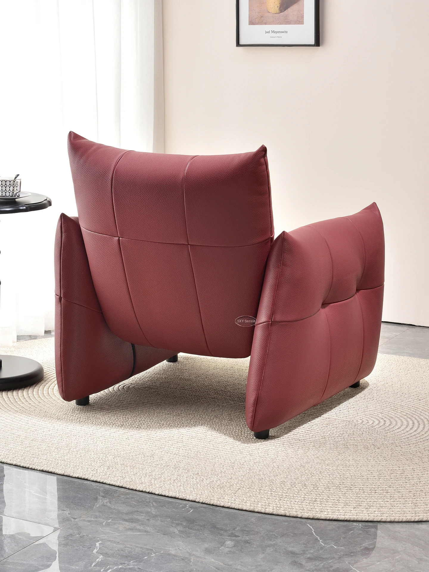 Italian Bauhaus Single Sofa Chair in Cowhide - Natasha Full Leather Designer Armchair for Vintage-Style Living Room - Elegant and Comfortable Lounge Chair