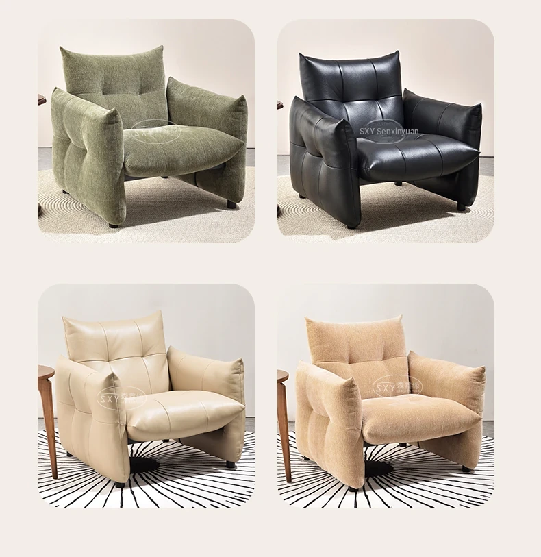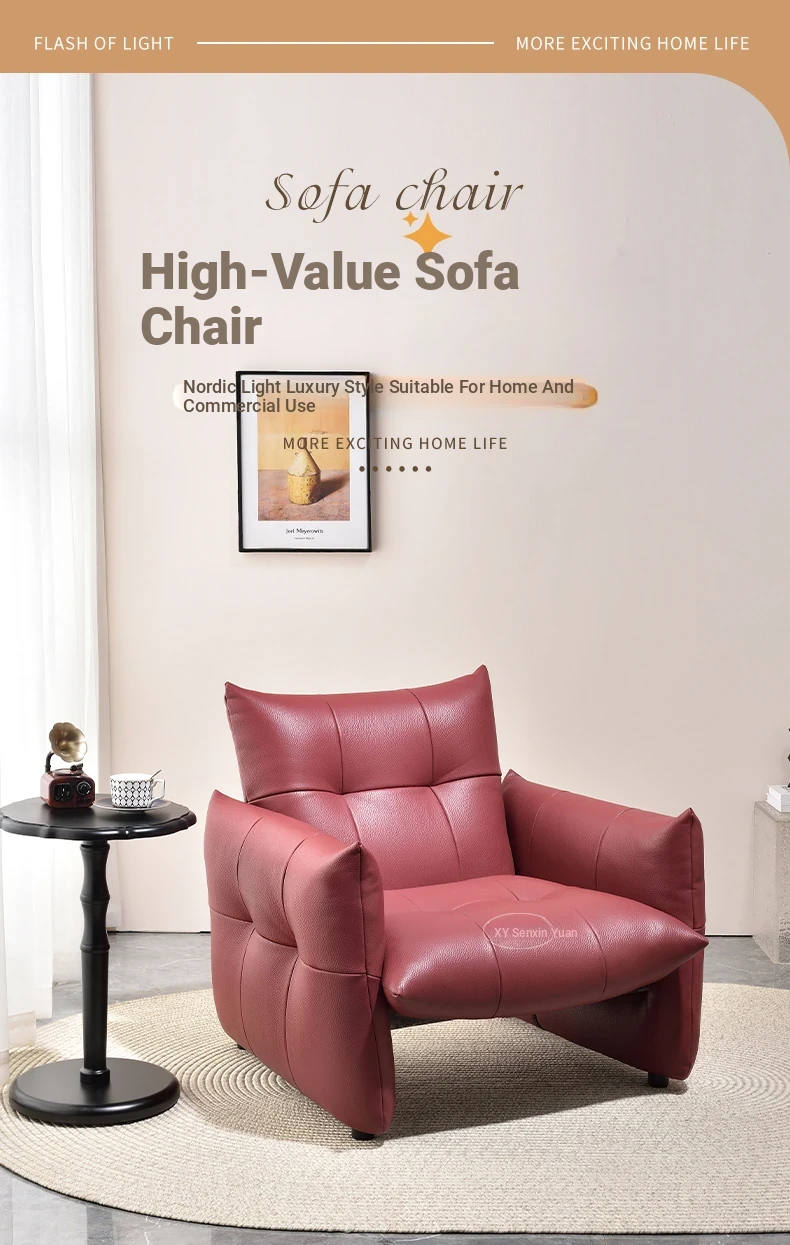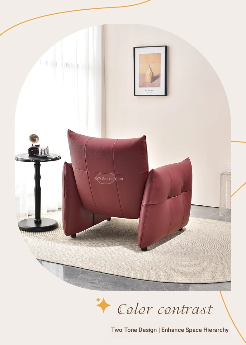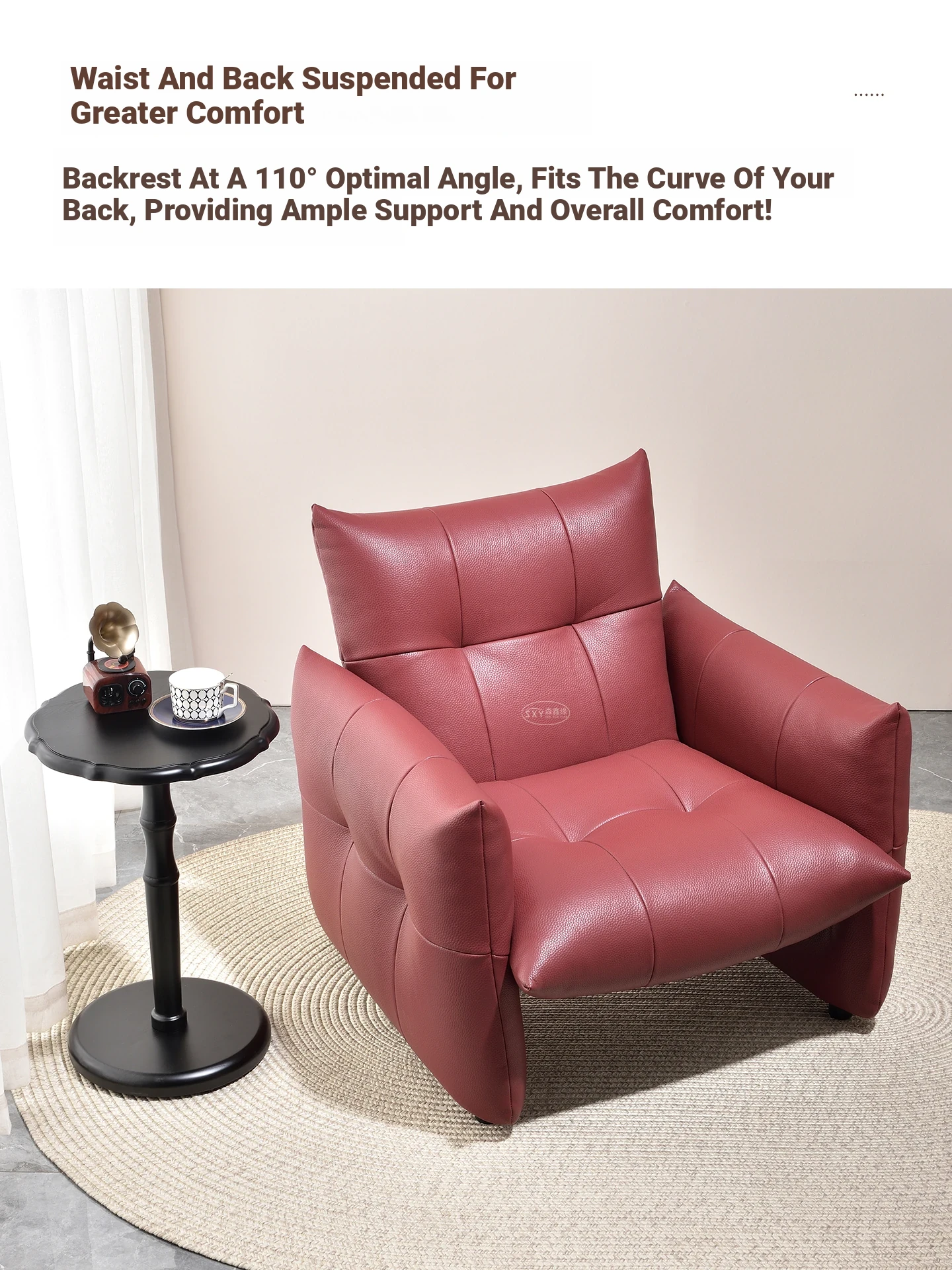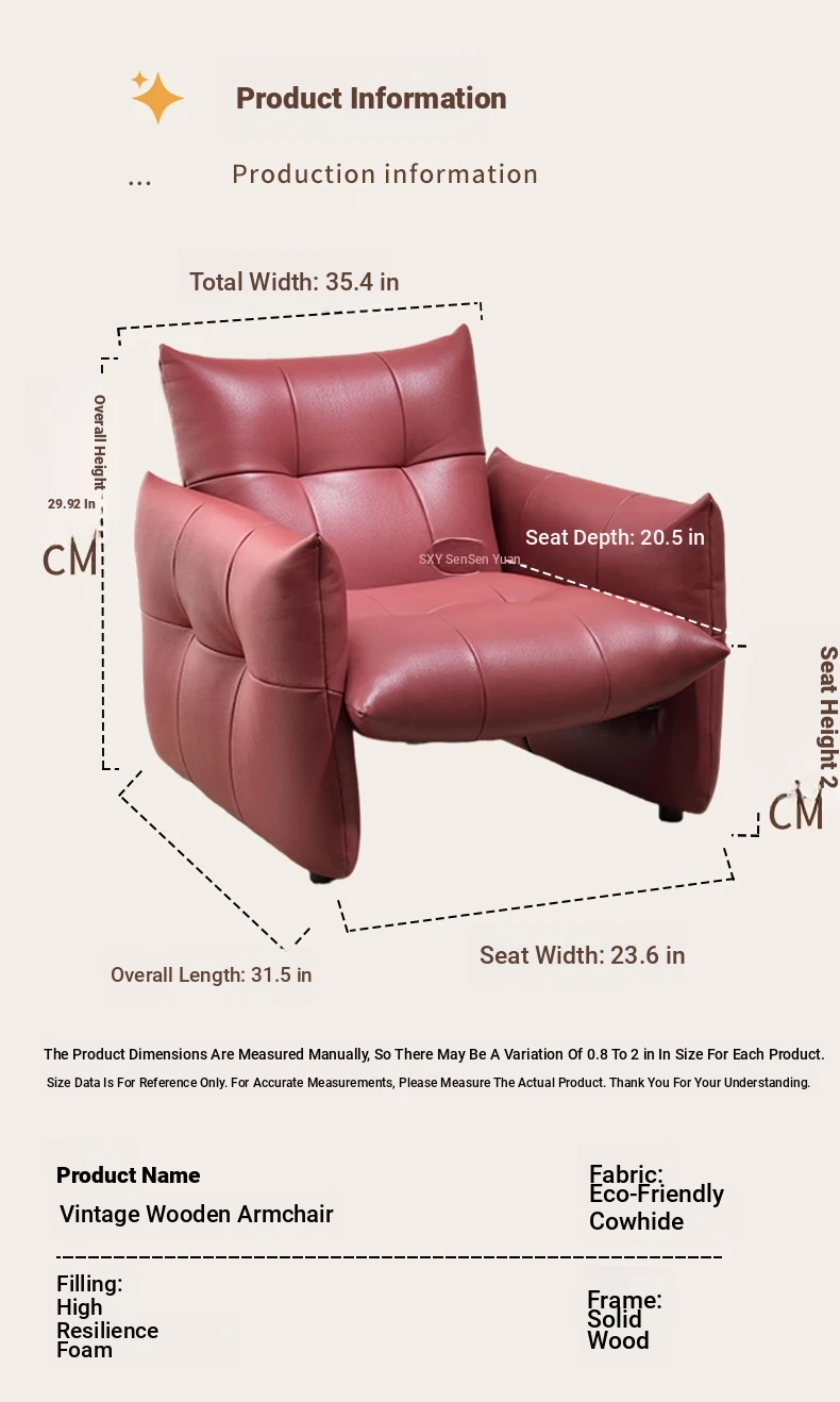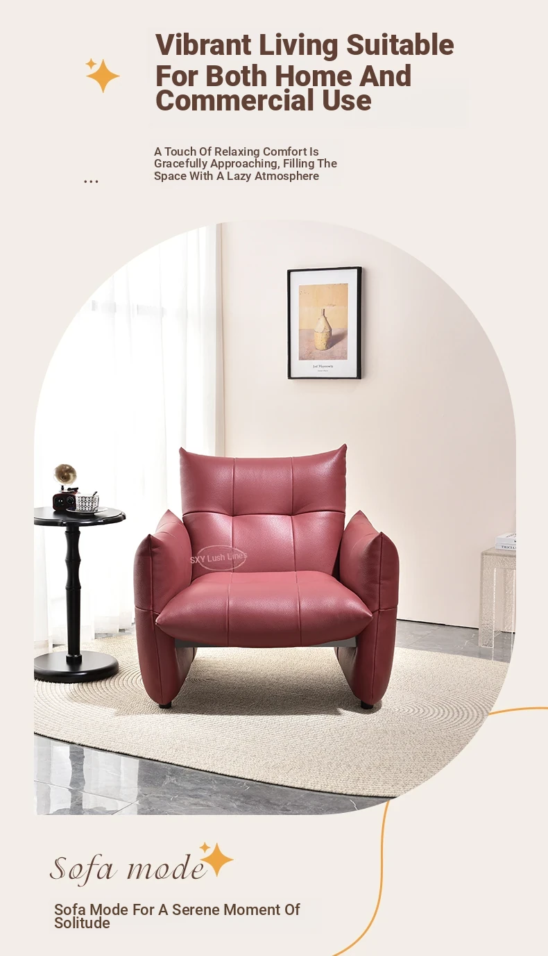 Italian Bauhaus Single Sofa Chair in Cowhide - Natasha Full Leather Designer Armchair for Vintage-Style Living Room - Elegant and Comfortable Lounge Chair