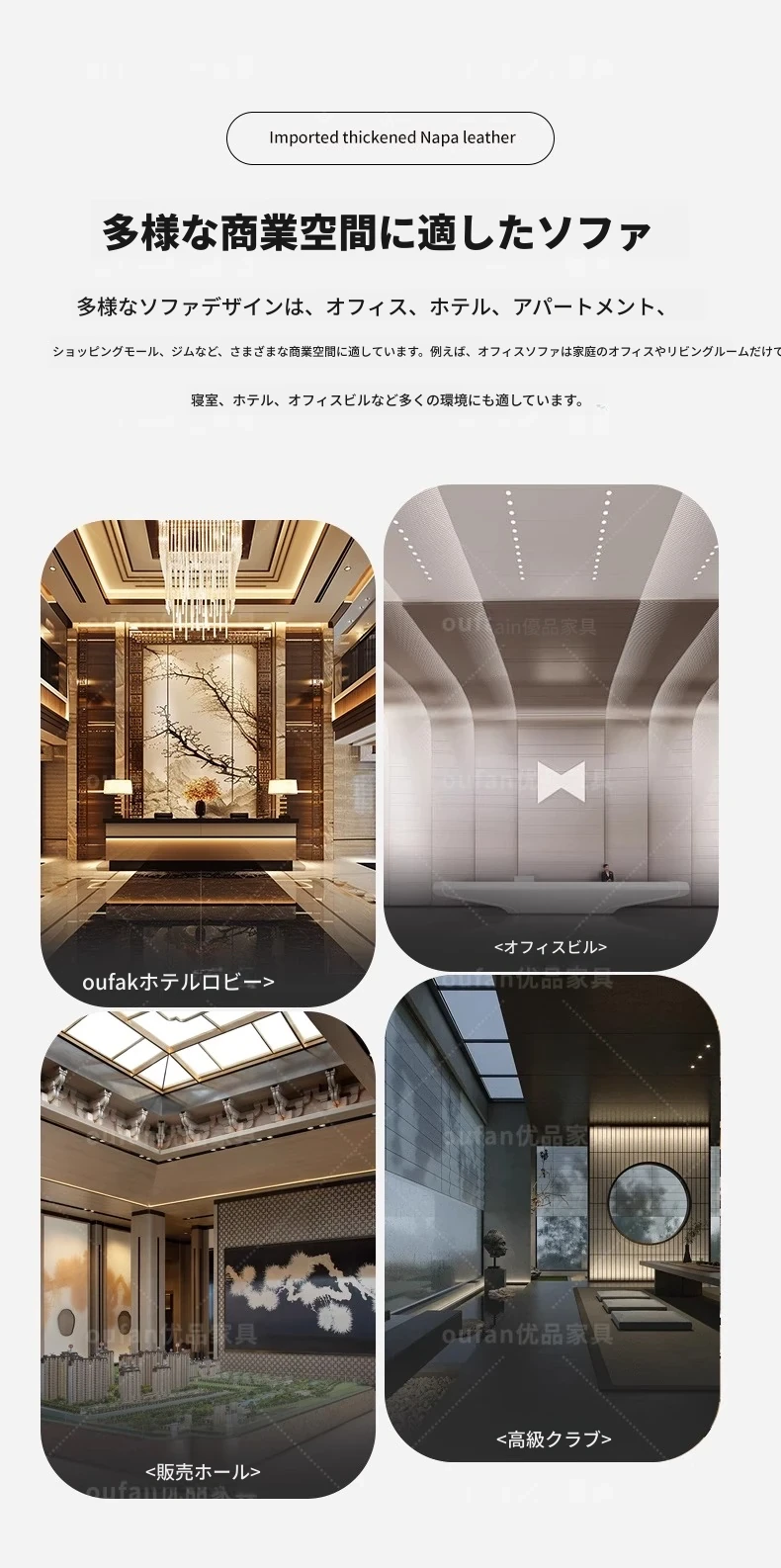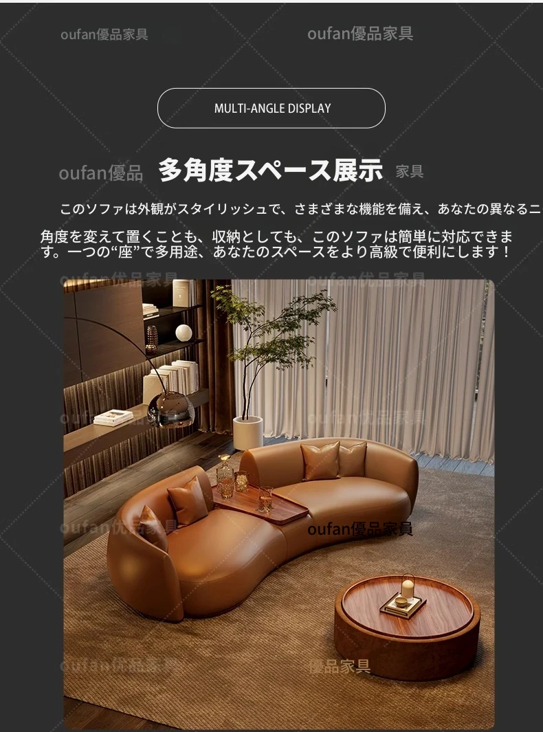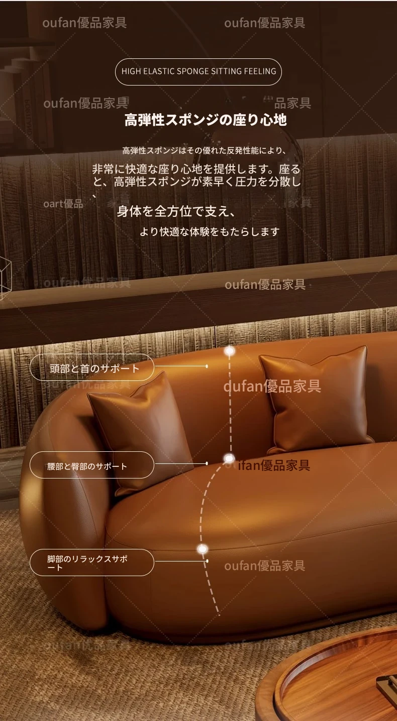 イタリアンラグジュアリー 月の弧を描く本革ソファ 高級感あふれる美容院・販売所・ホテルロビーの休憩エリアに最適!上質なデザインでお客様をおもてなし。
