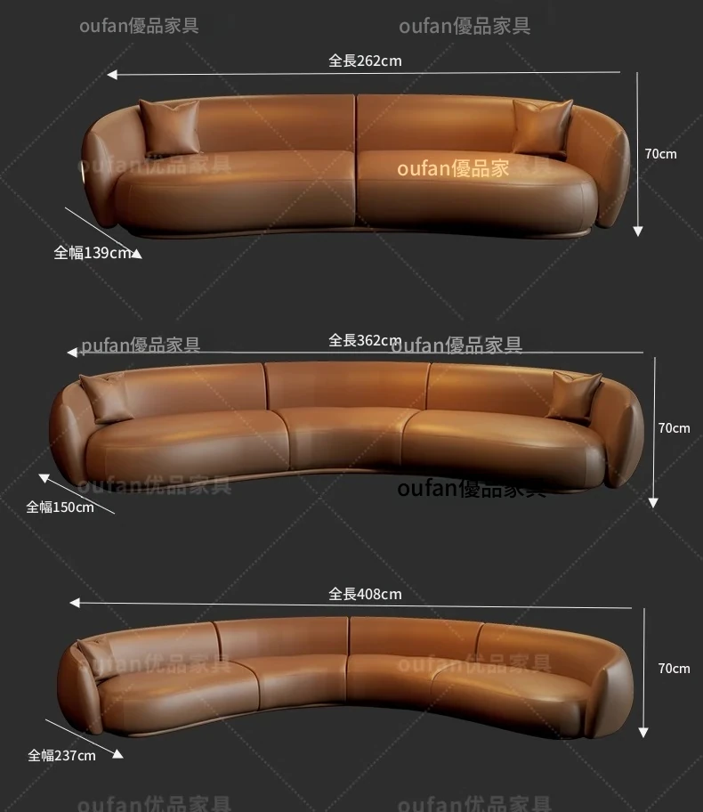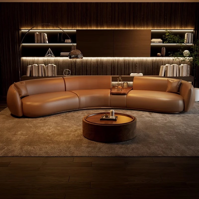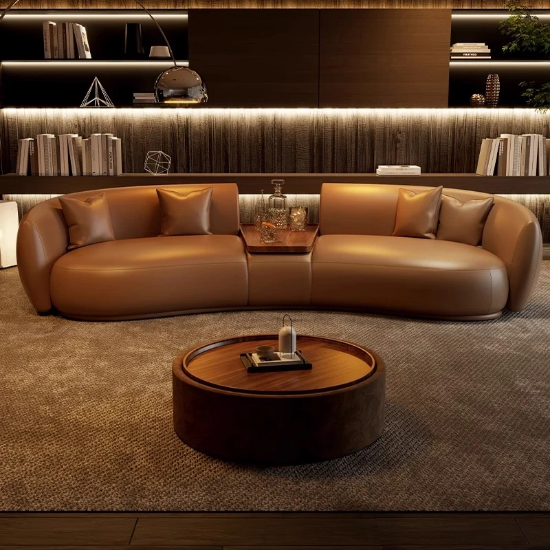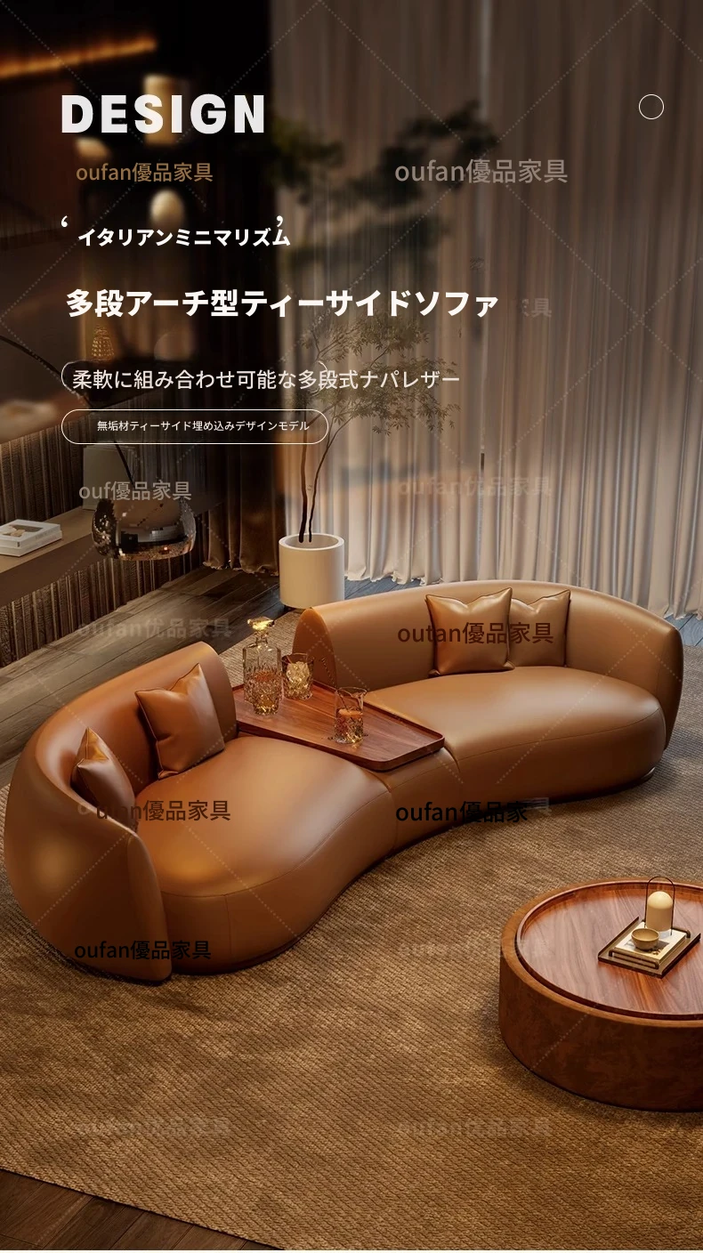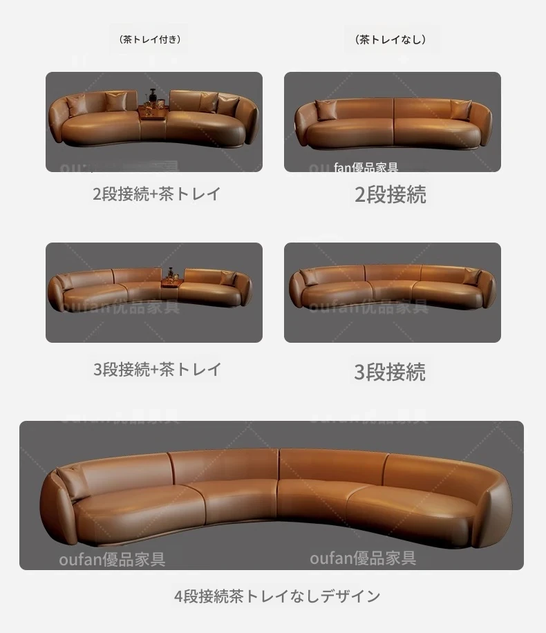 イタリアンラグジュアリー 月の弧を描く本革ソファ 高級感あふれる美容院・販売所・ホテルロビーの休憩エリアに最適!上質なデザインでお客様をおもてなし。