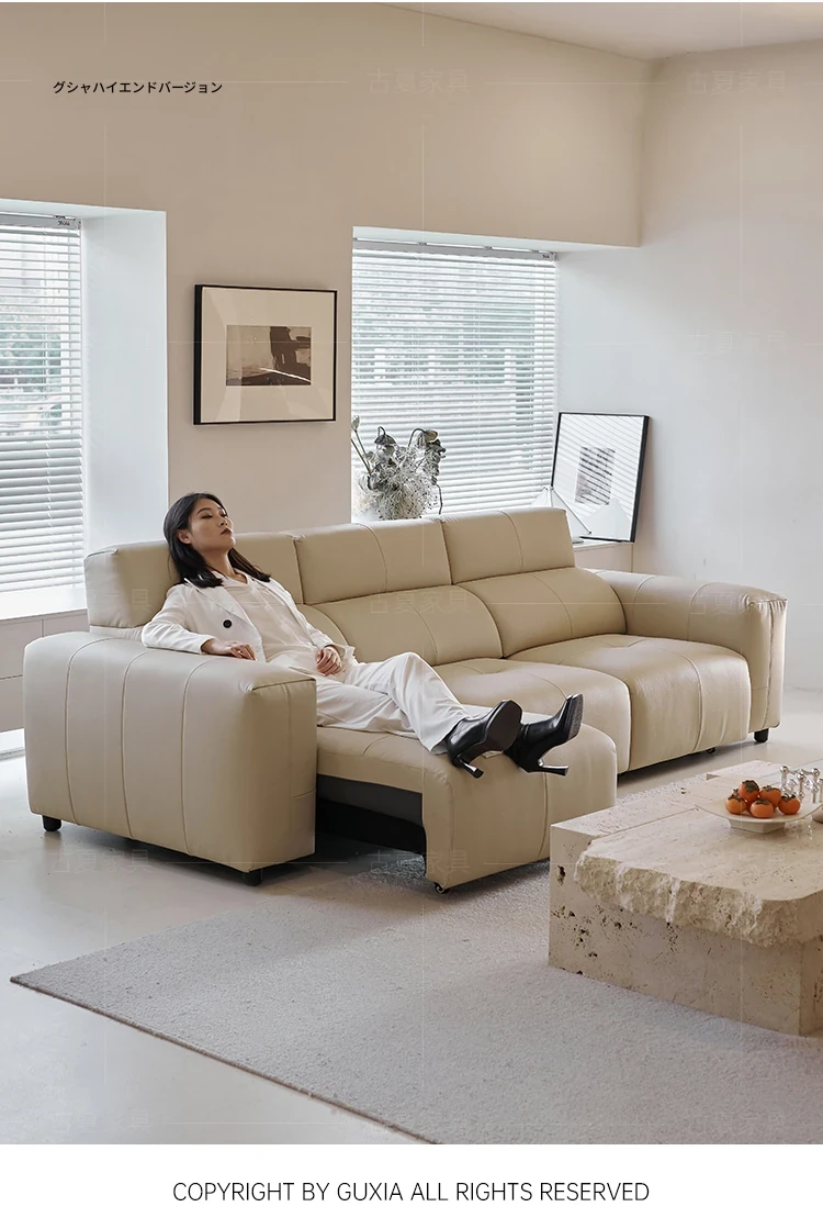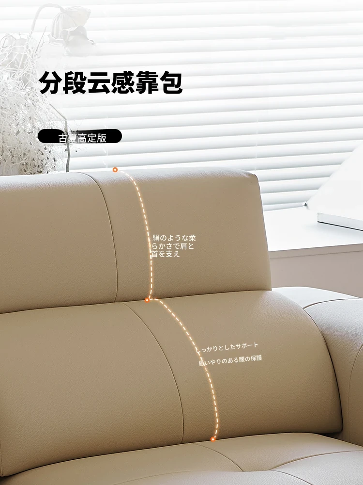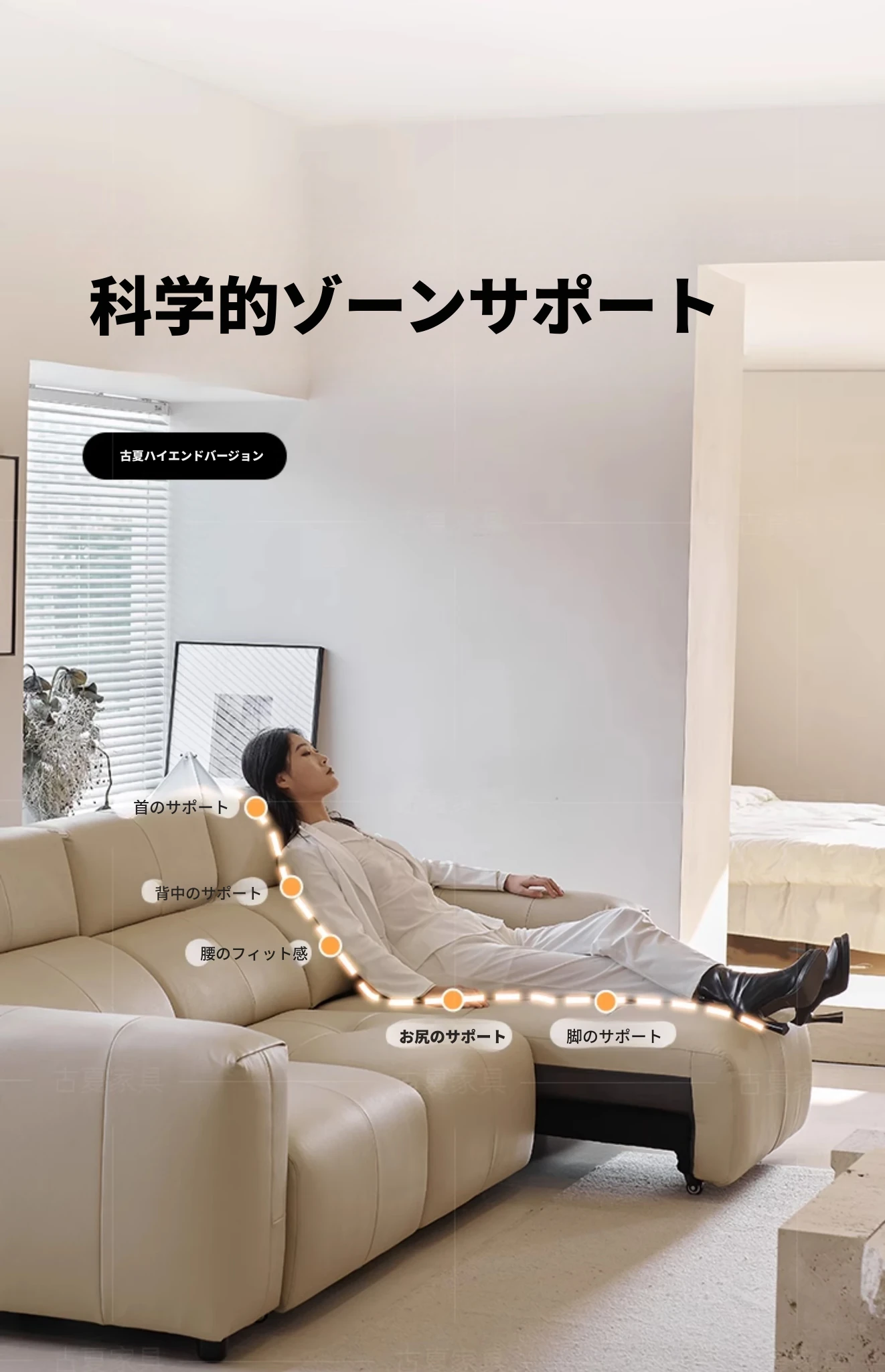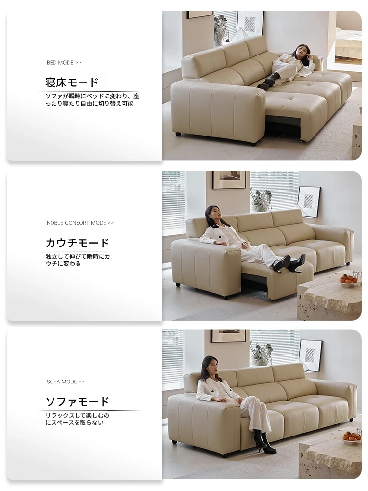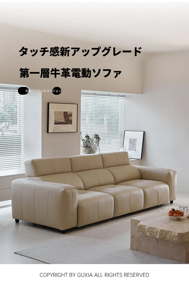 イタリアンミニマルデザインの高級リクライニング電動ソファ - 壁にぴったりフィットする本革製、機能的でスタイリッシュなソファベッド!快適さと美しさを兼ね備えたリビングルームの必需品。