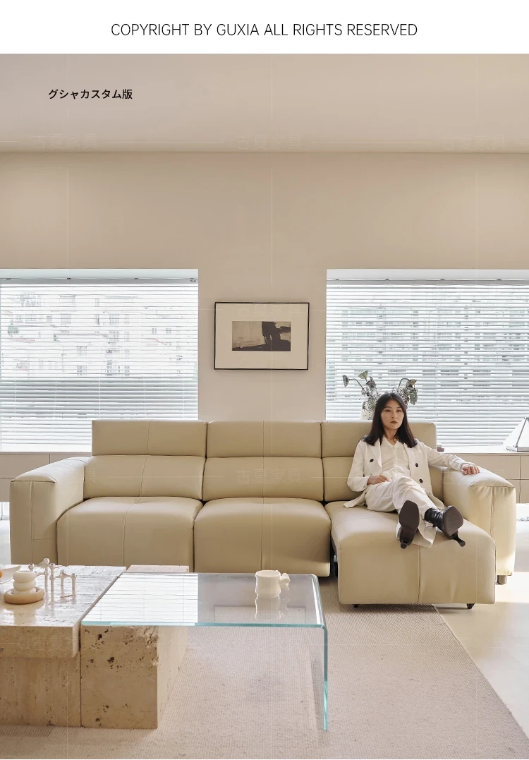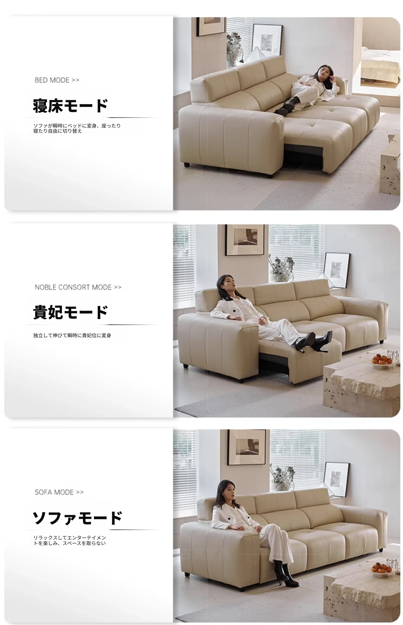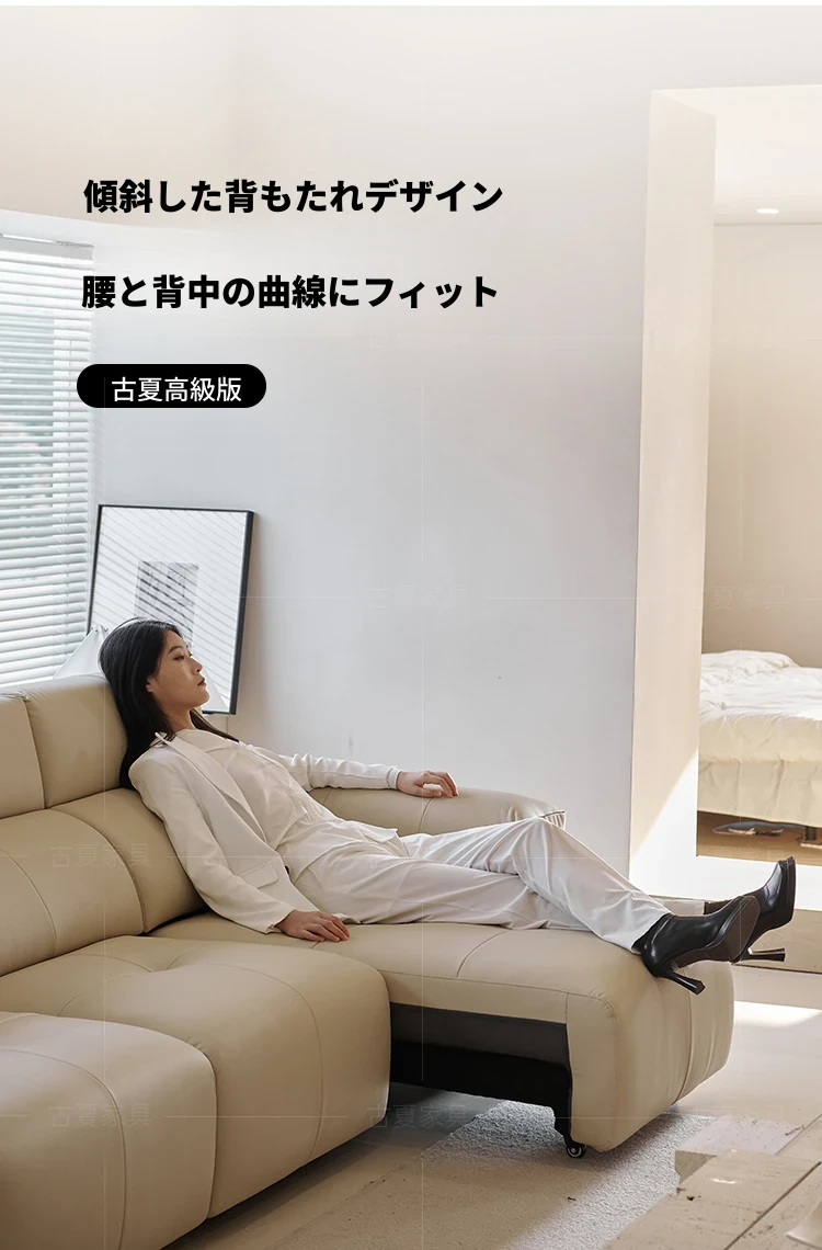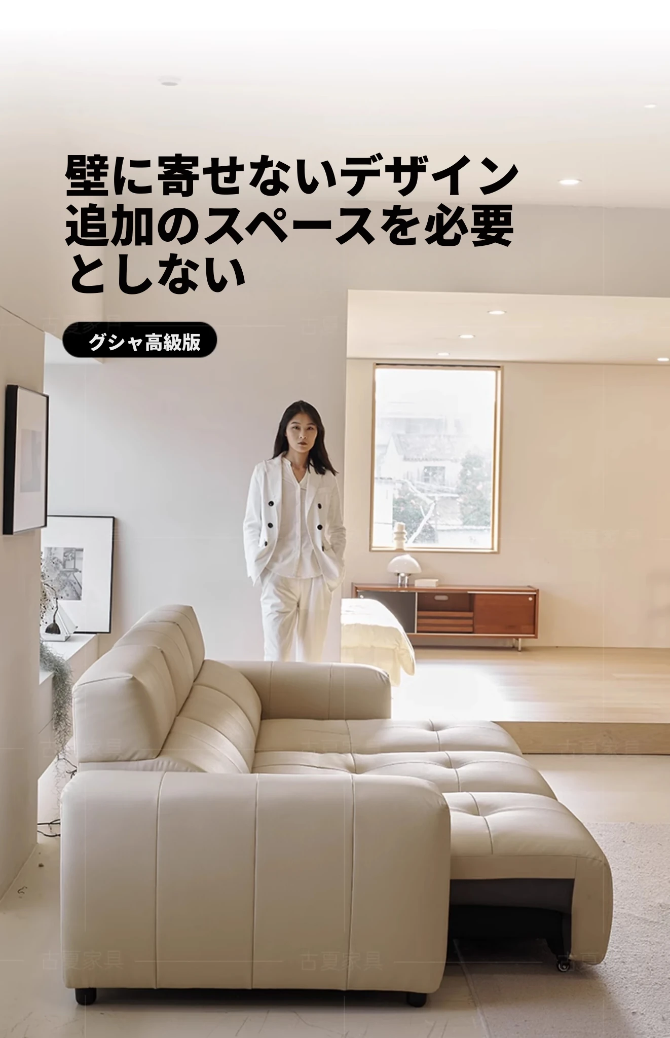 イタリアンミニマルデザインの高級リクライニング電動ソファ - 壁にぴったりフィットする本革製、機能的でスタイリッシュなソファベッド!快適さと美しさを兼ね備えたリビングルームの必需品。