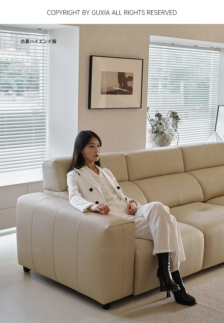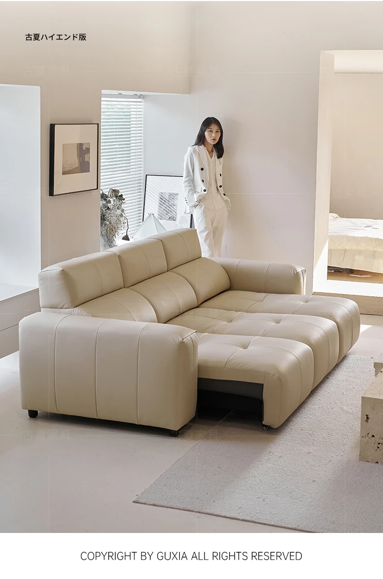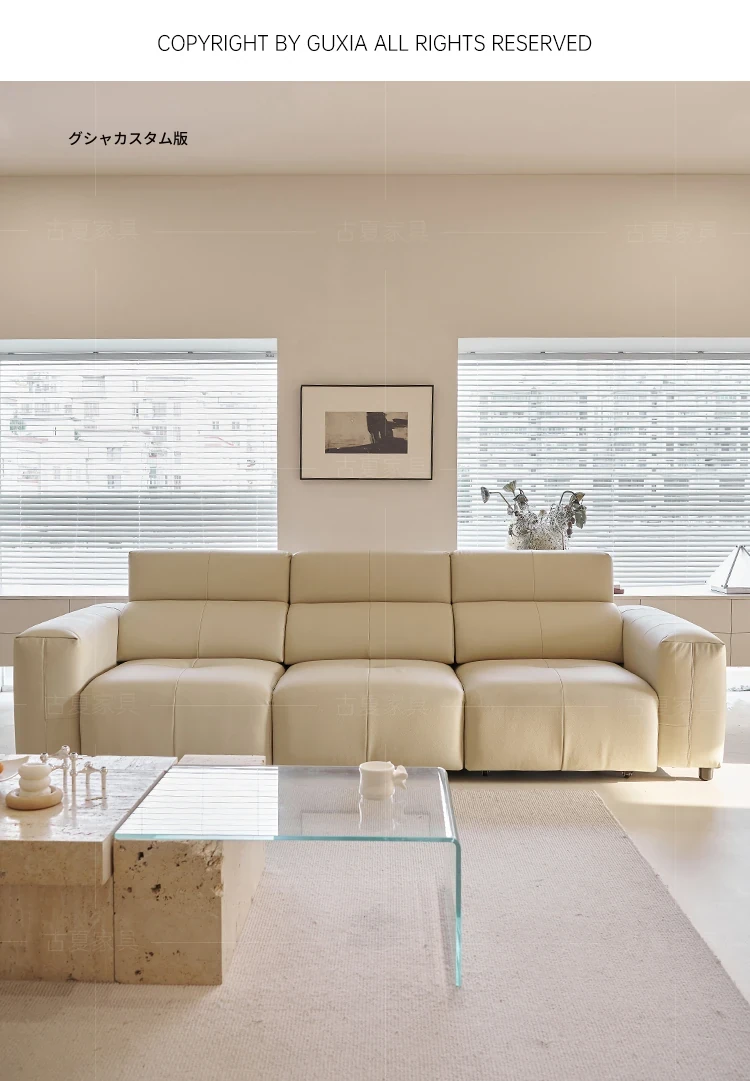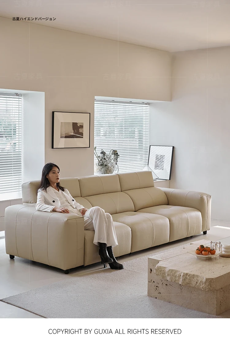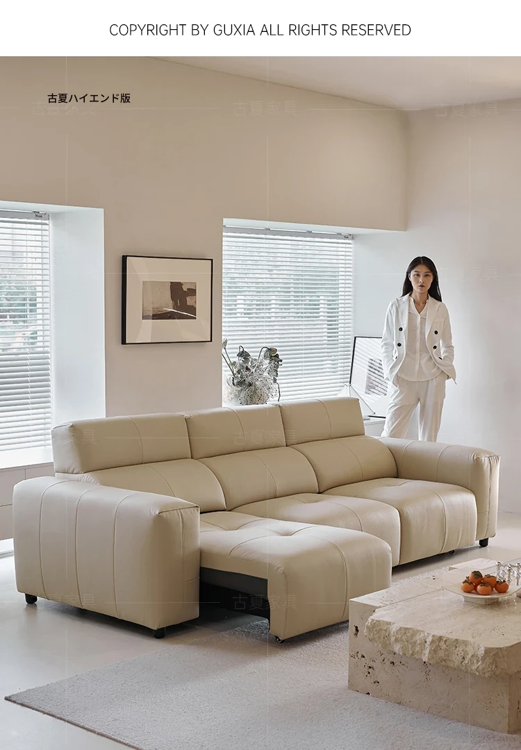 イタリアンミニマルデザインの高級リクライニング電動ソファ - 壁にぴったりフィットする本革製、機能的でスタイリッシュなソファベッド!快適さと美しさを兼ね備えたリビングルームの必需品。