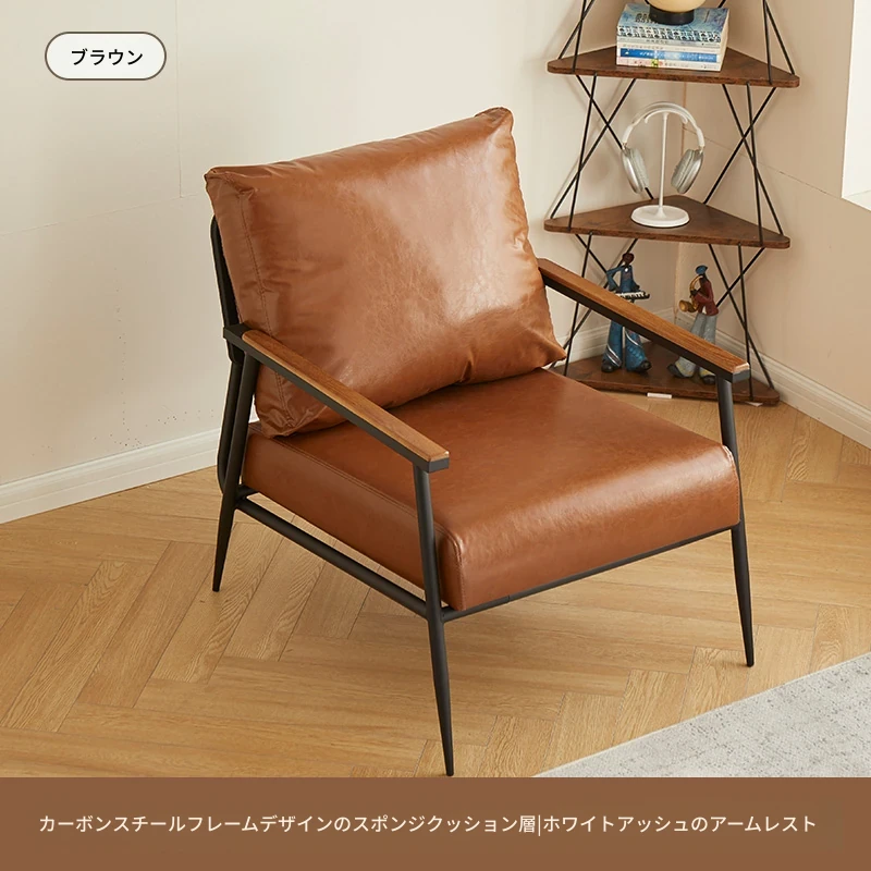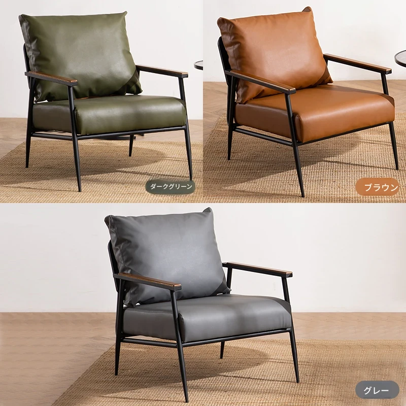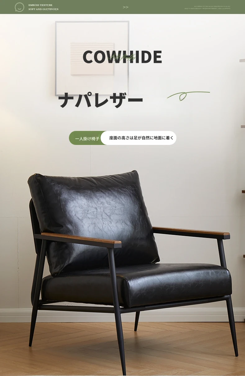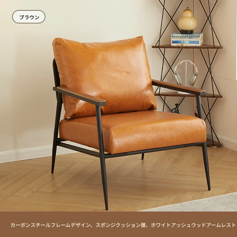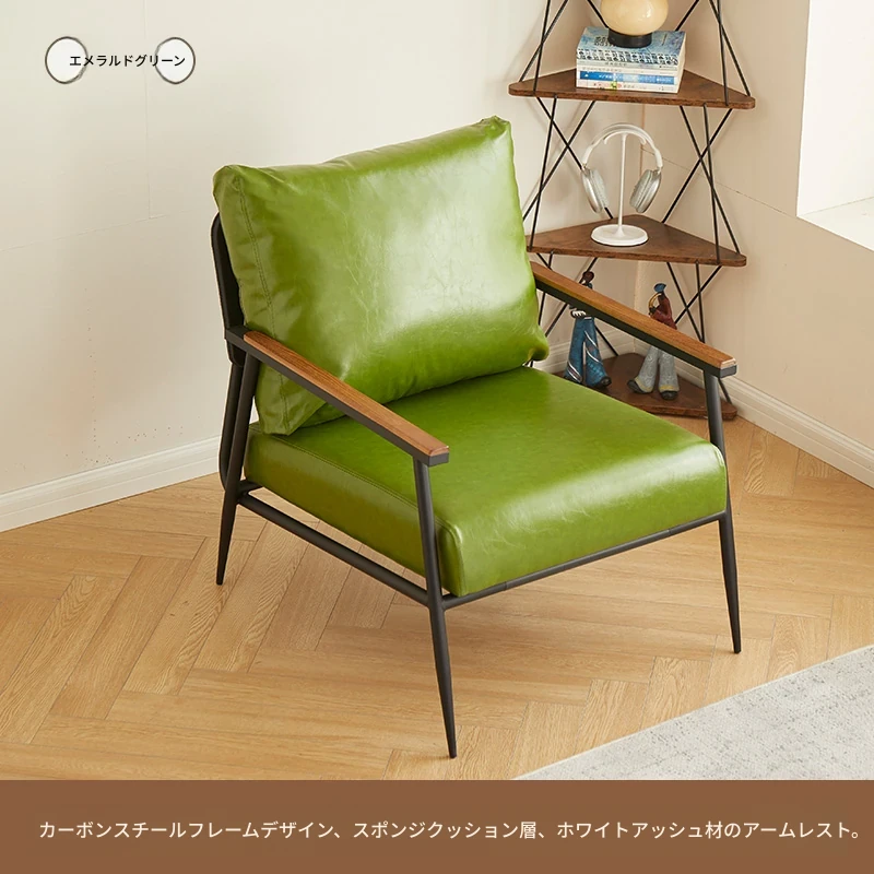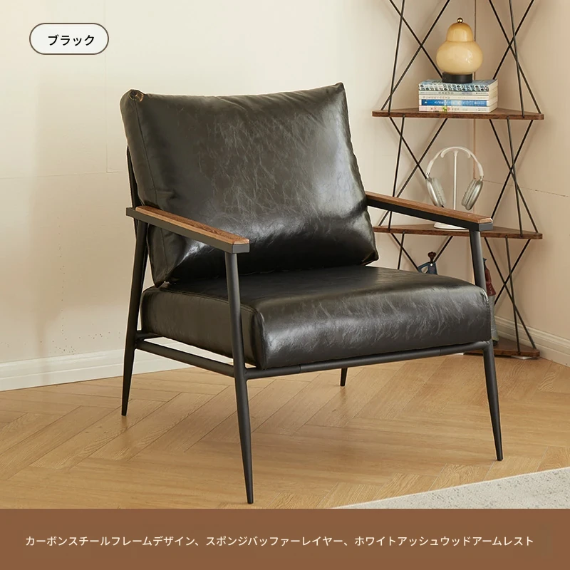 イタリアンスタイルの一人掛けソファ - アイアンフレームのラウンジチェア。バルコニーやリビング、カフェに最適!ヴィンテージ感漂うオイルワックスレザーで、くつろぎのひとときを演出します。