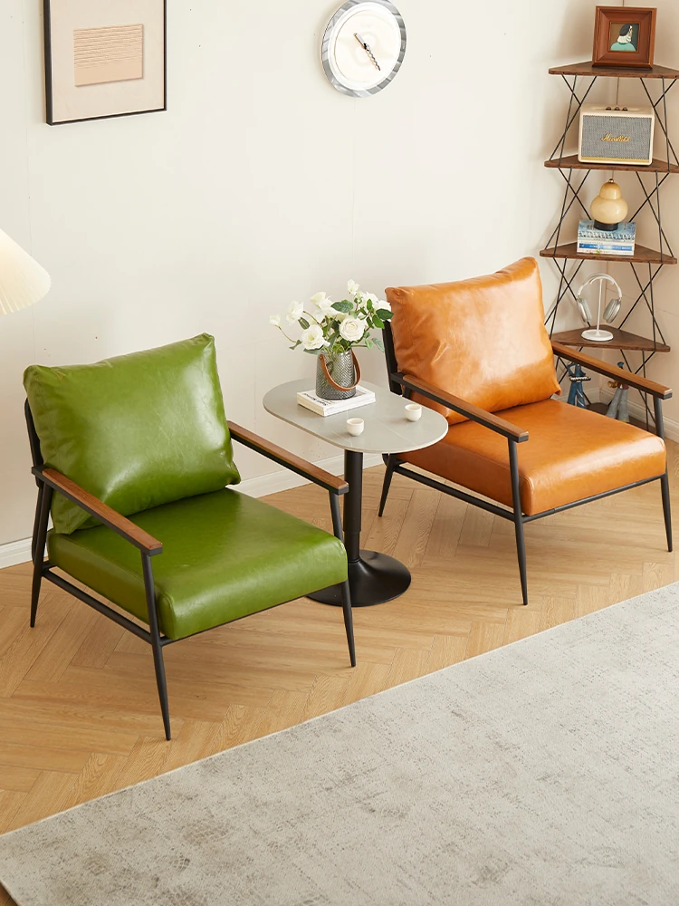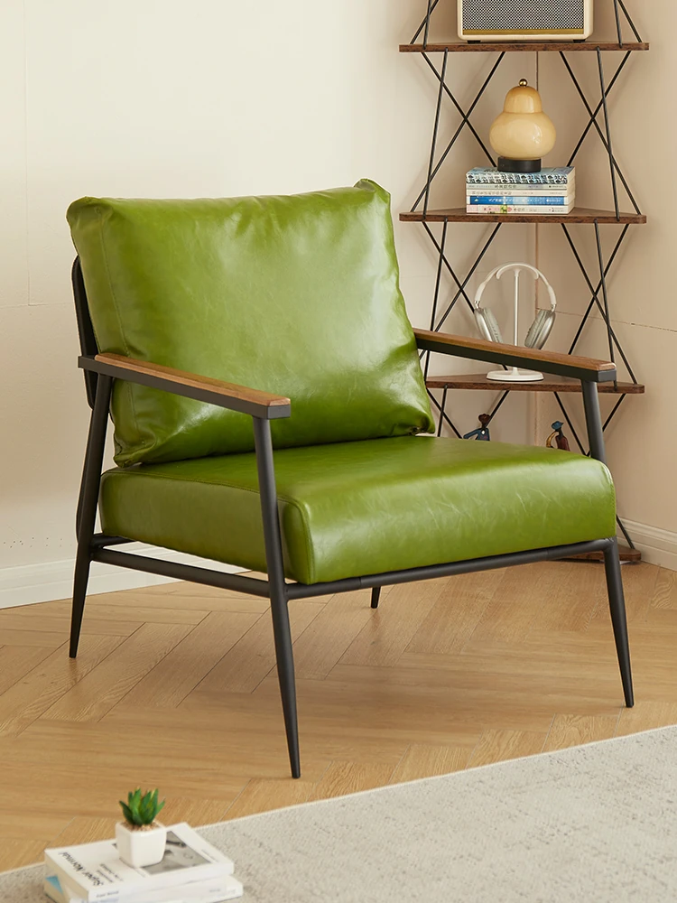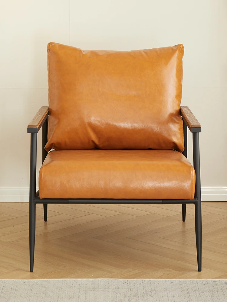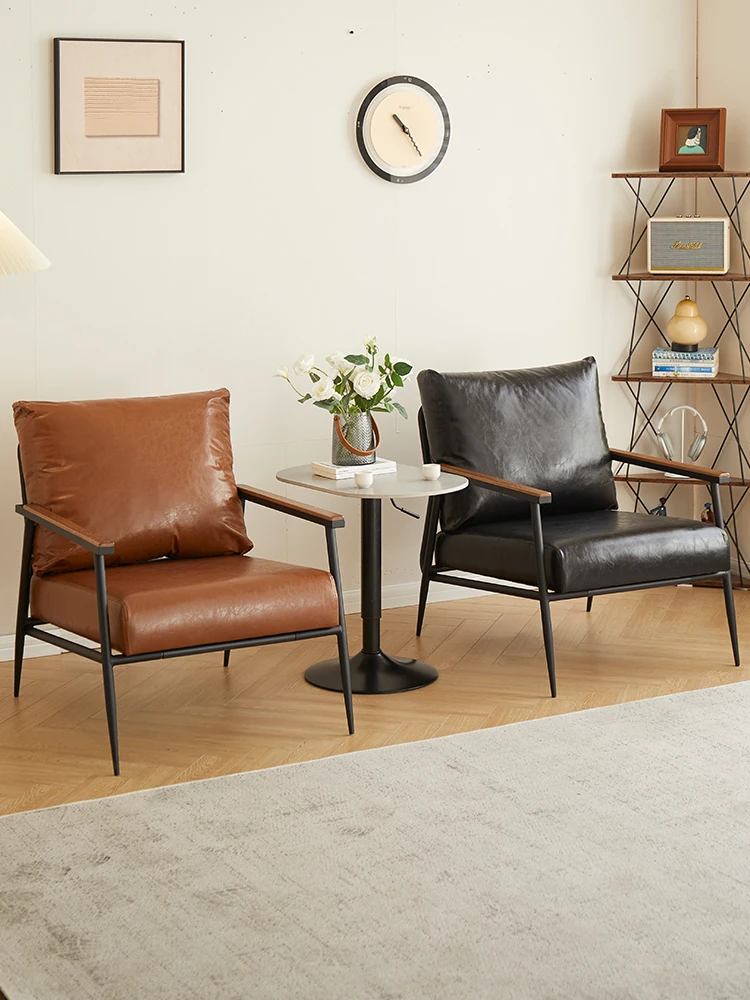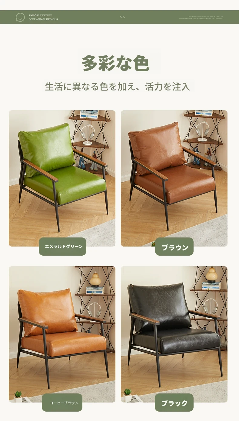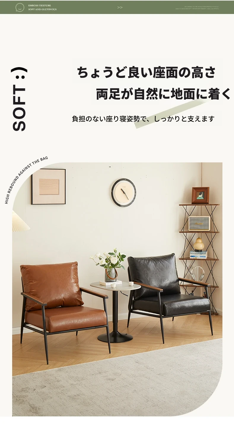 イタリアンスタイルの一人掛けソファ - アイアンフレームのラウンジチェア。バルコニーやリビング、カフェに最適!ヴィンテージ感漂うオイルワックスレザーで、くつろぎのひとときを演出します。