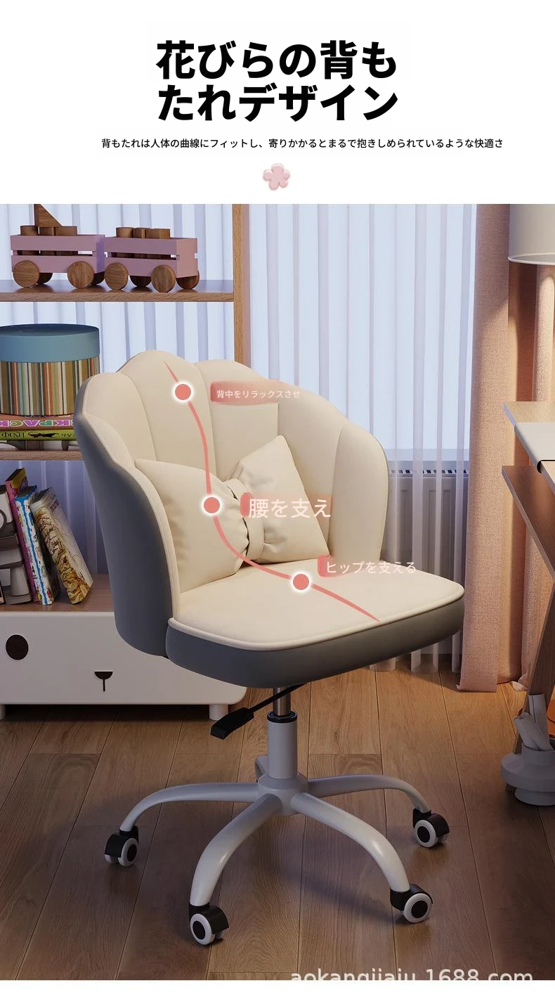 軽やかで快適なデザインのコンピューターチェア - 学生の勉強や執筆、寝室やドレッサーでの使用に最適!長時間座っても疲れにくい、オフィスでも使えるスタイリッシュな座椅子。