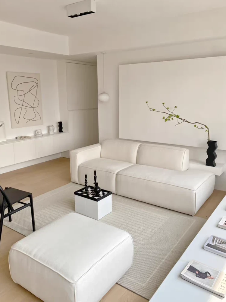 北欧シンプルスタイルのコンパクトなリビングにぴったり!2人掛けのキューブ型フレンチクリーム風アパートソファ。おしゃれで機能的なデザインで、居心地の良い空間を演出します。