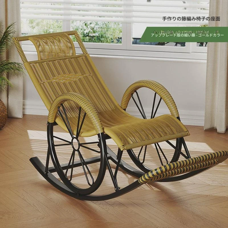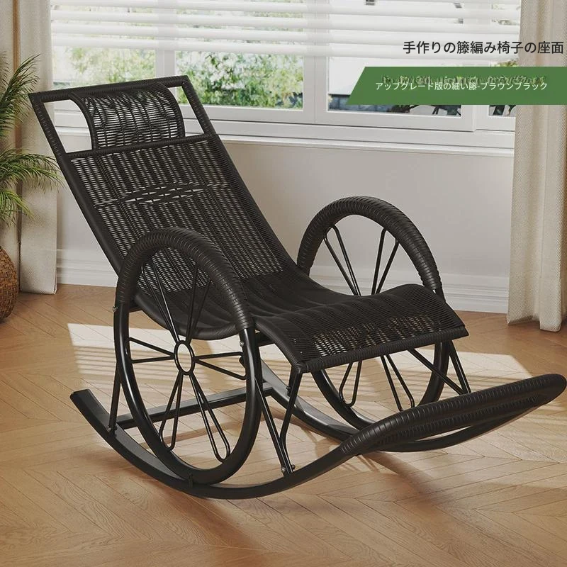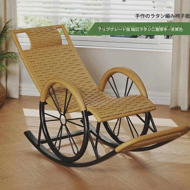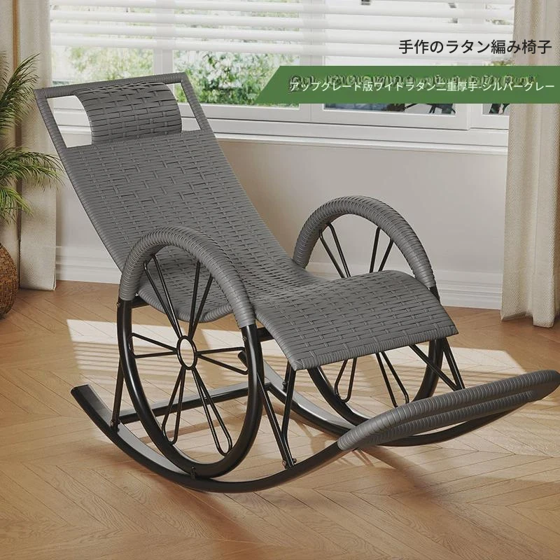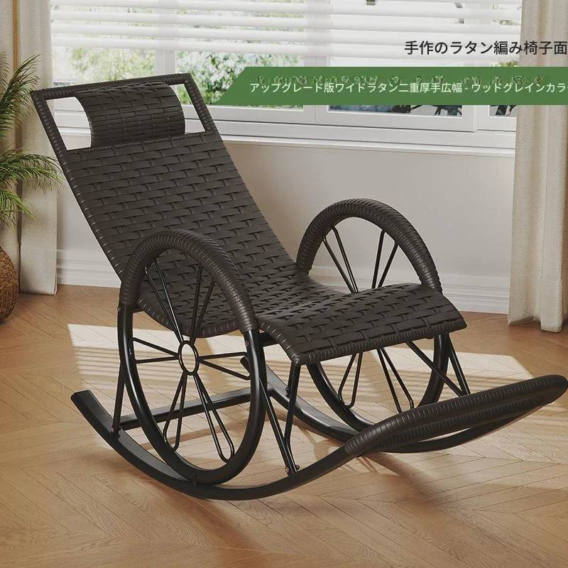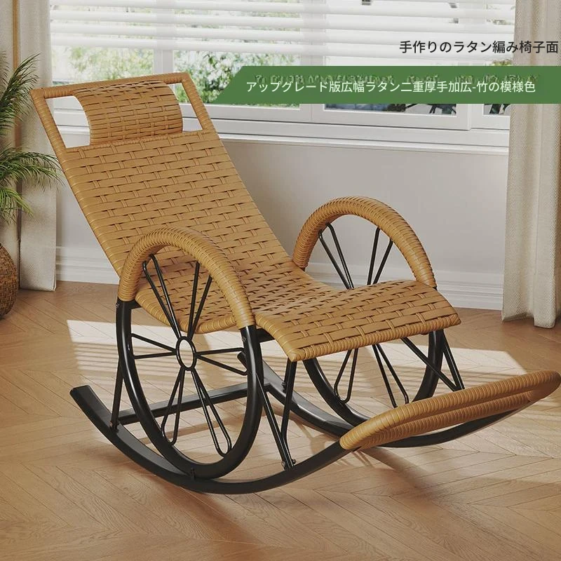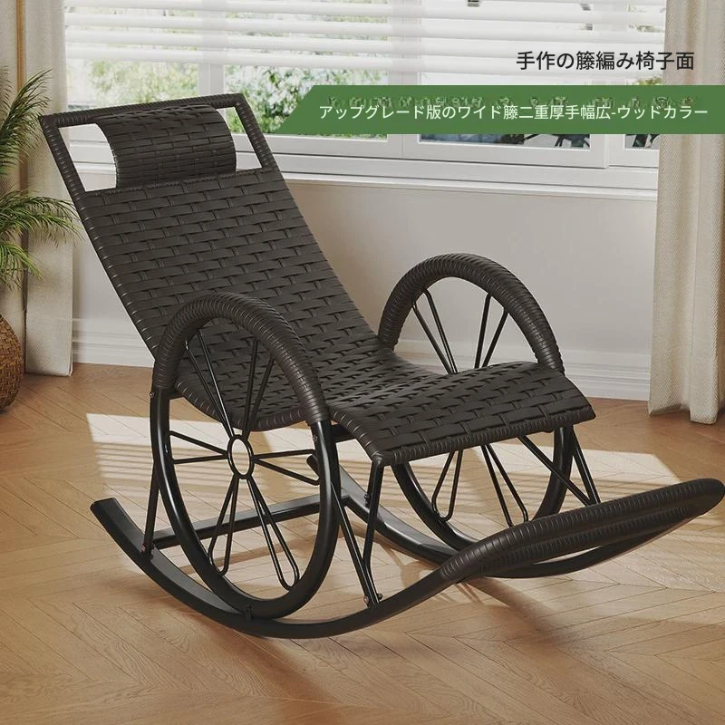 防水・紫外線対策済み!高齢者専用の快適なロッキングチェア - 藤編みデザインの屋外庭園用リクライニングチェアで、リラックスしたひとときをお届けします。