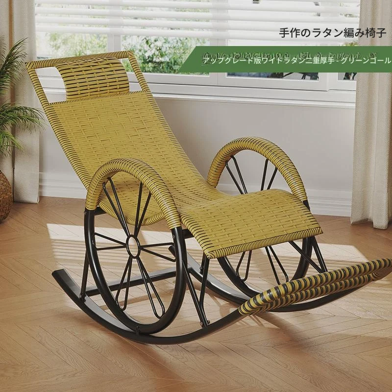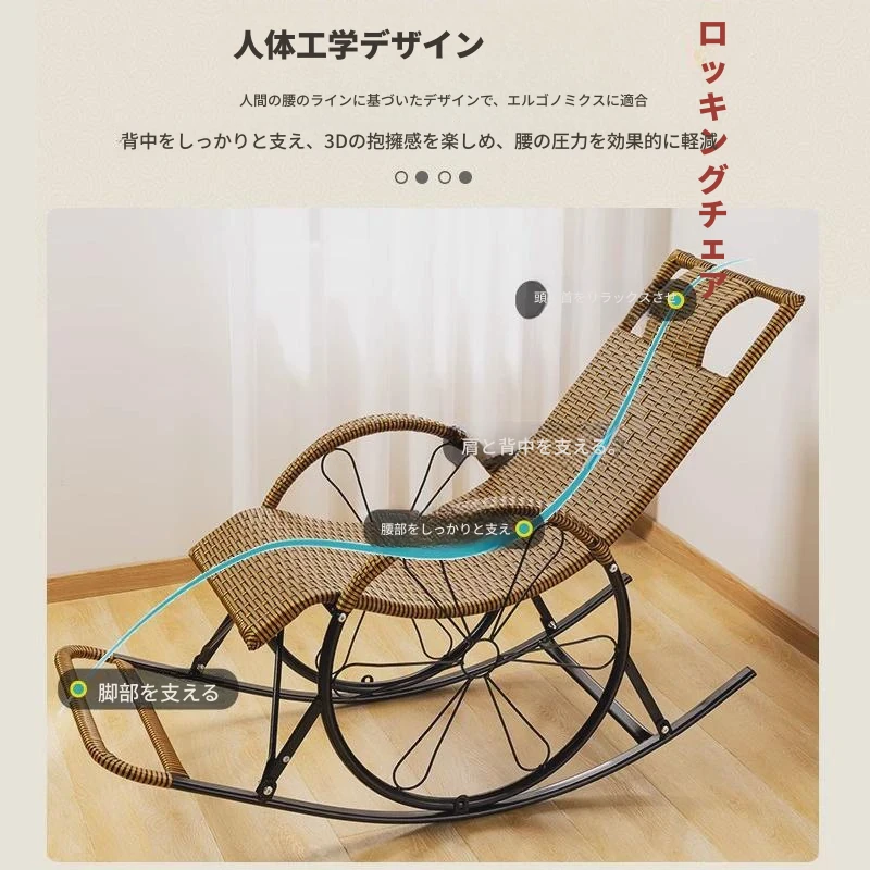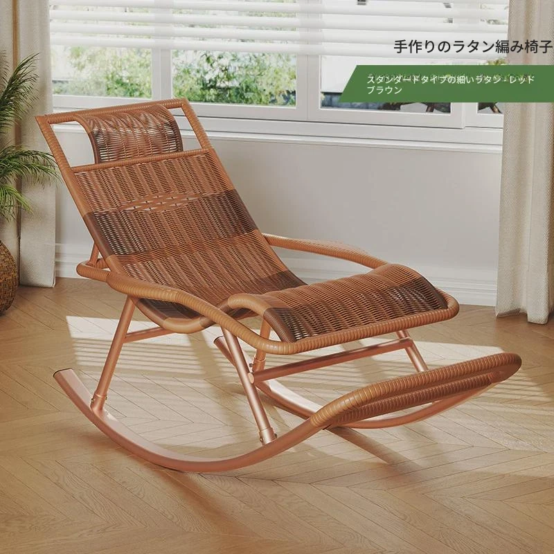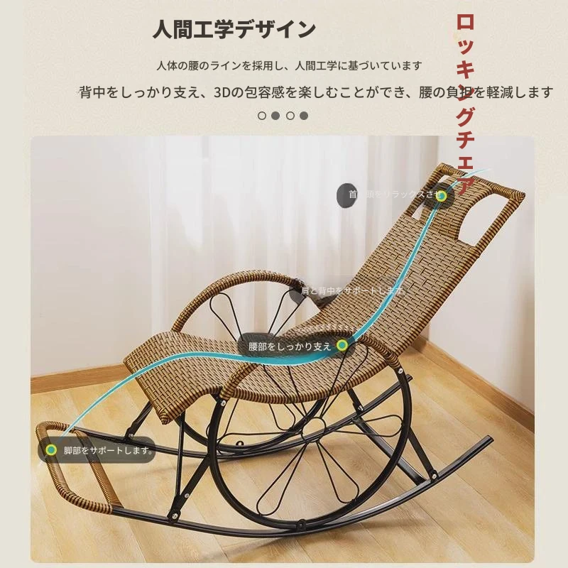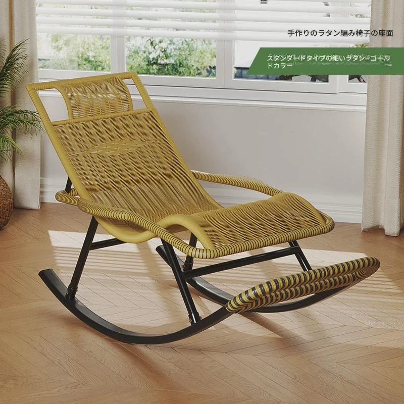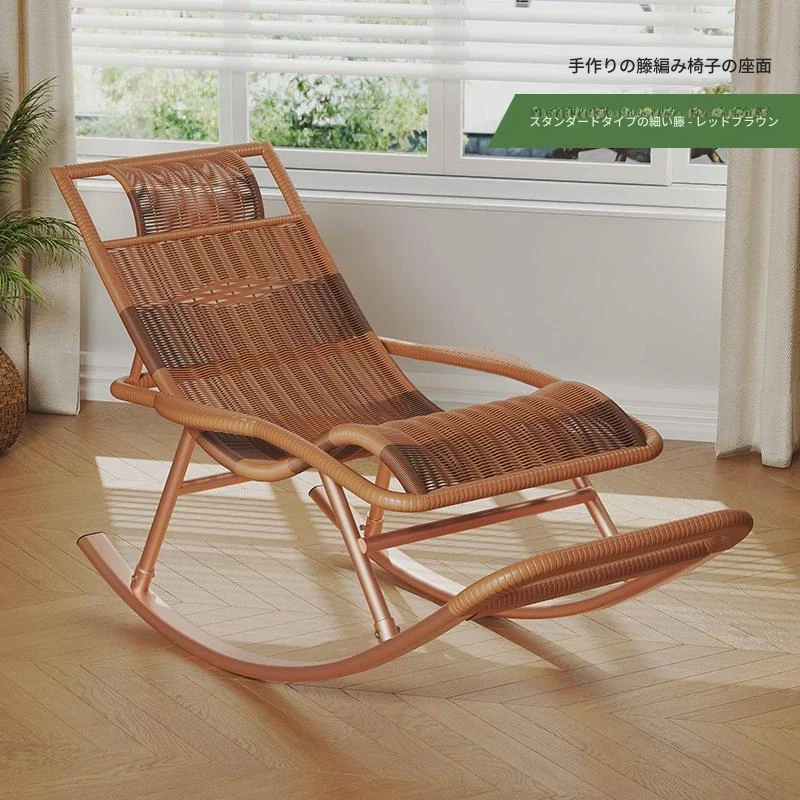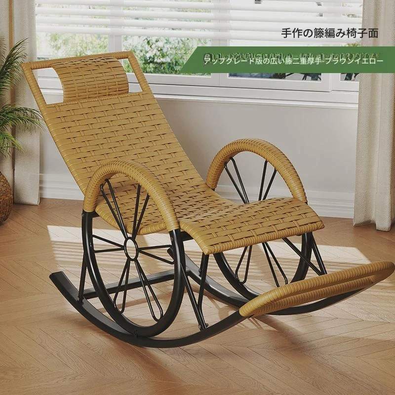 防水・紫外線対策済み!高齢者専用の快適なロッキングチェア - 藤編みデザインの屋外庭園用リクライニングチェアで、リラックスしたひとときをお届けします。