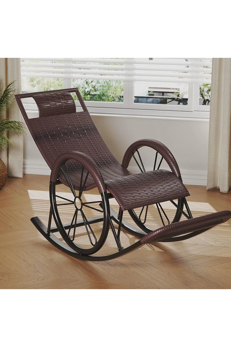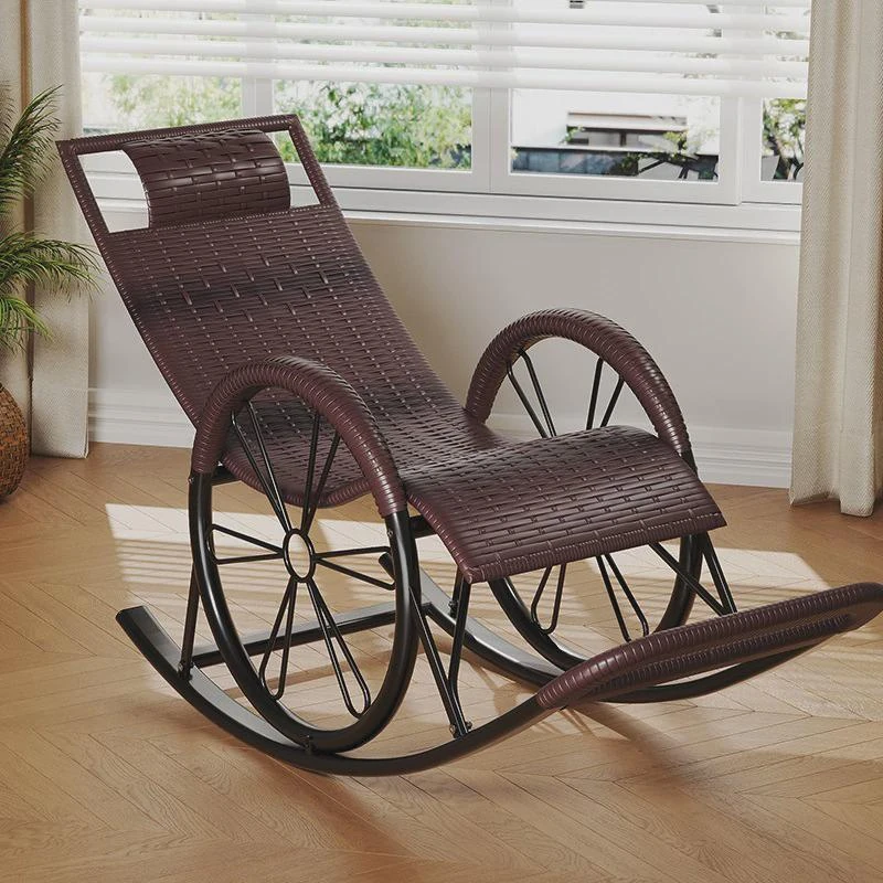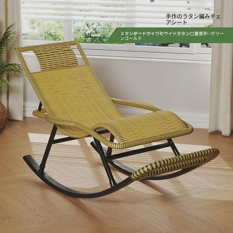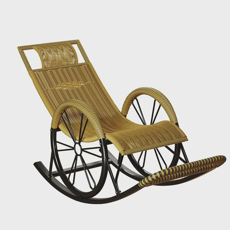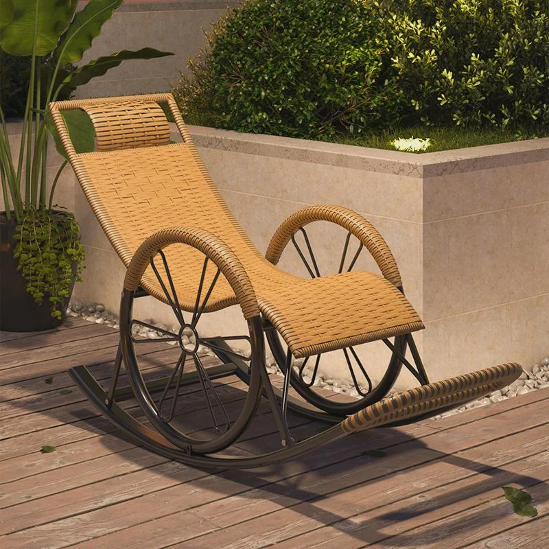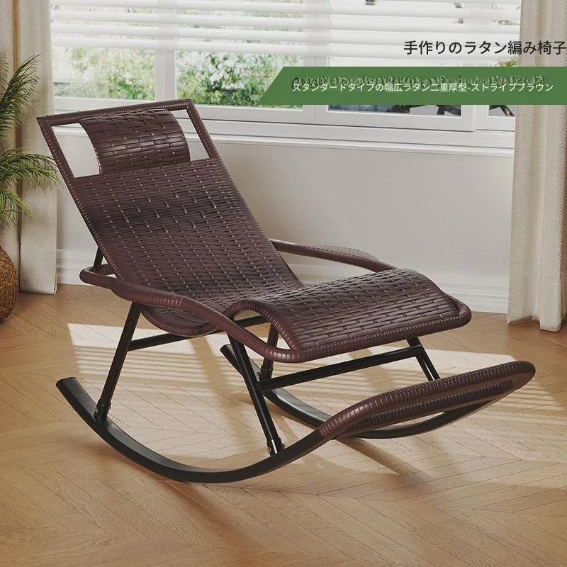 防水・紫外線対策済み!高齢者専用の快適なロッキングチェア - 藤編みデザインの屋外庭園用リクライニングチェアで、リラックスしたひとときをお届けします。