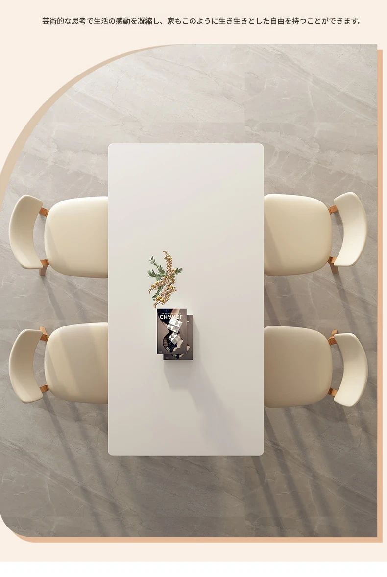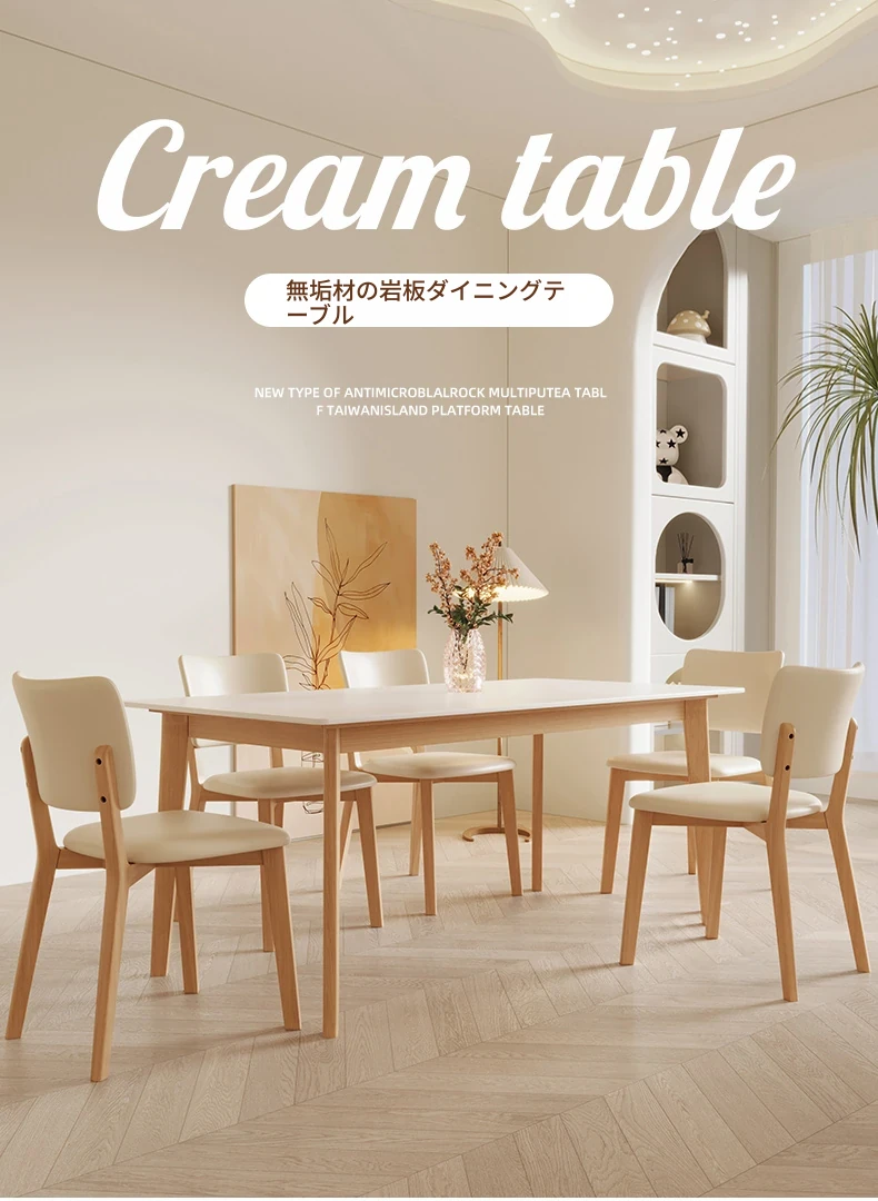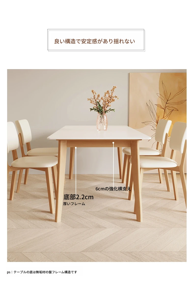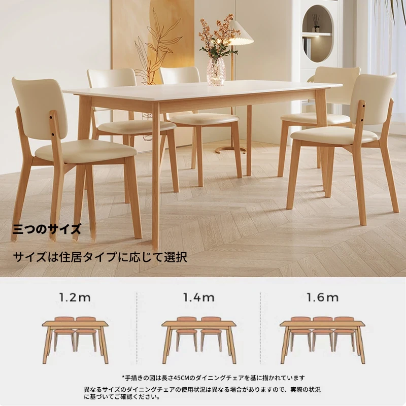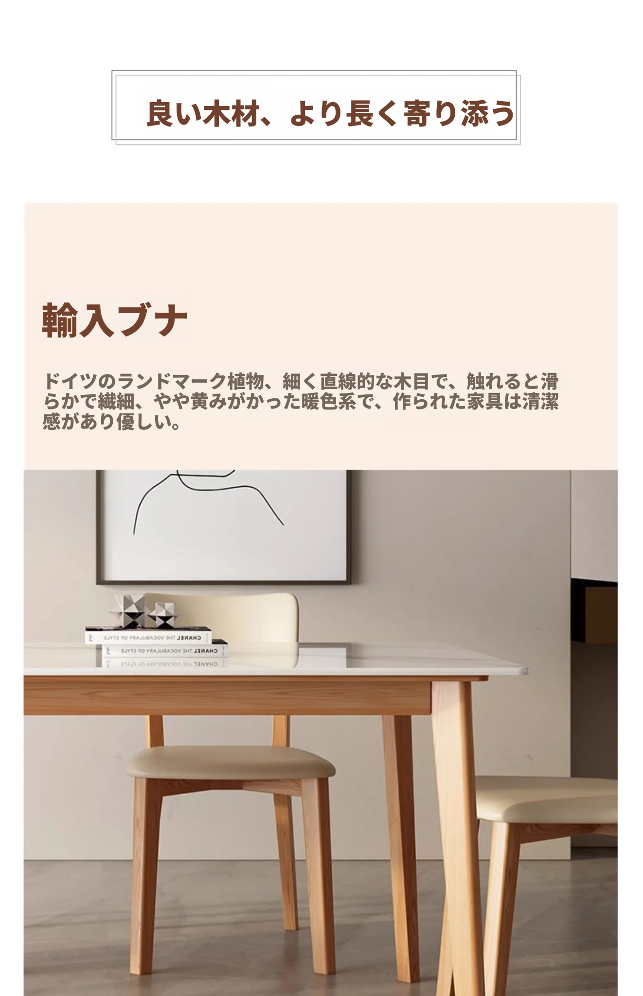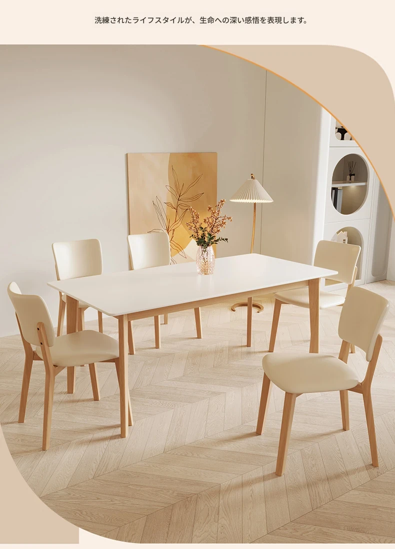 天然木材使用!小型住宅必备的岩板長方形食卓 - 原木クリーム風のブナ材ダイニングテーブル&チェアセット。快適な食事空間を提供します!