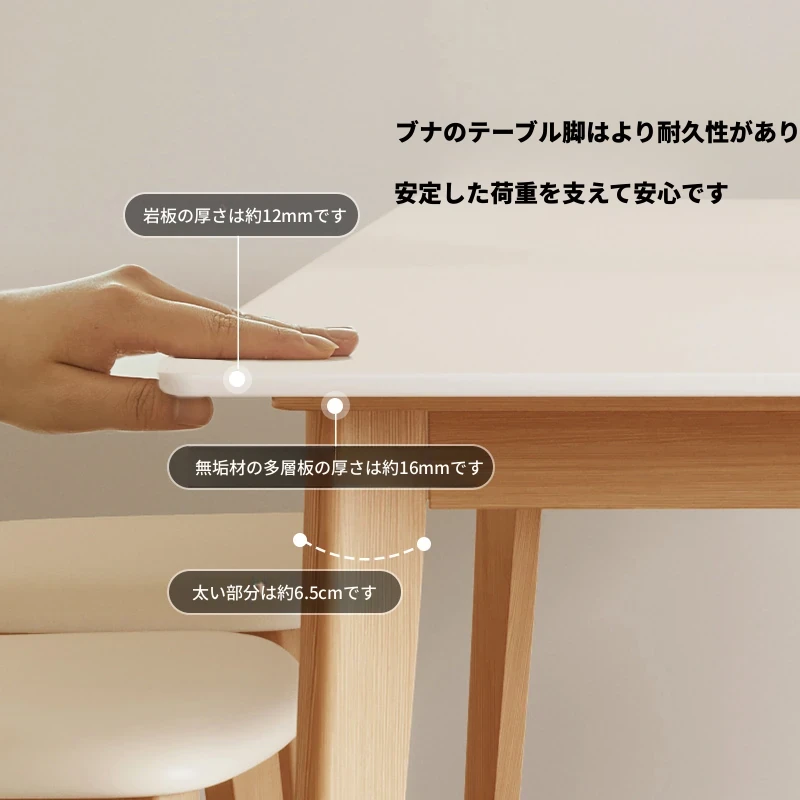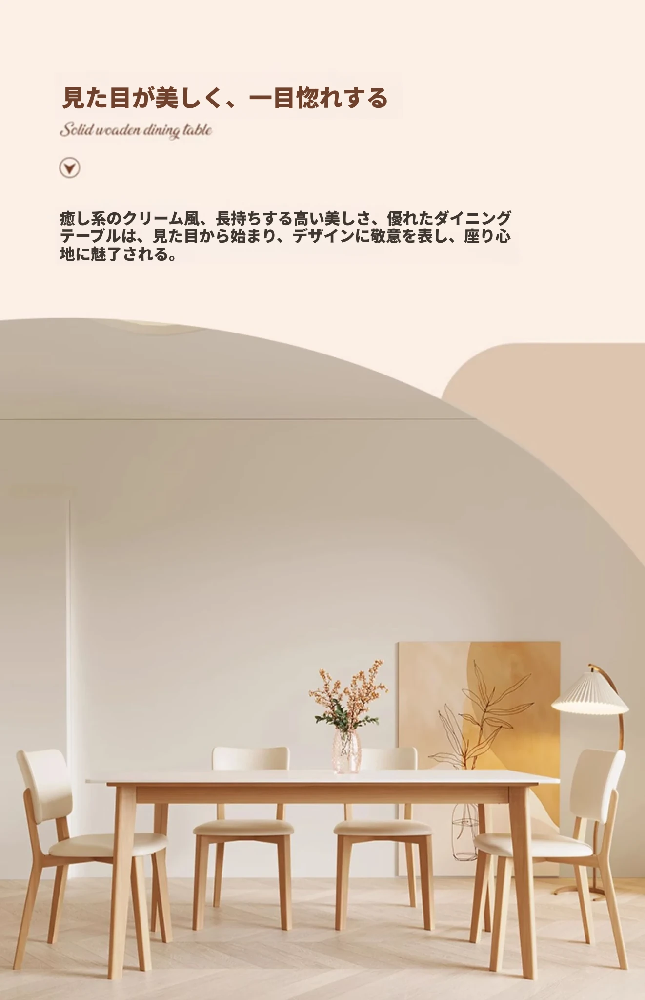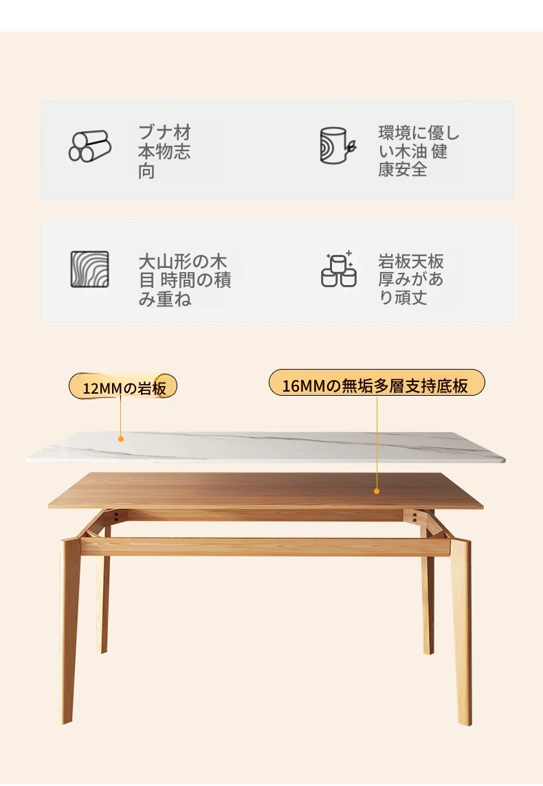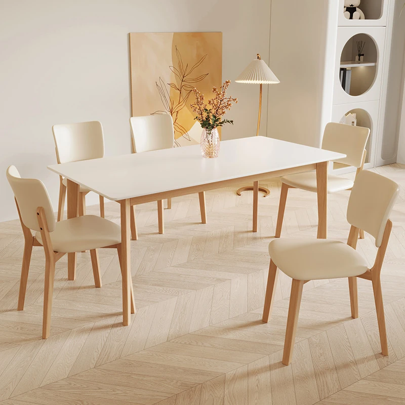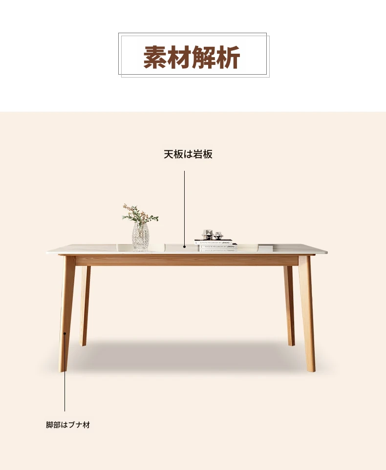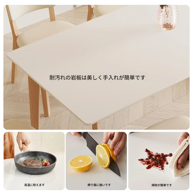 天然木材使用!小型住宅必备的岩板長方形食卓 - 原木クリーム風のブナ材ダイニングテーブル&チェアセット。快適な食事空間を提供します!