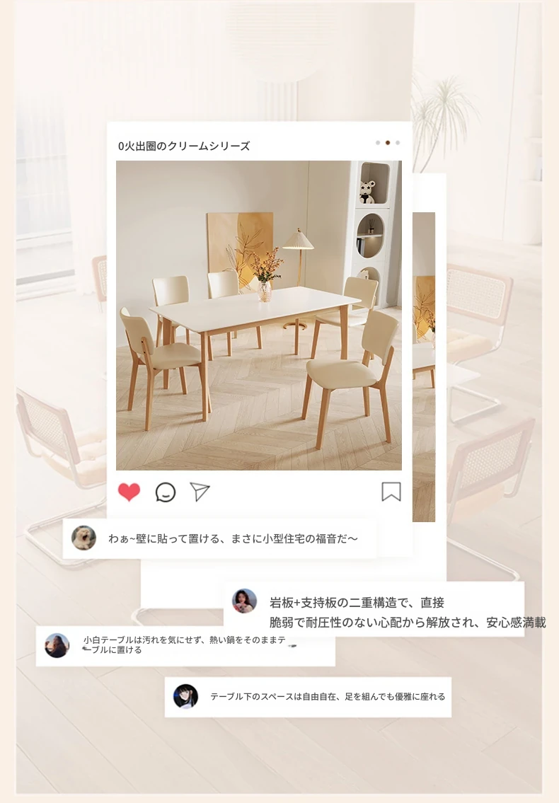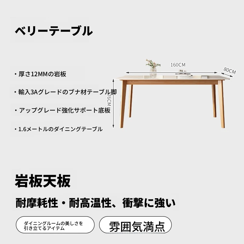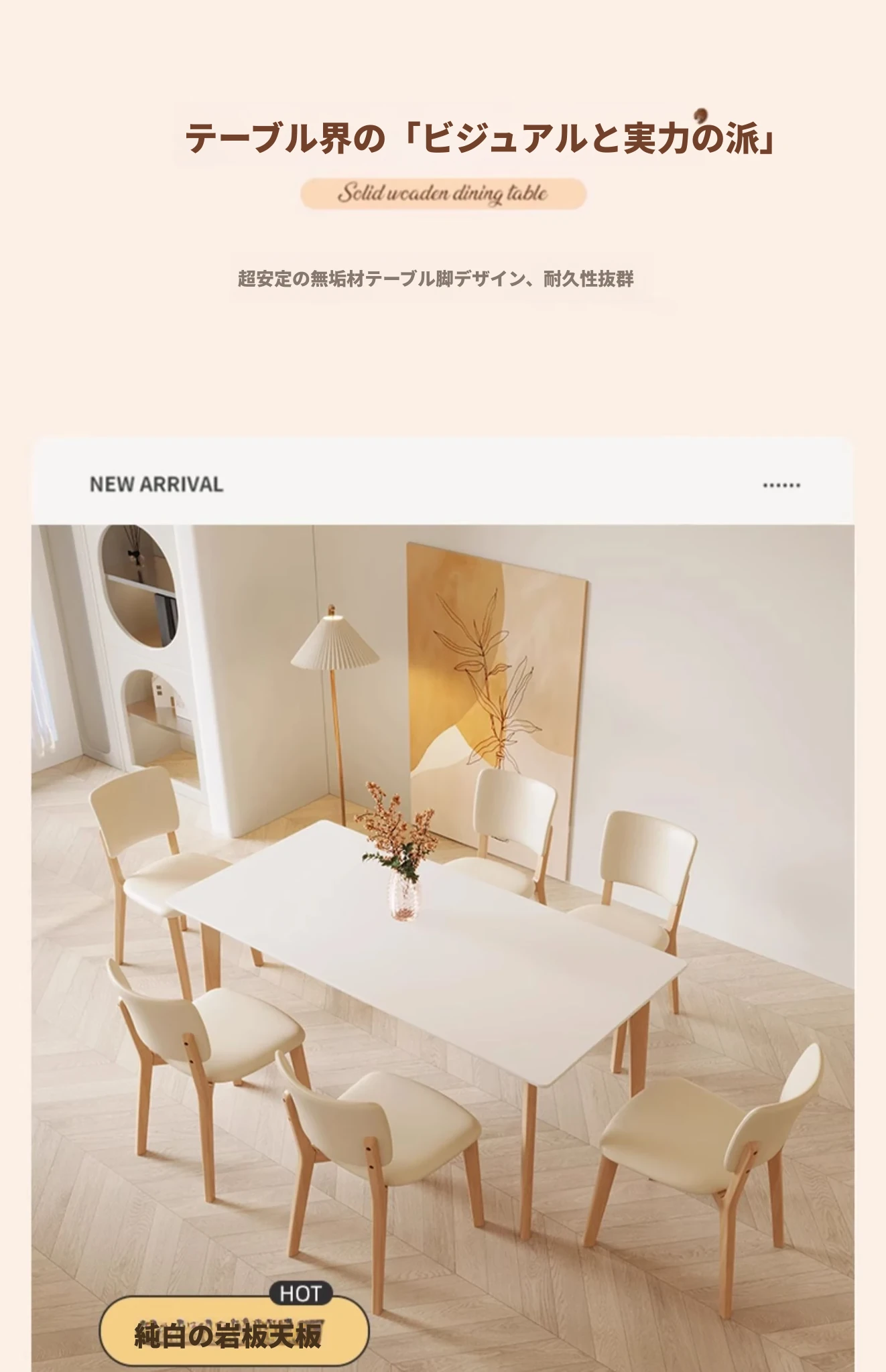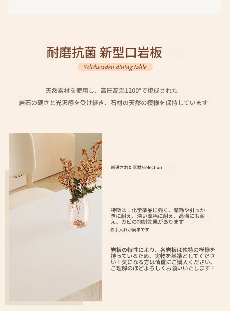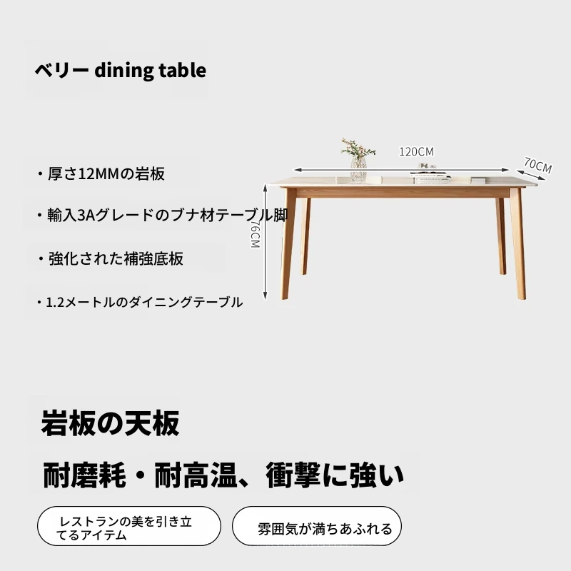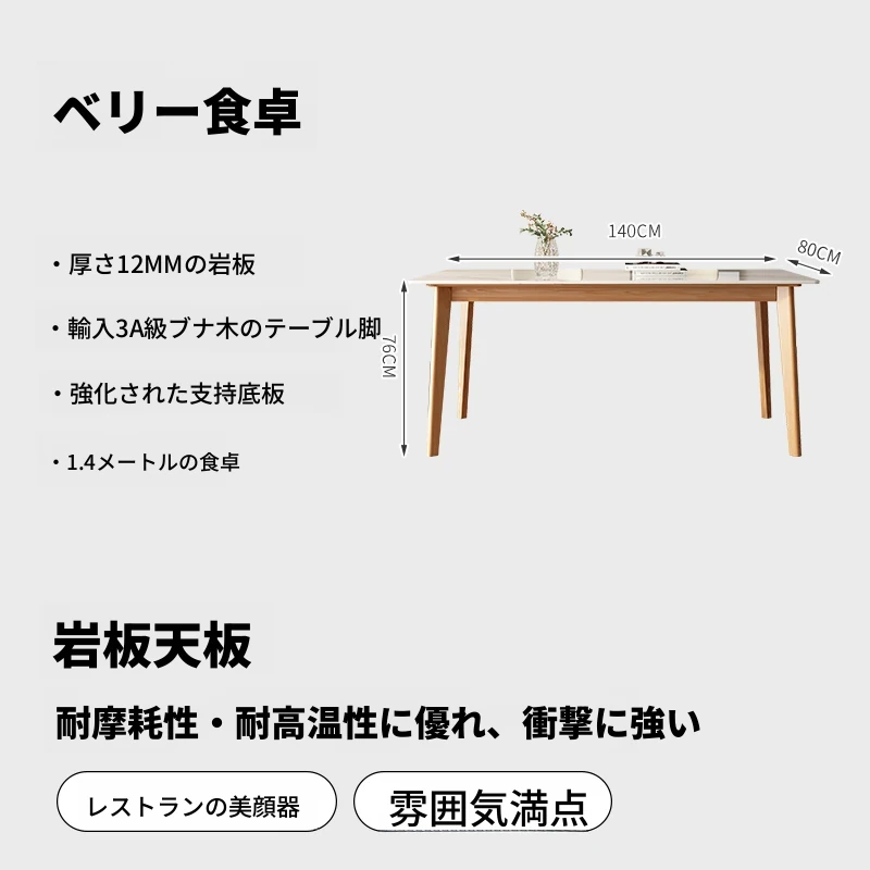 天然木材使用!小型住宅必备的岩板長方形食卓 - 原木クリーム風のブナ材ダイニングテーブル&チェアセット。快適な食事空間を提供します!
