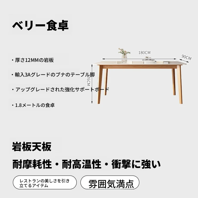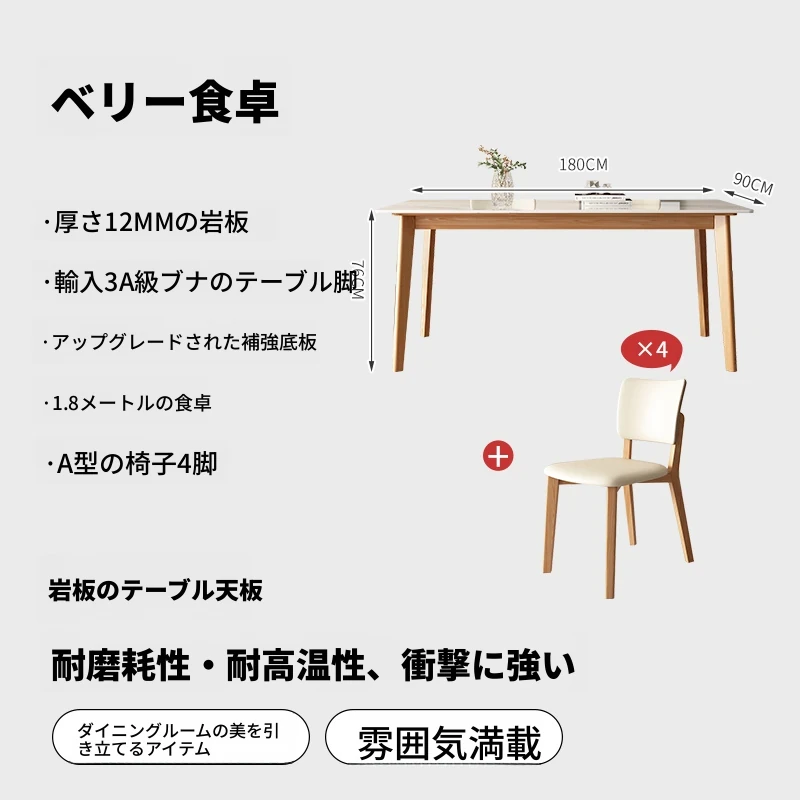 ベリー岩板ダイニングテーブル1.8メートル+aタイプダイニングチェア*4