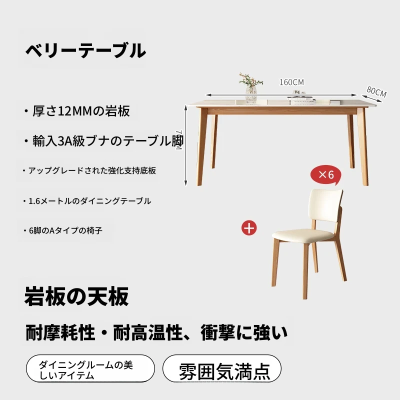 ベリー岩板ダイニングテーブル1.6メートル+aタイプダイニングチェア*6